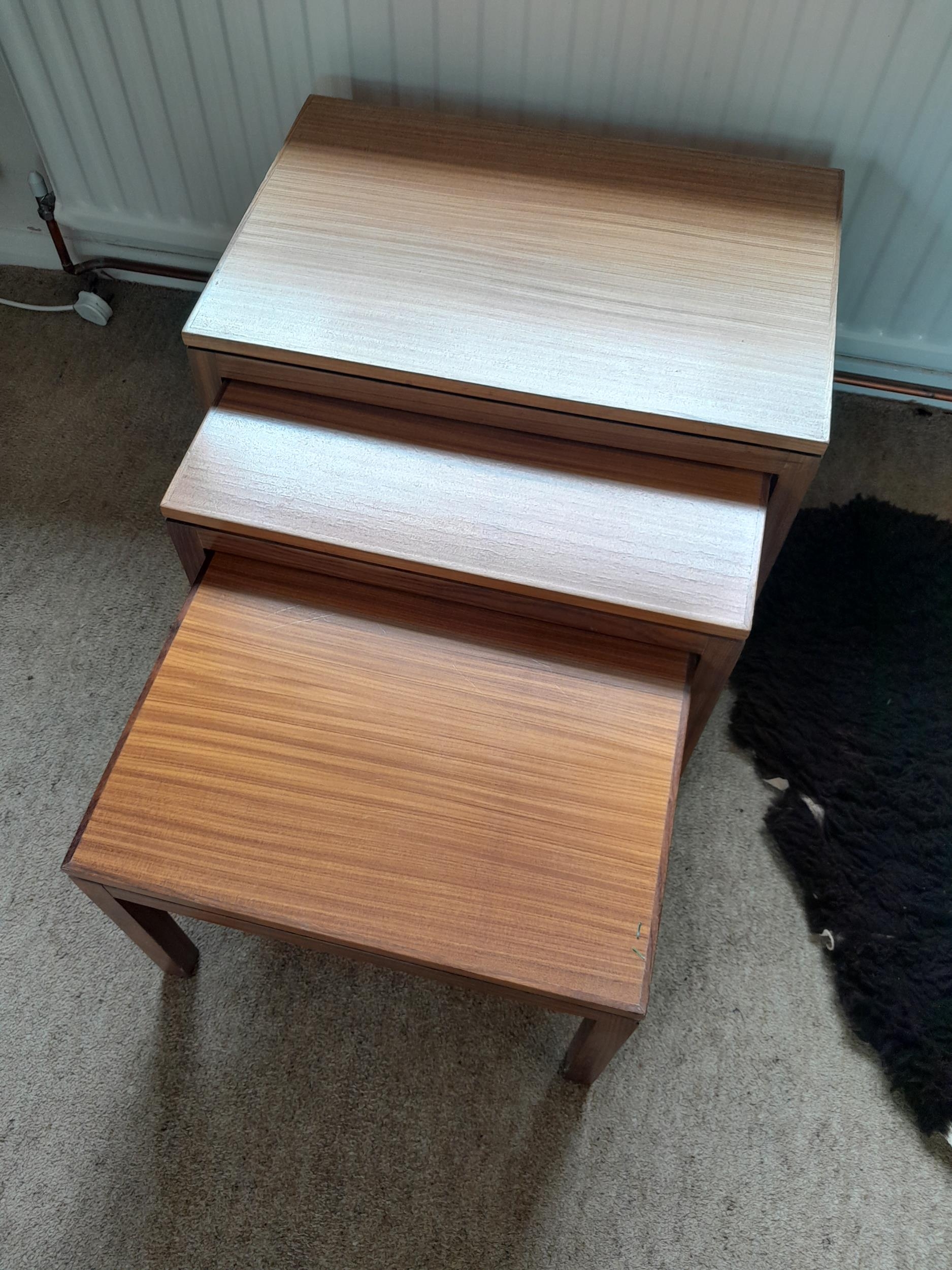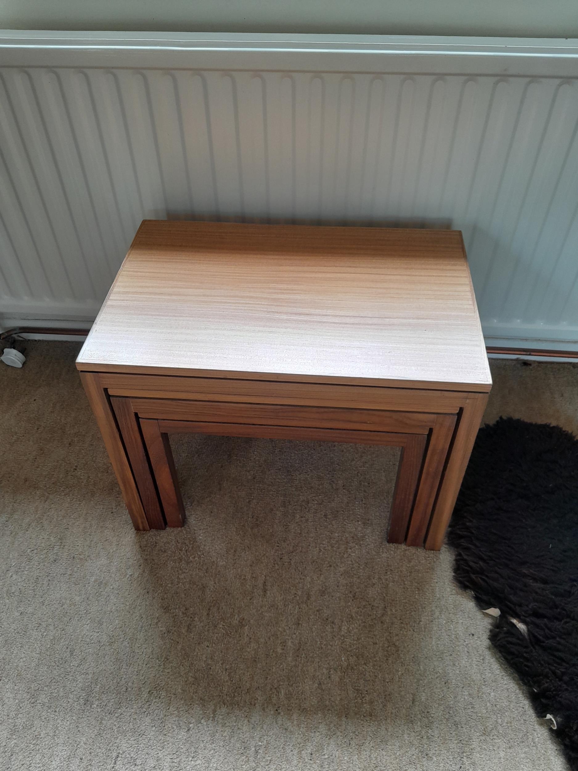 Mid century nest of teak tables, some outer fade