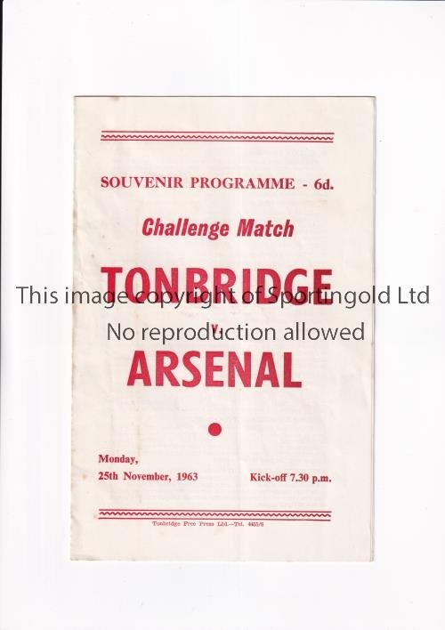 ARSENAL Programme for the away First team Friendly v Tonbridge 25/11/1963, team changes and scores entered. Generally good