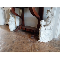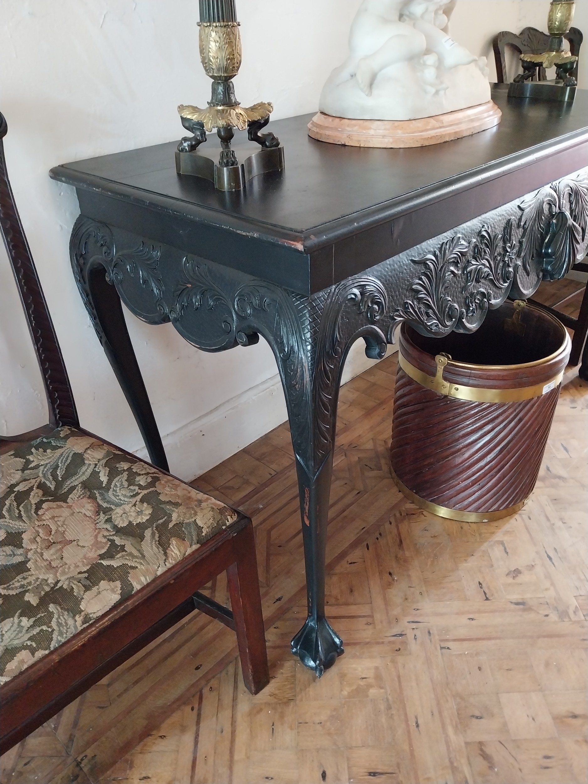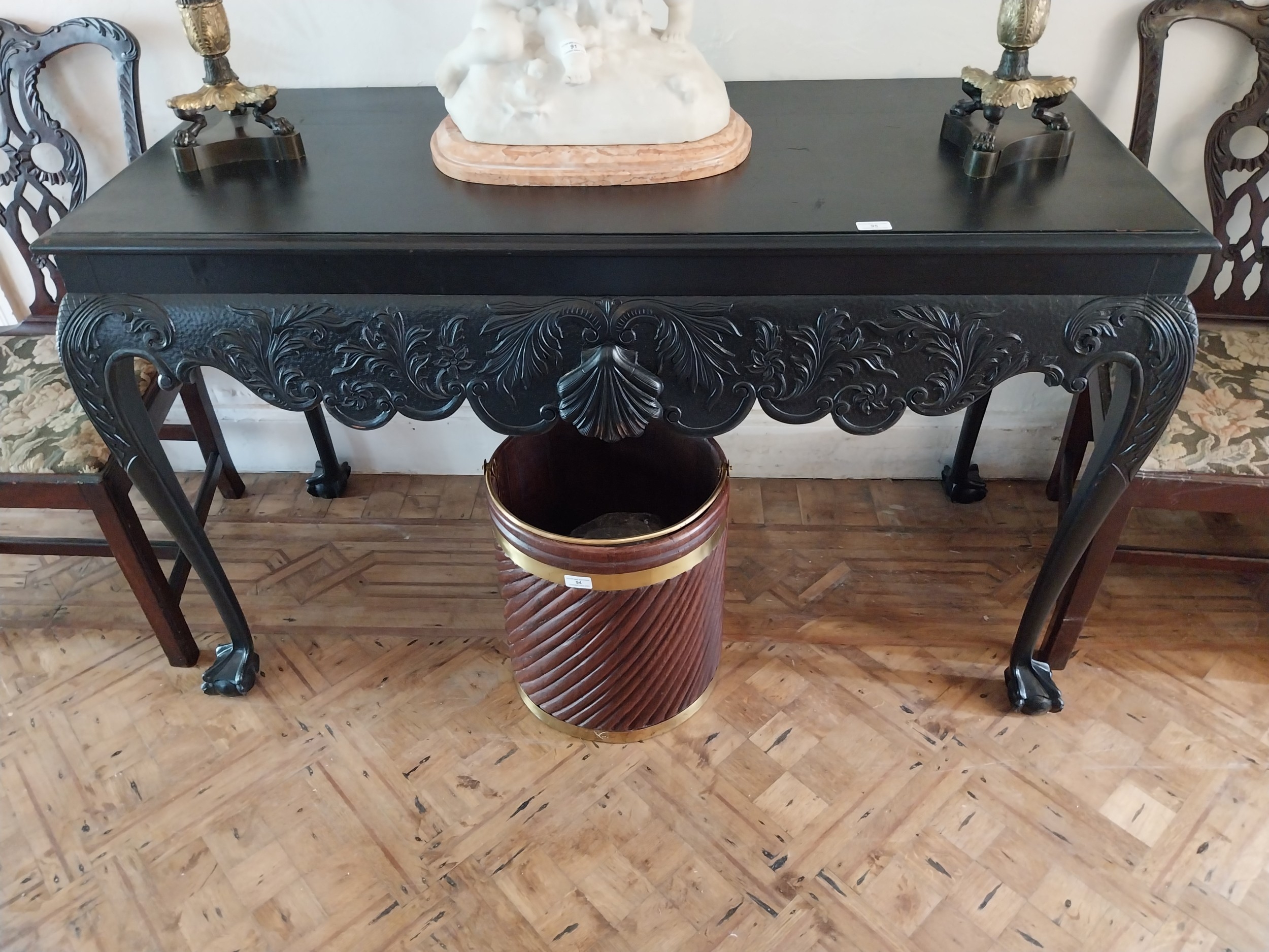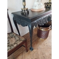 Irish mahogany side table, the carved apron decorated with a shell, raised on cabriole legs terminating on ball and claw feet, in the Georgian manner. { 83cm H X 137cm W X 61cm D }.