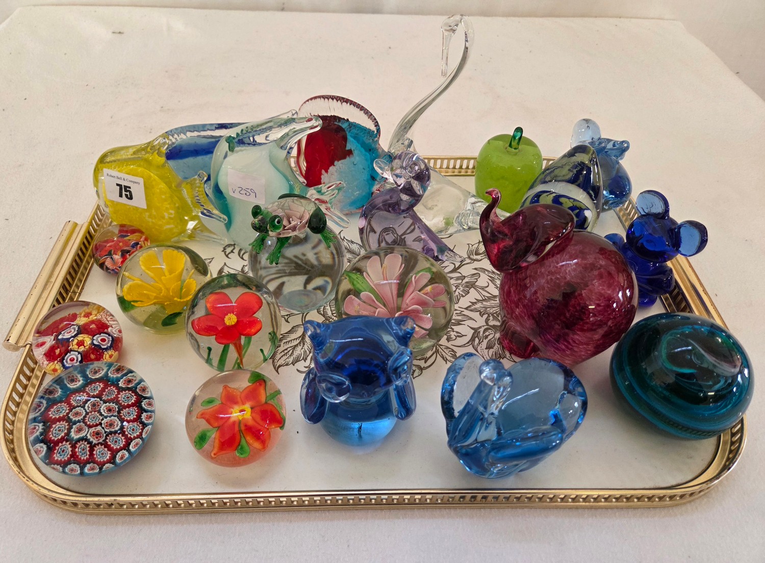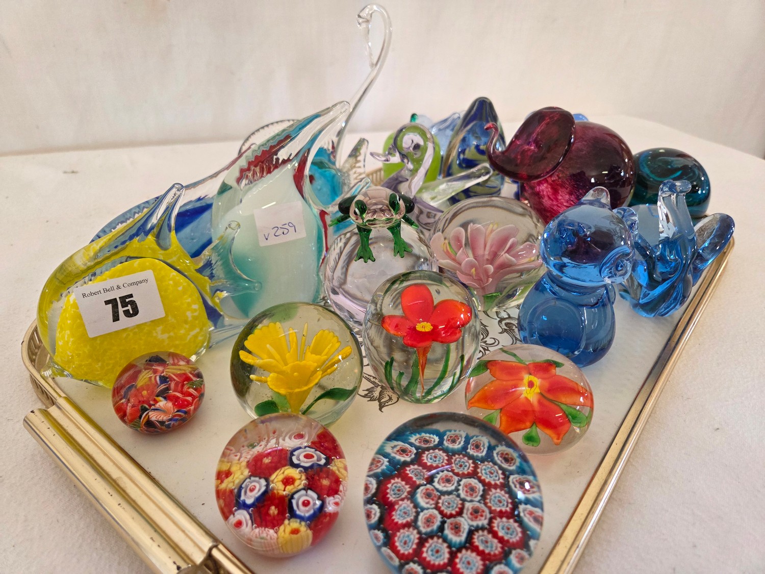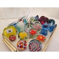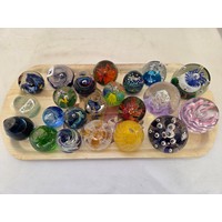 Approx. 25 various coloured glass paperweights incl. Millefiori