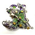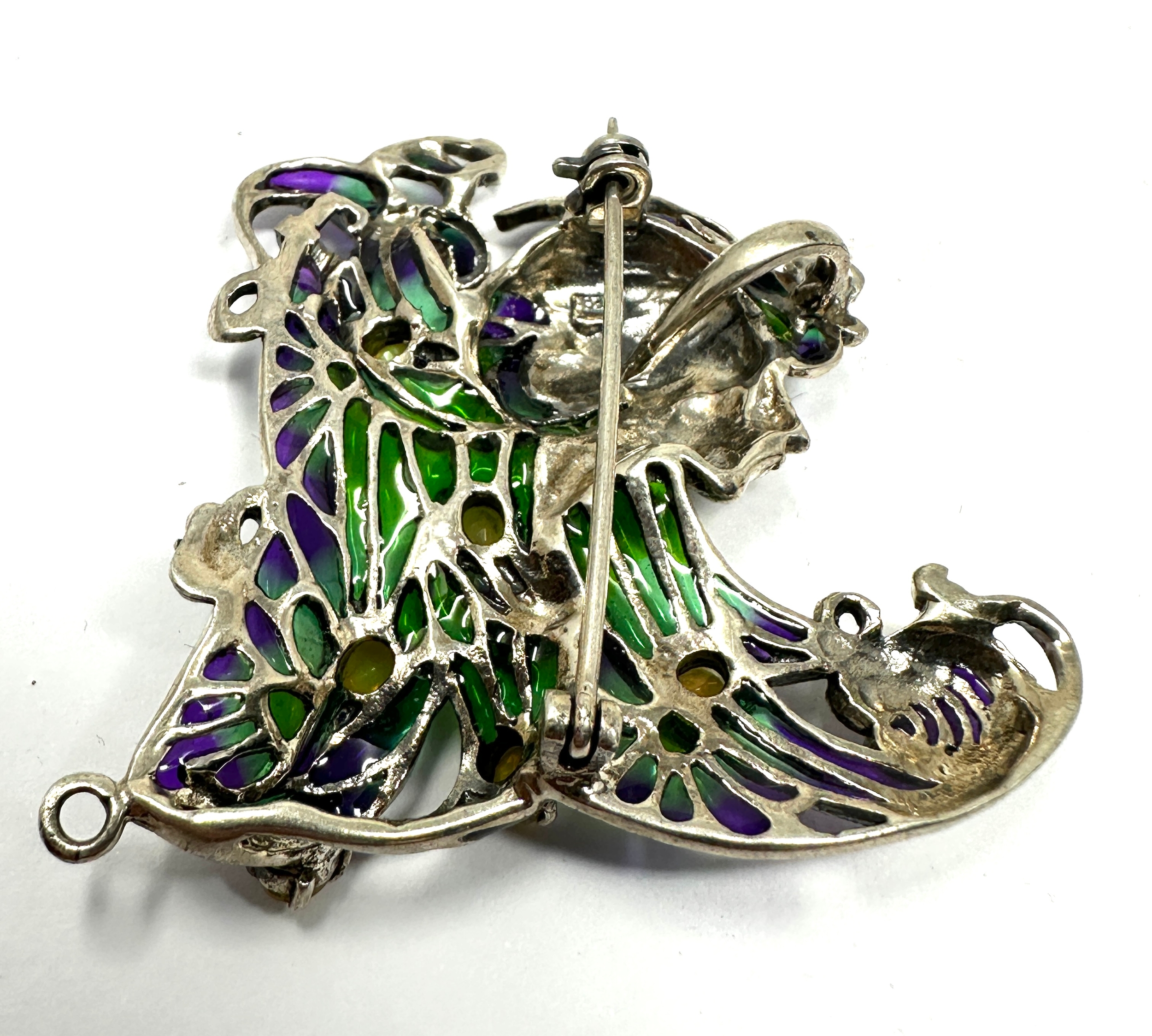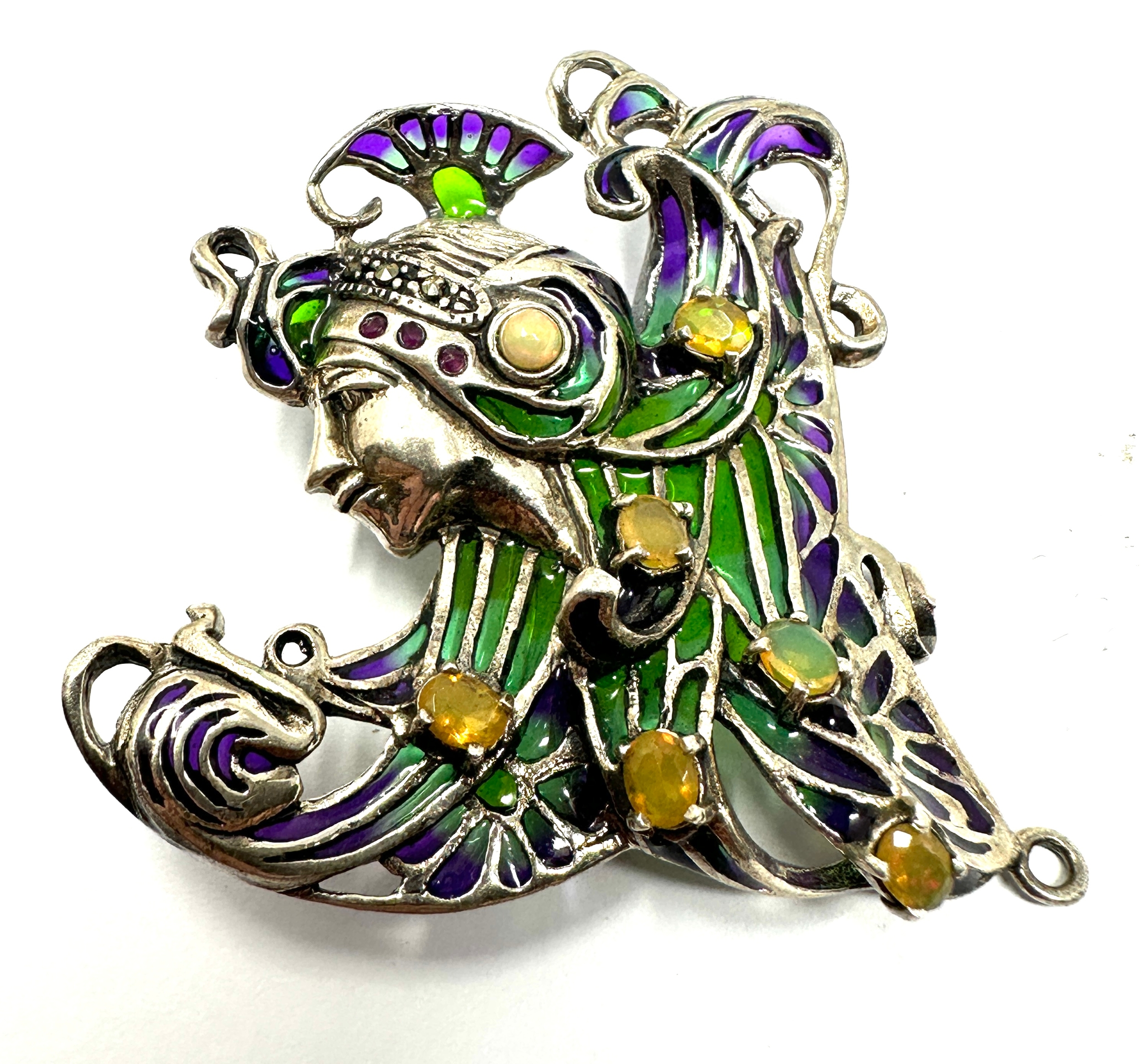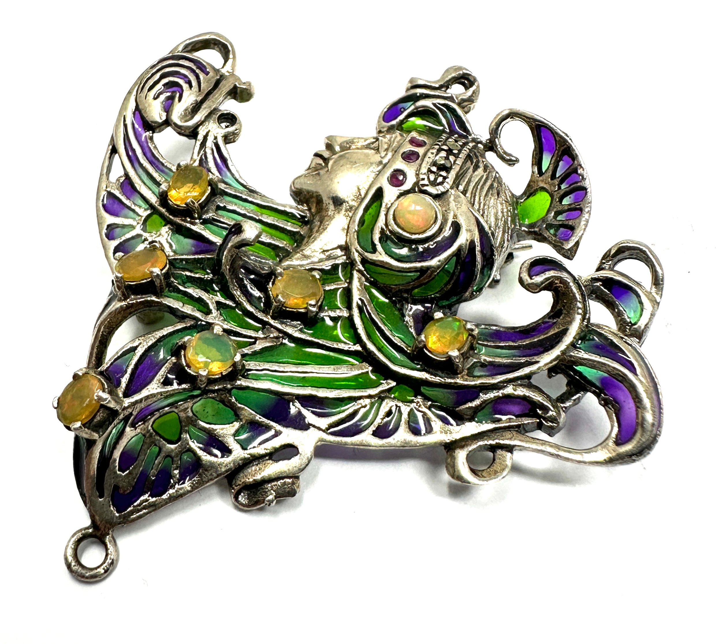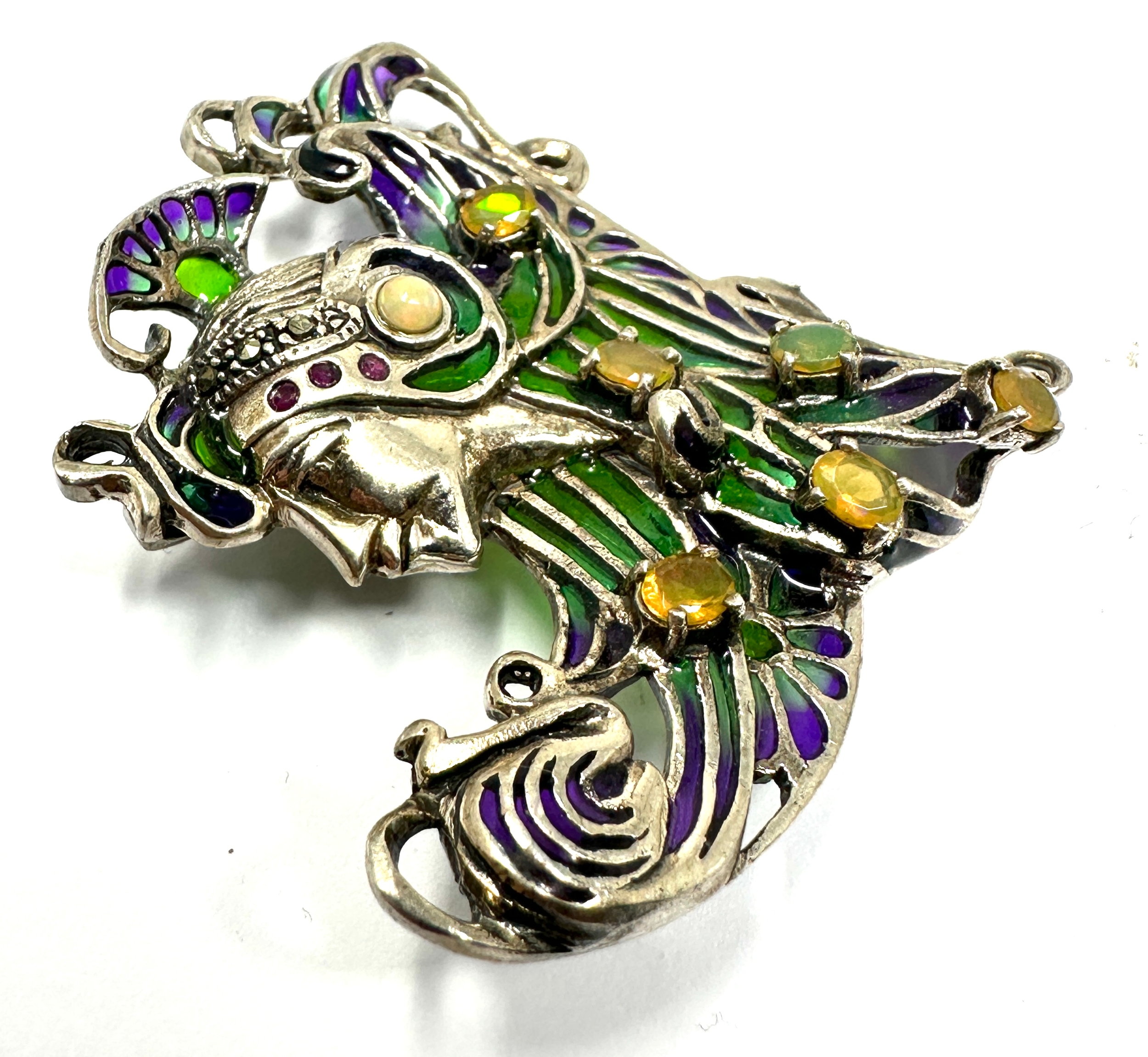 925 Sterling Silver Plique-à-jour Enamelled opal set Brooch / Pendant measures approx 5.5cm drop by 5.5cm wide