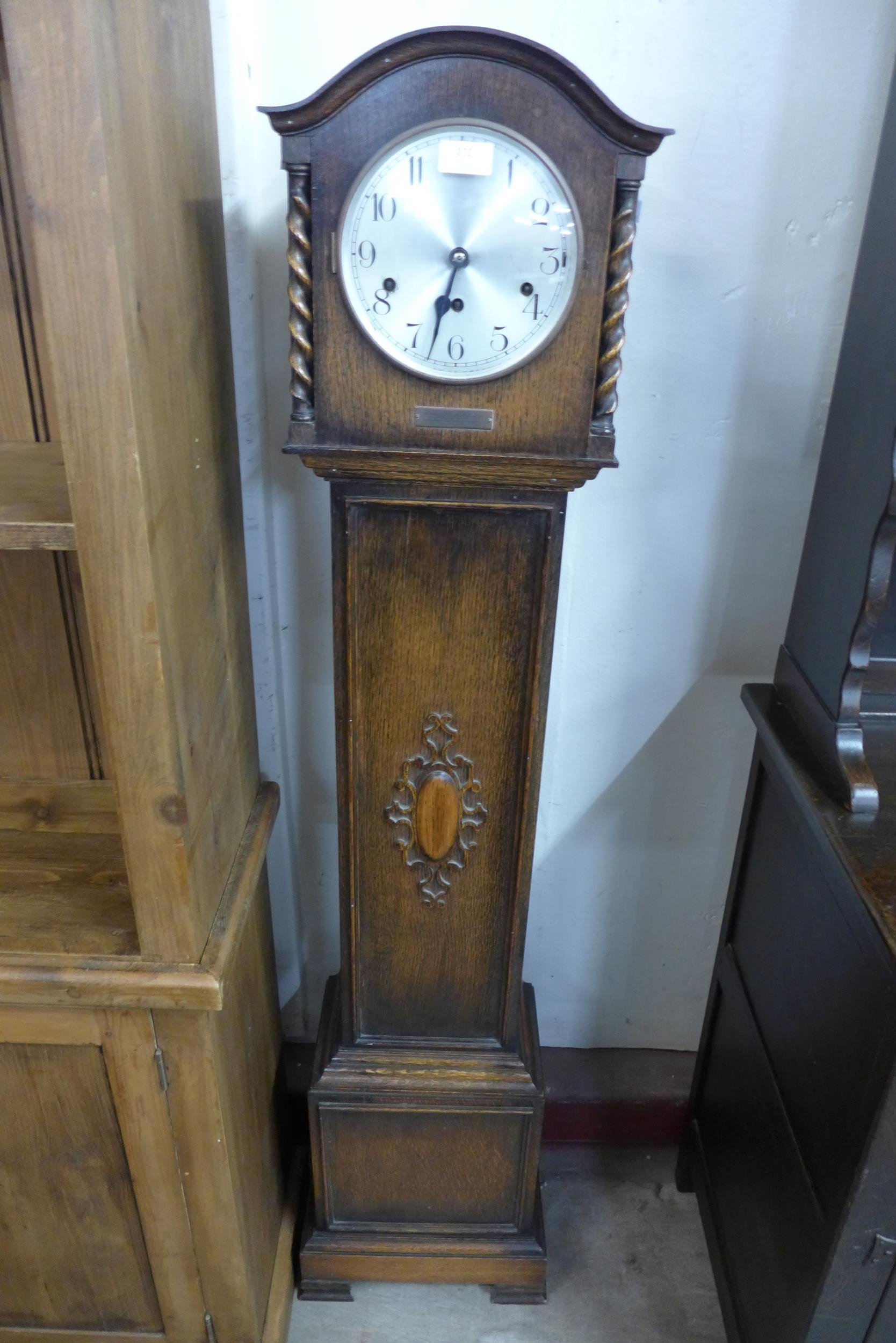 An oak dwarf longcase clock