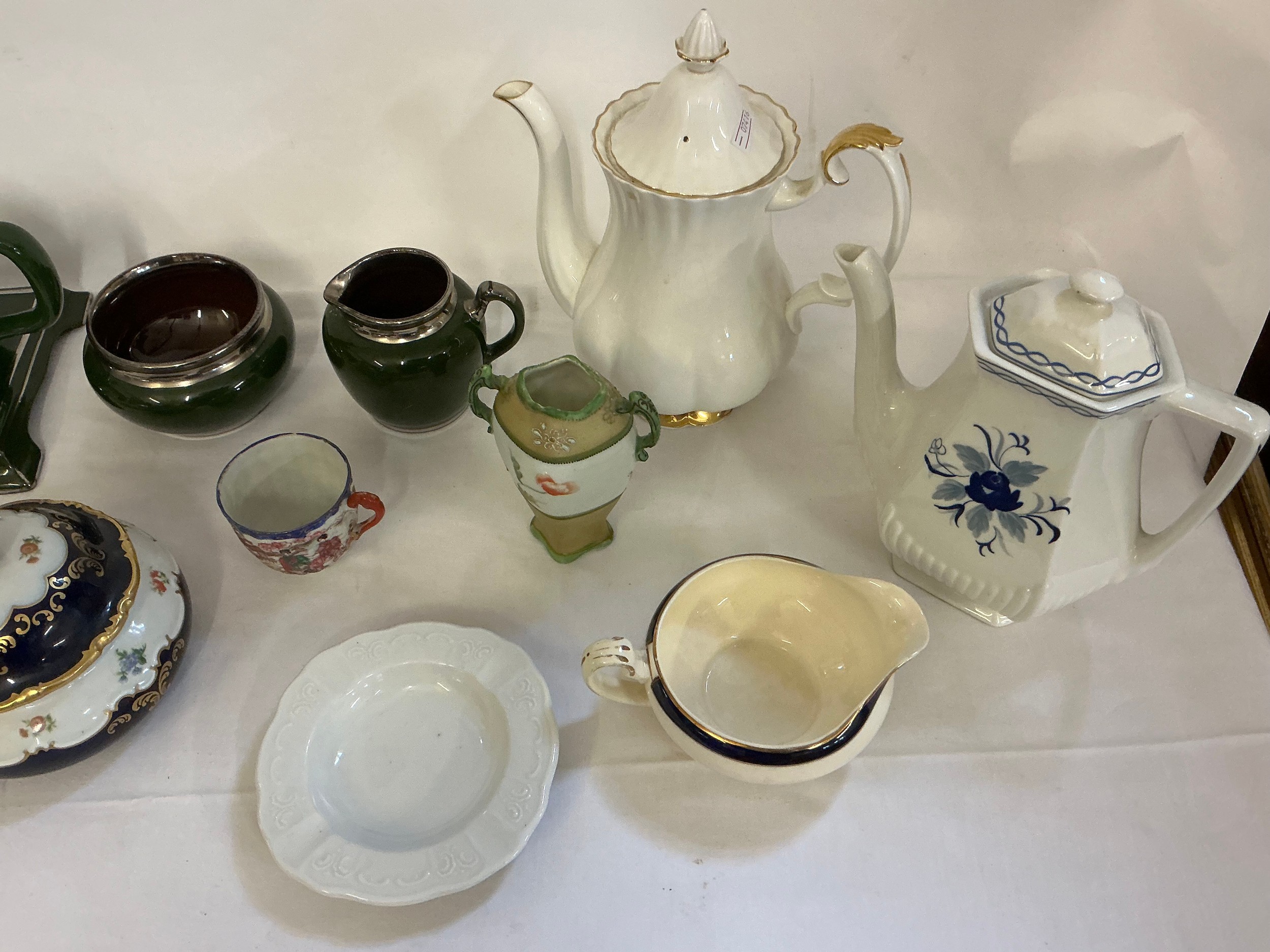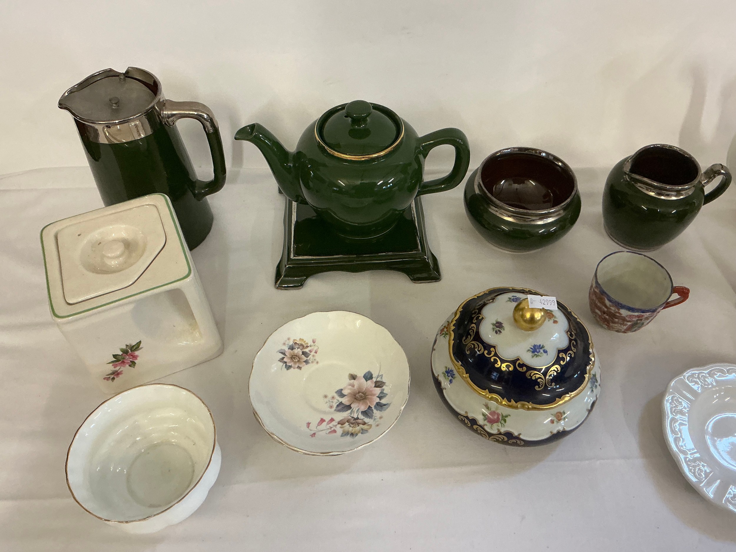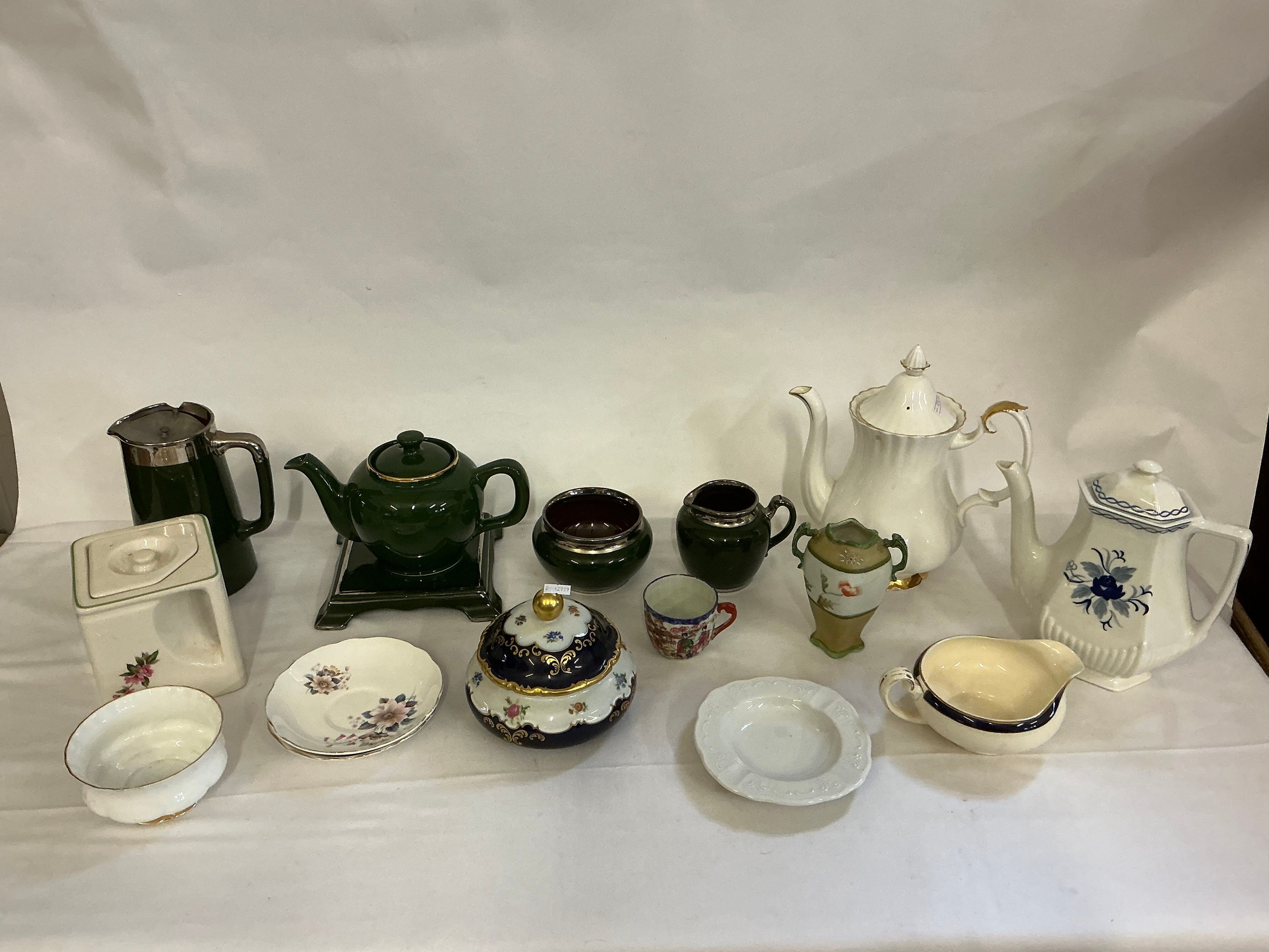 A Collection of Porcelain to include Alfred Meakin, French Green Tea Pot on Stand with Milk Jug & Bowl, a Royal Albert Tea Pot, a Adams Tea Pot, etc.