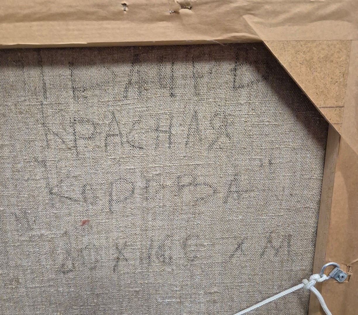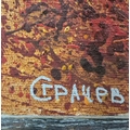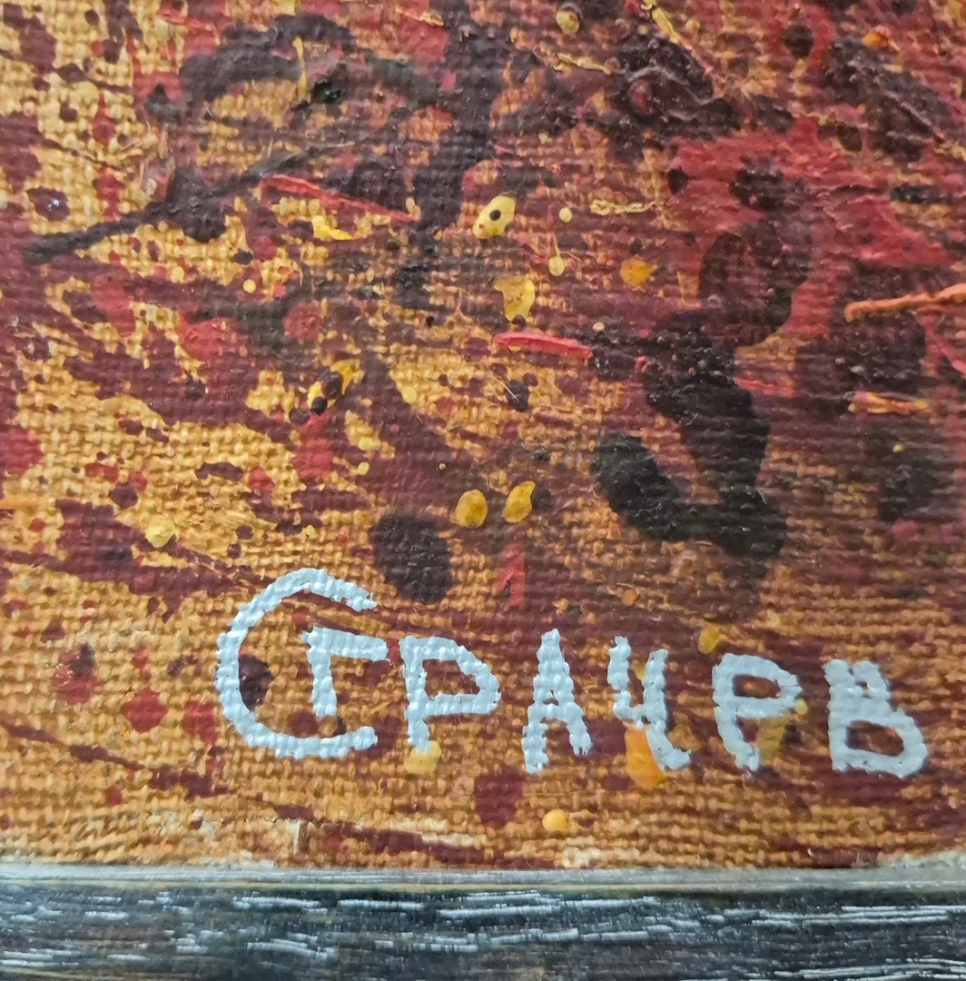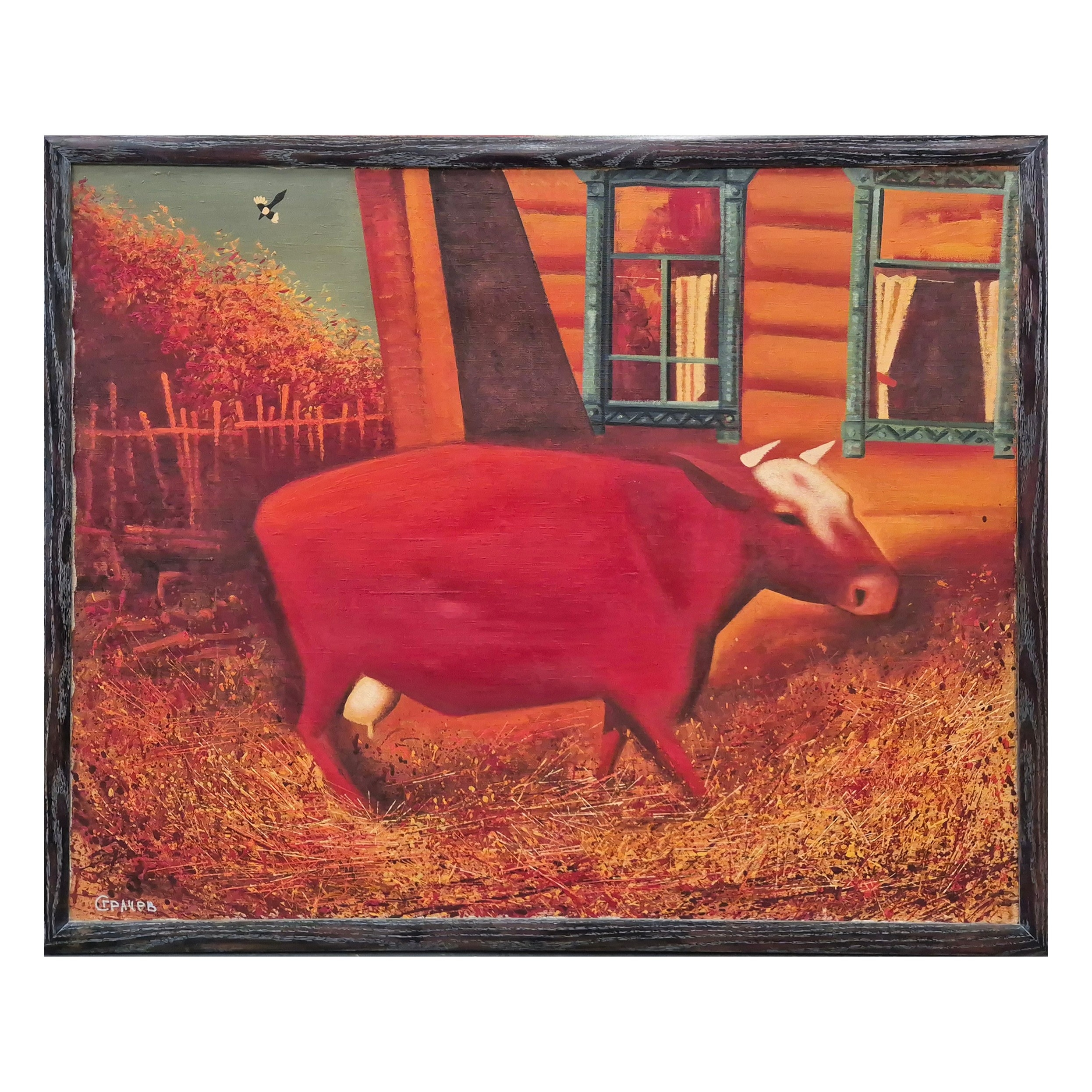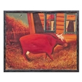 20TH CENTURY RUSSIAN SCHOOL. RED COW. oil on canvas, 86cm x 106cm, framed.