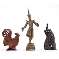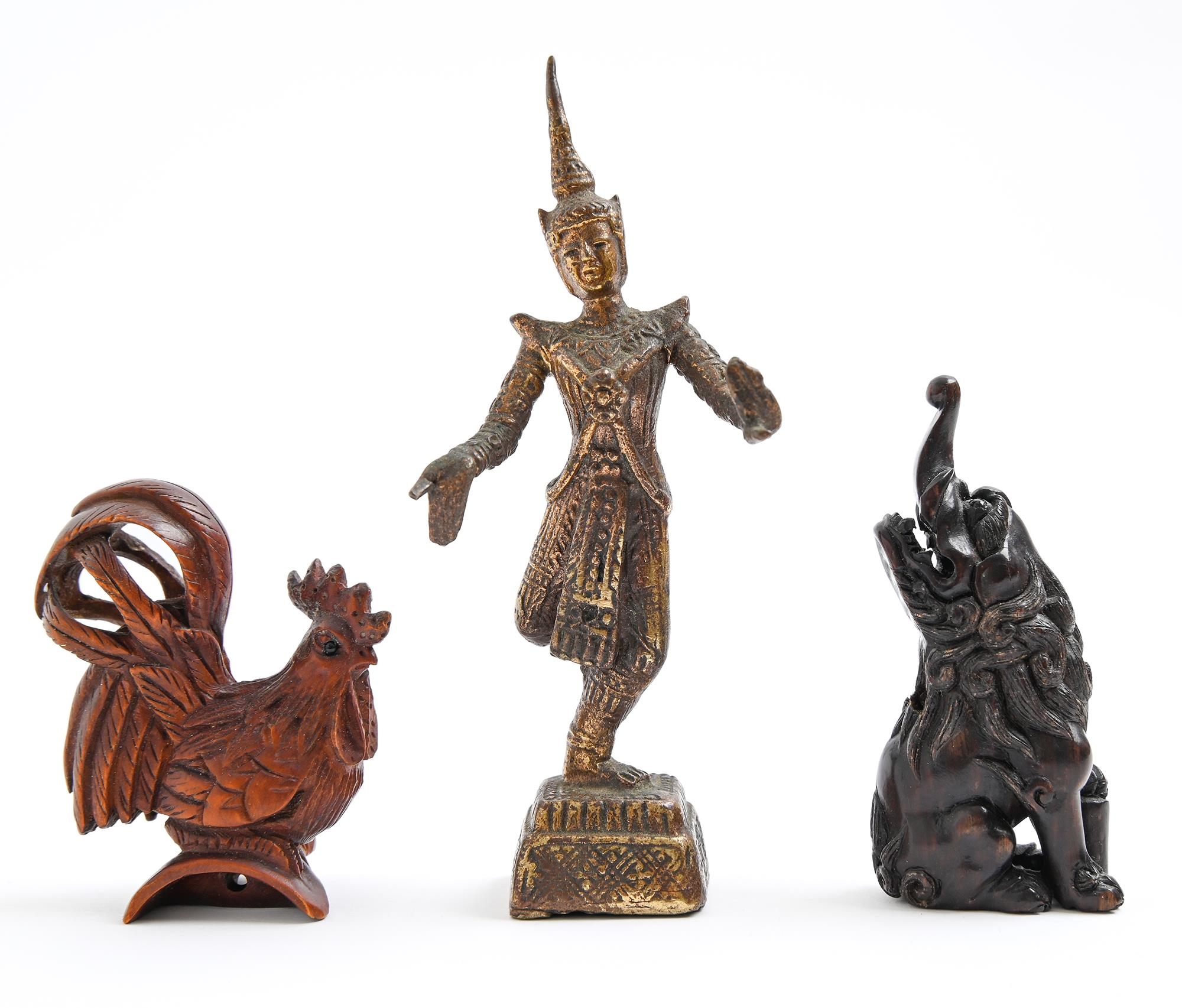 A Japanese boxwood okimono of a cockerel, 55mm h and two other South East Asian works of art (3)