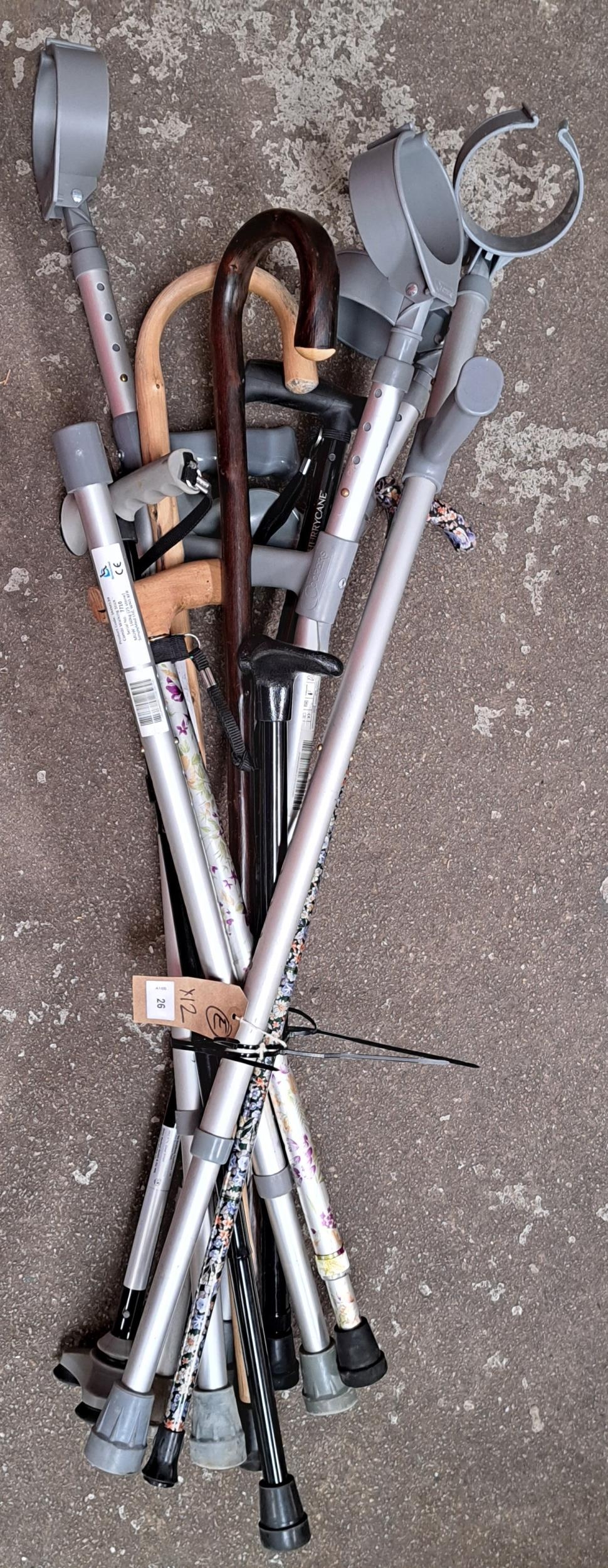 SELECTION OF TWELVE WALKING STICKS AND MOBILITY AIDS