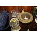 A VINTAGE BRASS PORT HOLE, TOGETHER WITH A BRASS HENRY VIII SHAPED DOOR KNOCKER
