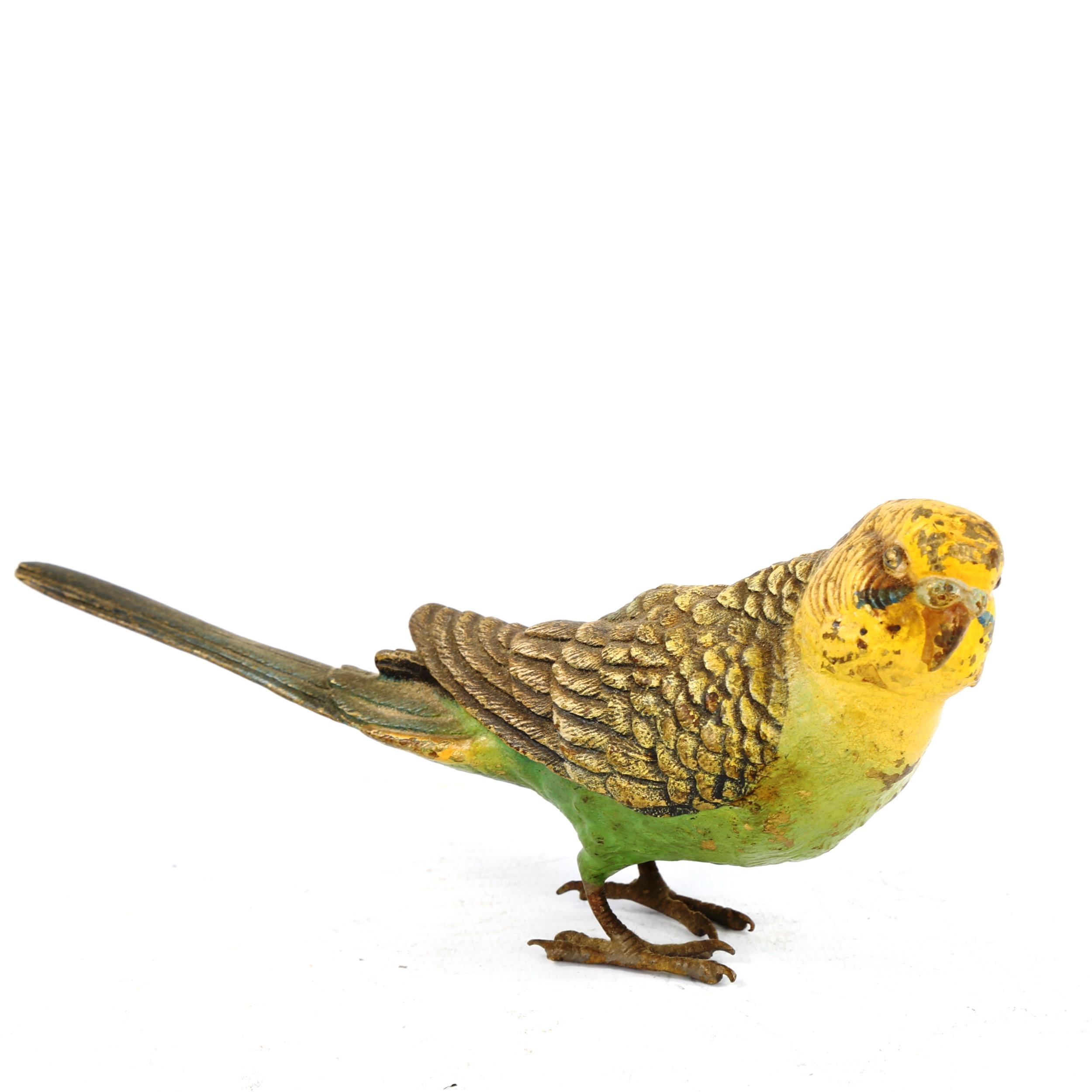 Austrian cold painted bronze parakeet, length 16cm