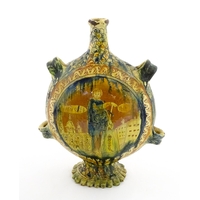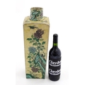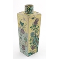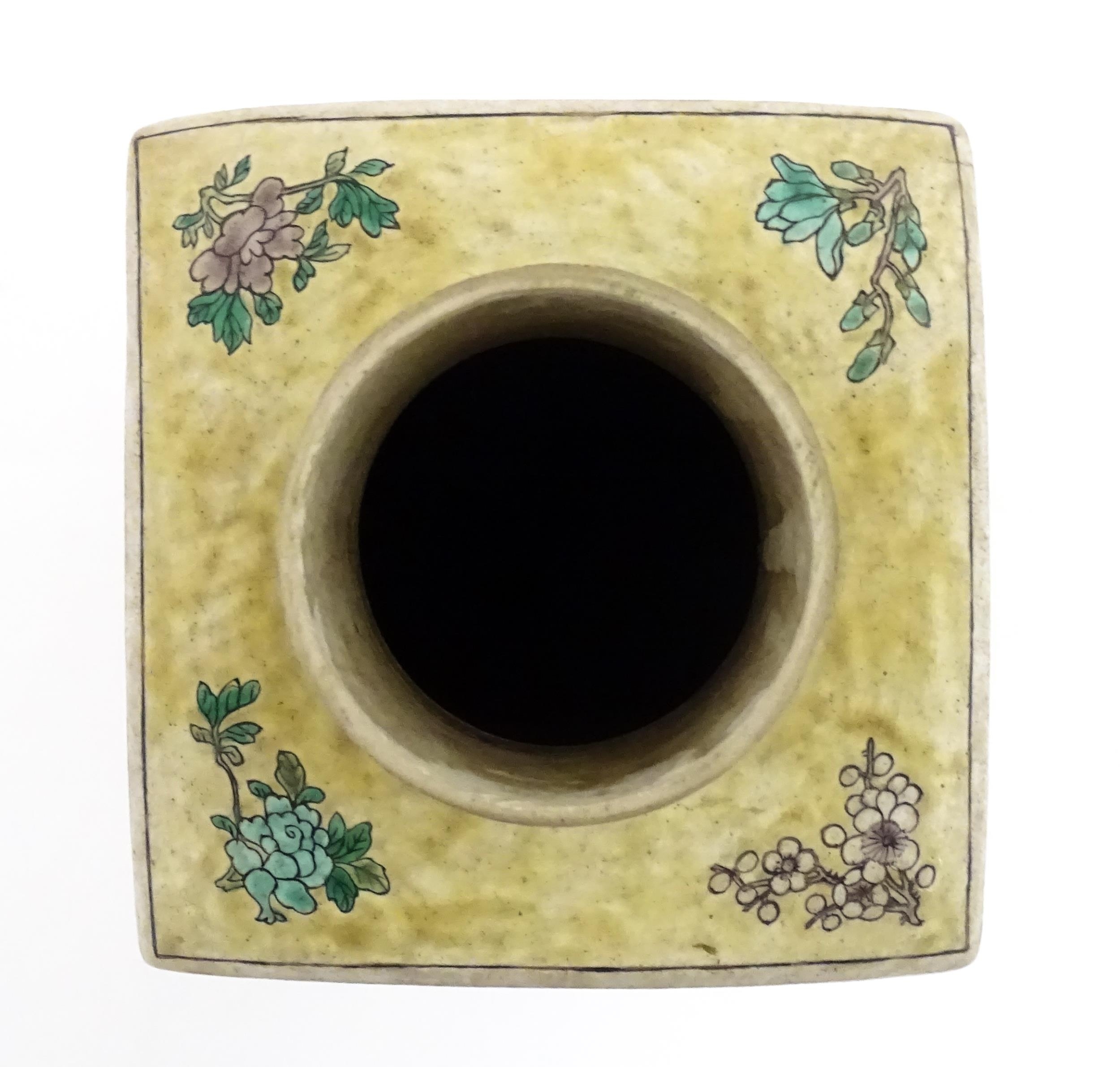 A Chinese vase of squared form with a yellow ground decorate...