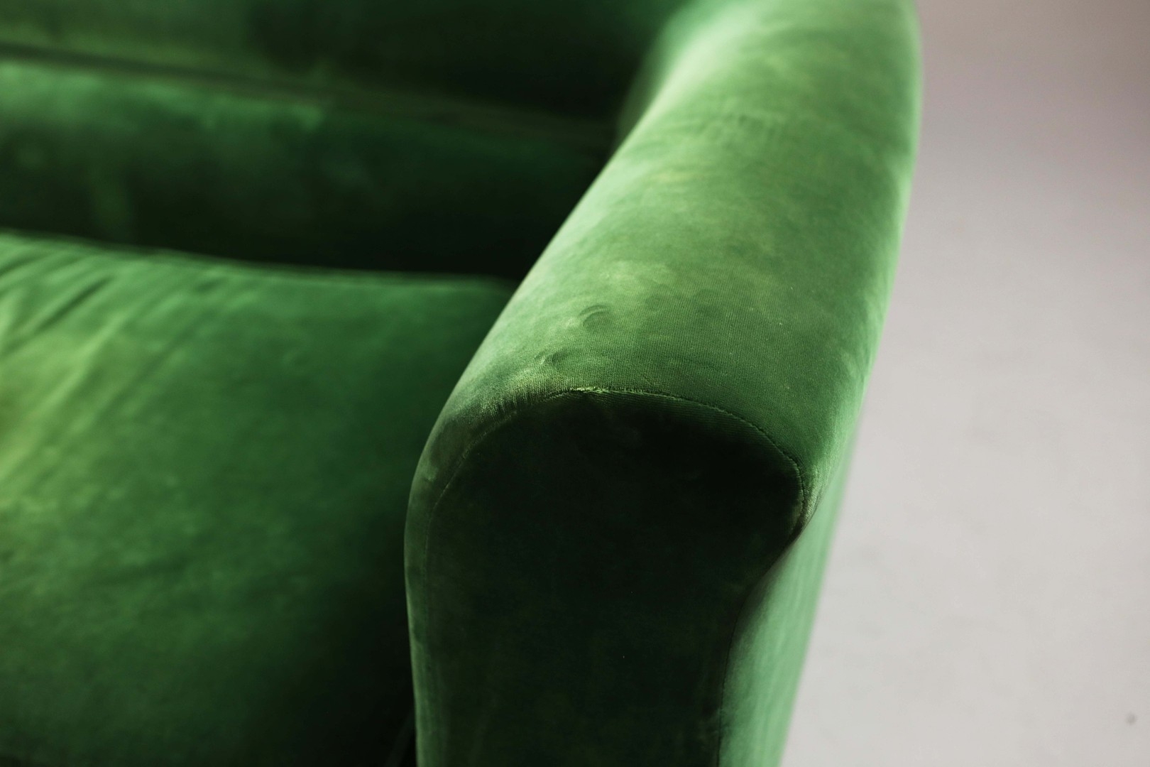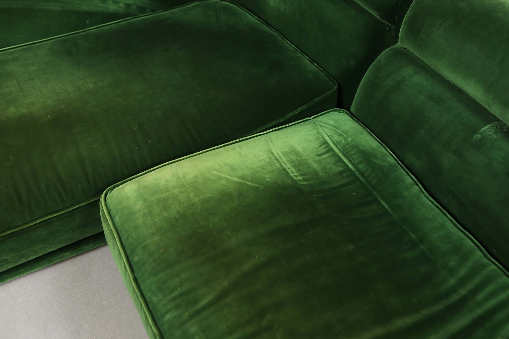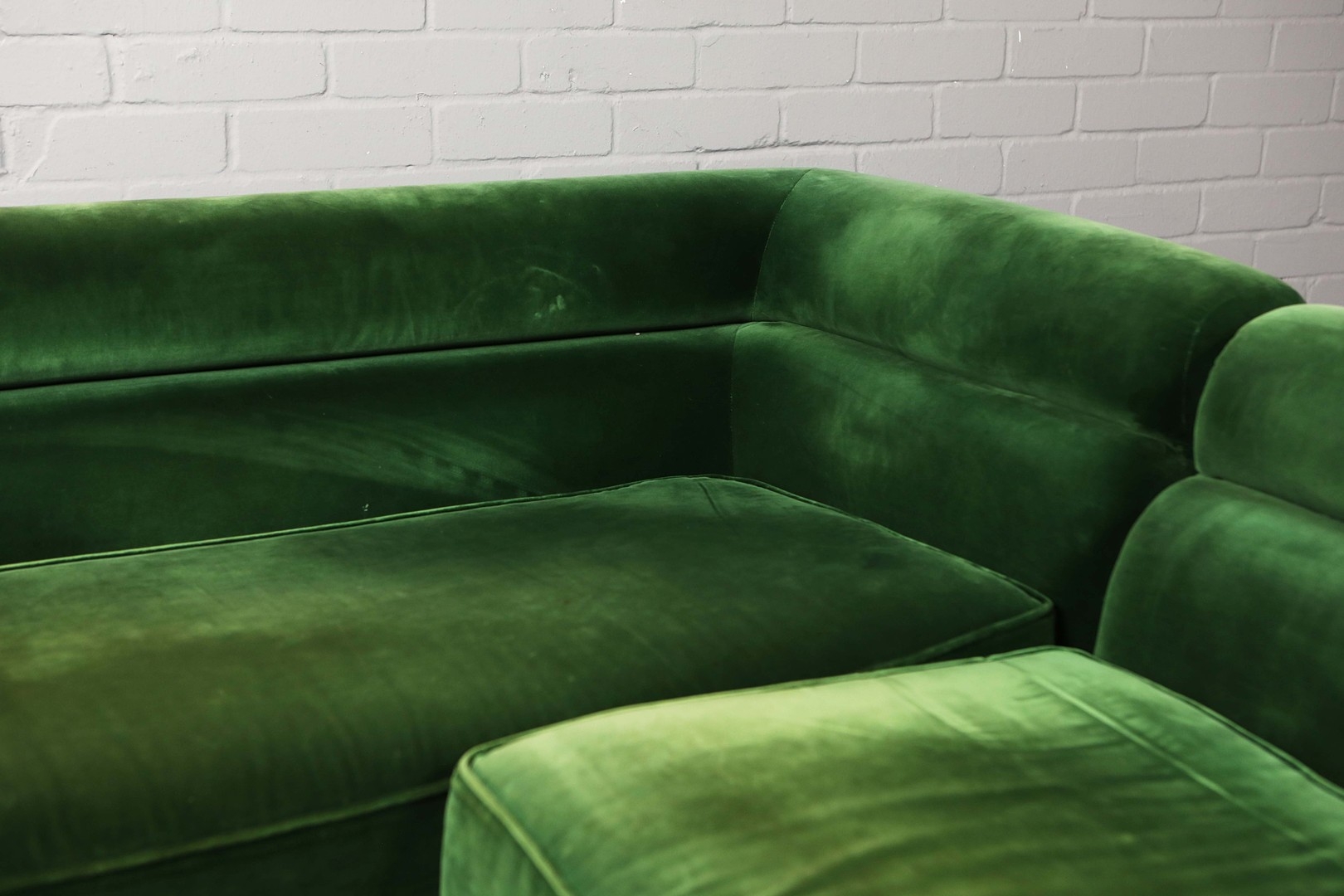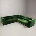 ATTRIBUTED TO ROCHE BOBOIS CORNER SOFA. green velvet upholstery, 230cm x 230cm x 45cm approx.