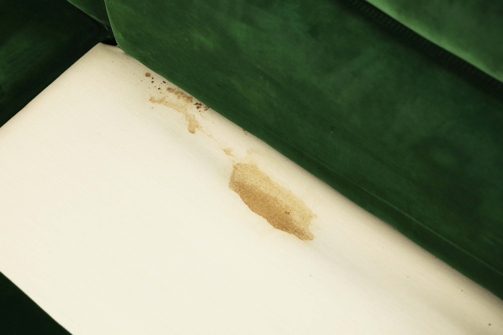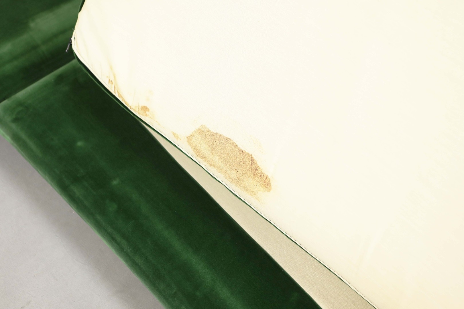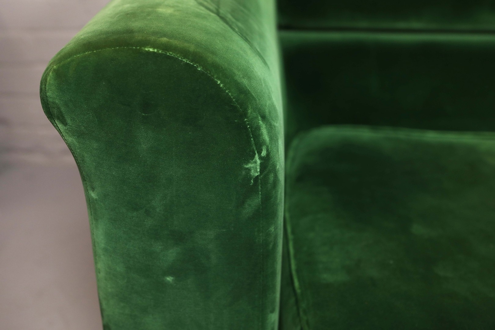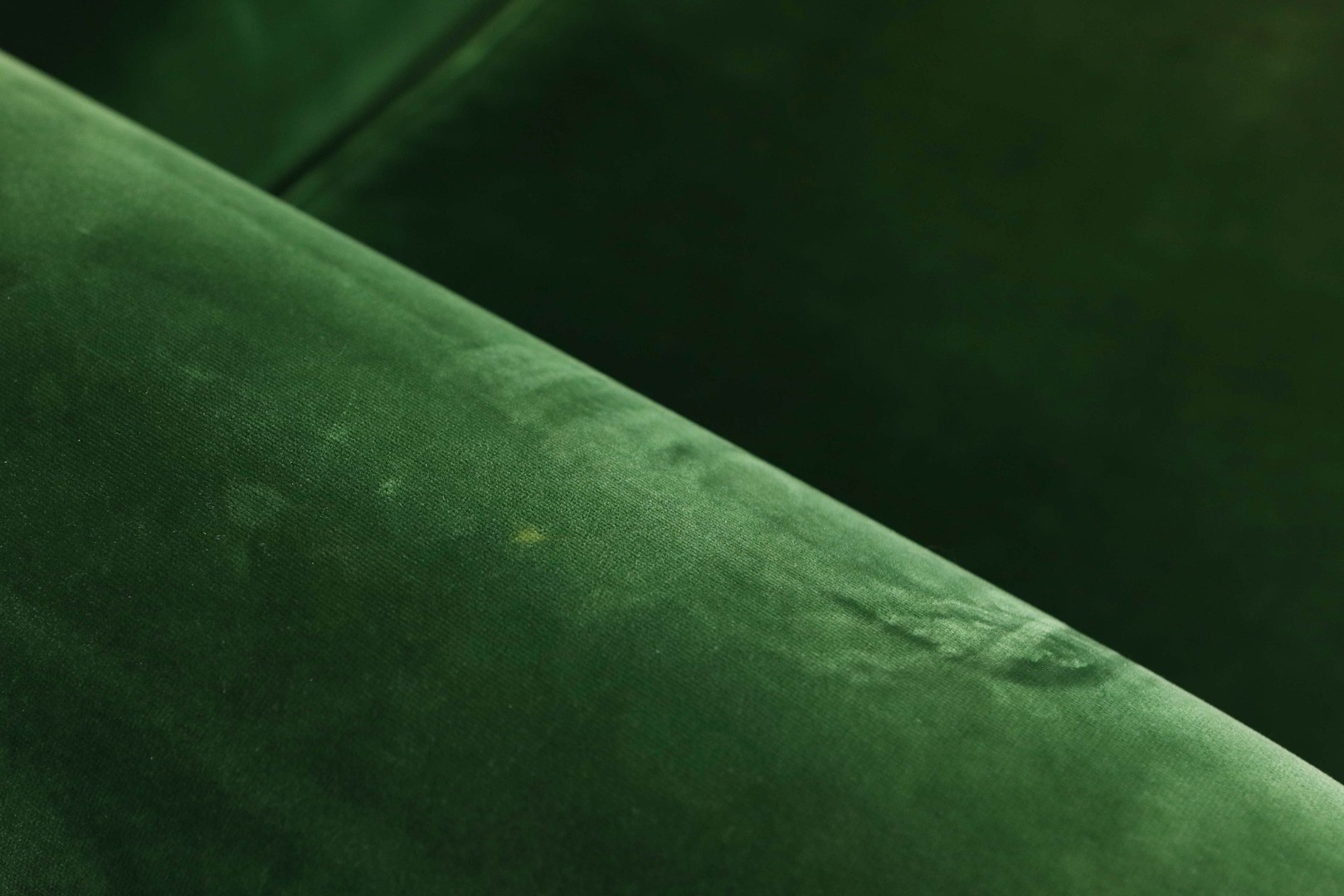 ATTRIBUTED TO ROCHE BOBOIS CORNER SOFA. green velvet upholstery, 230cm x 230cm x 45cm approx.