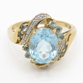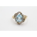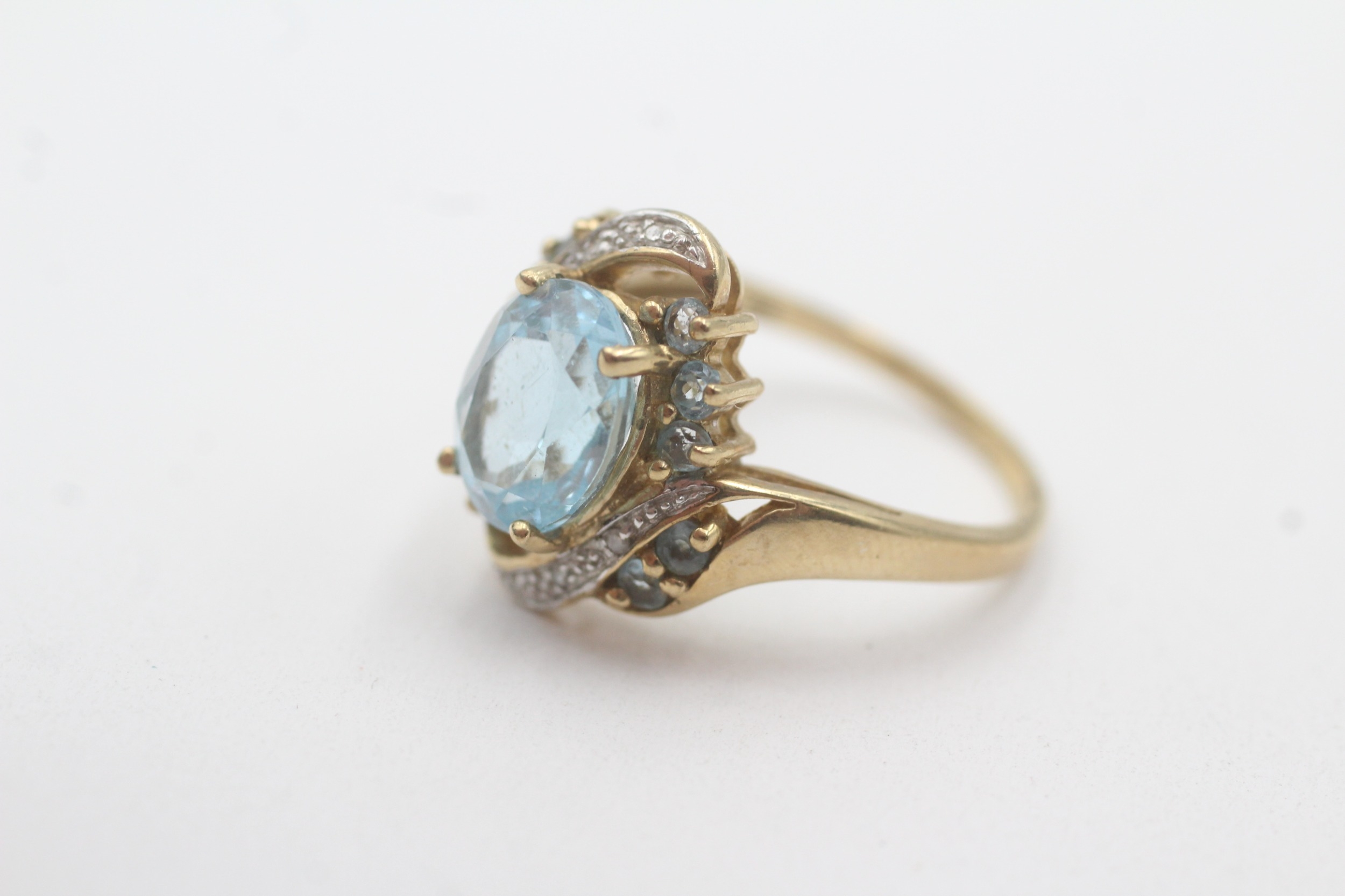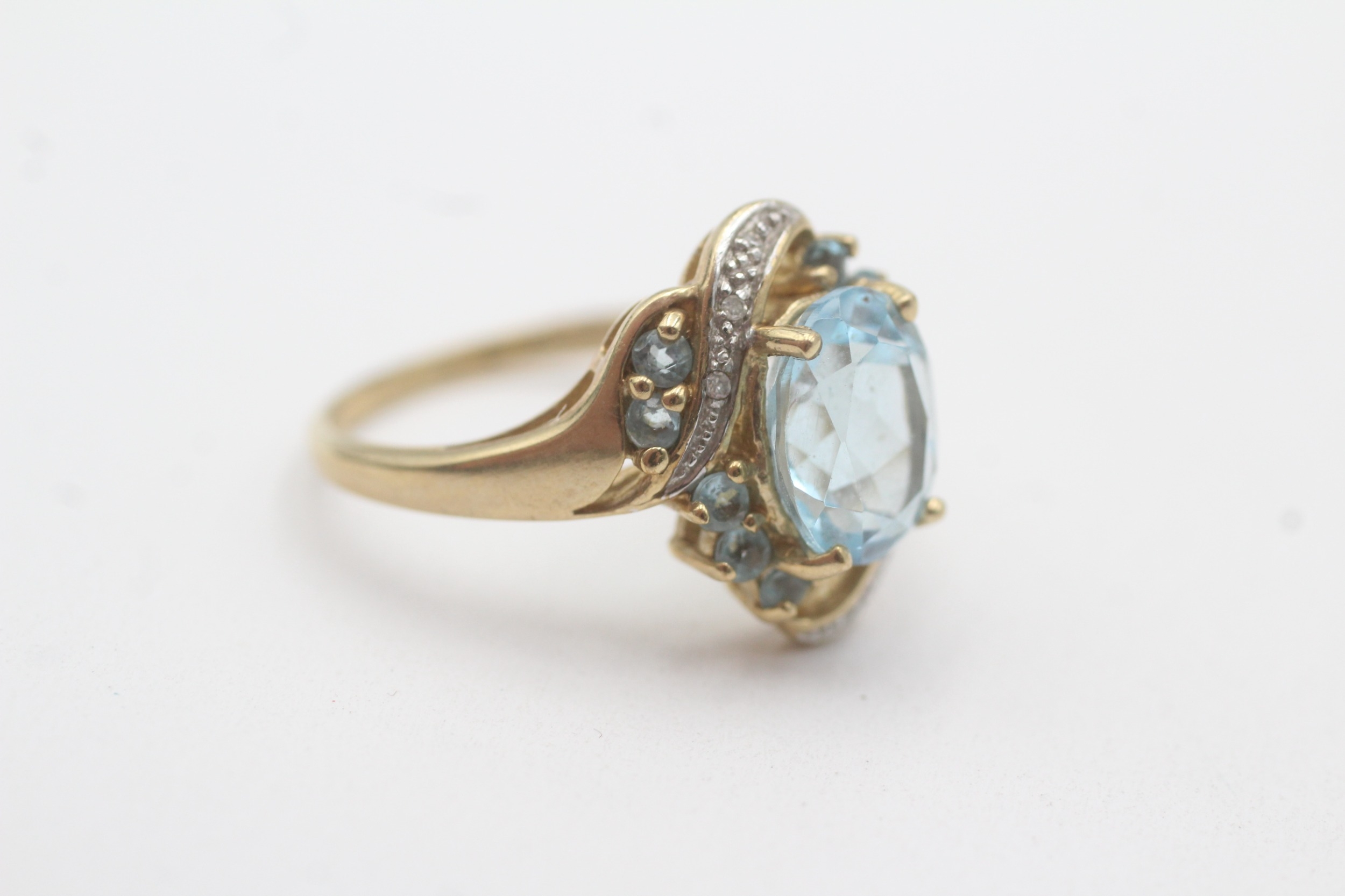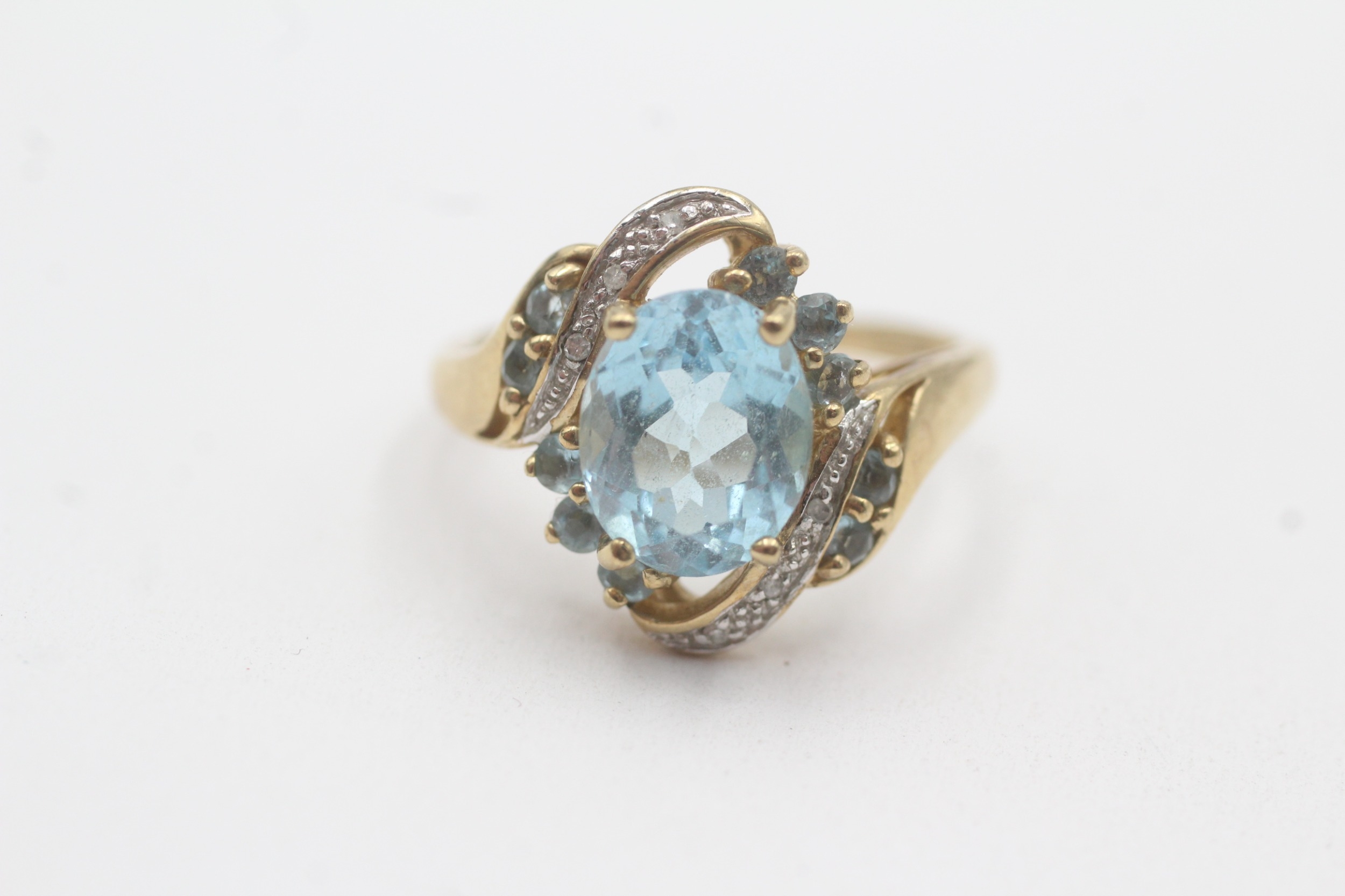 9ct gold topaz diamond cluster bypass ring (4.1g) Size P