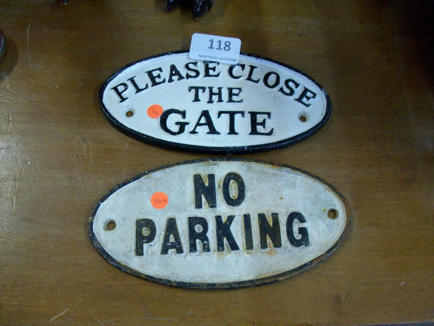 2 Small Cast Iron Signs