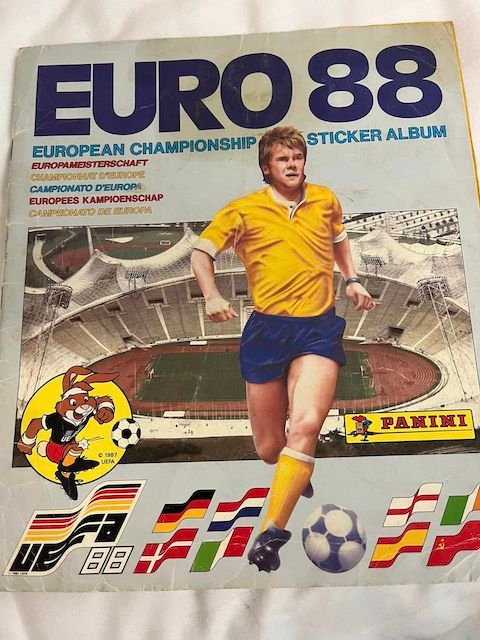 Euro 88 Panini Album Complete, Slight discouloring on cover. Creased front cover, Results written in. Loose Centre pages