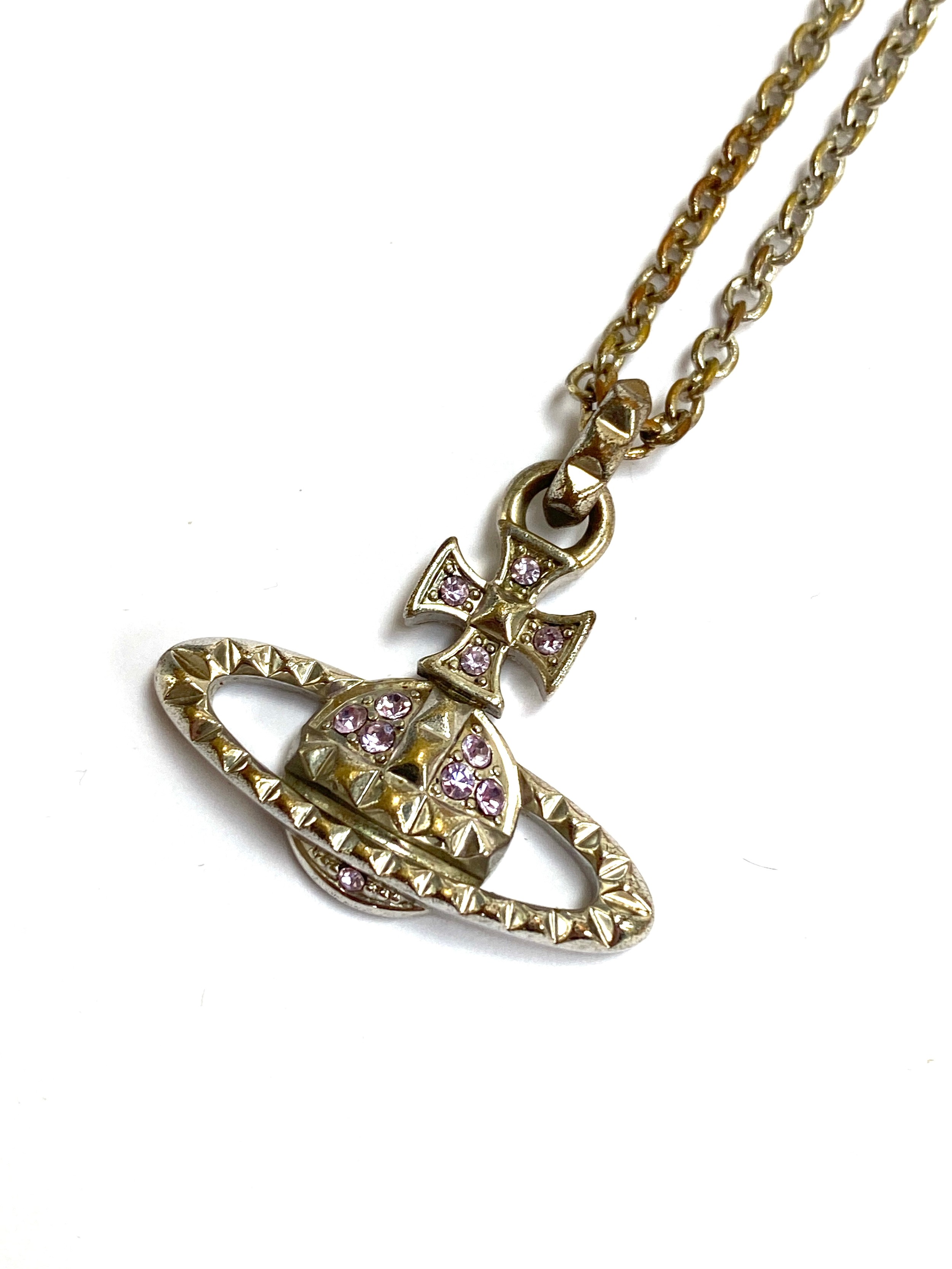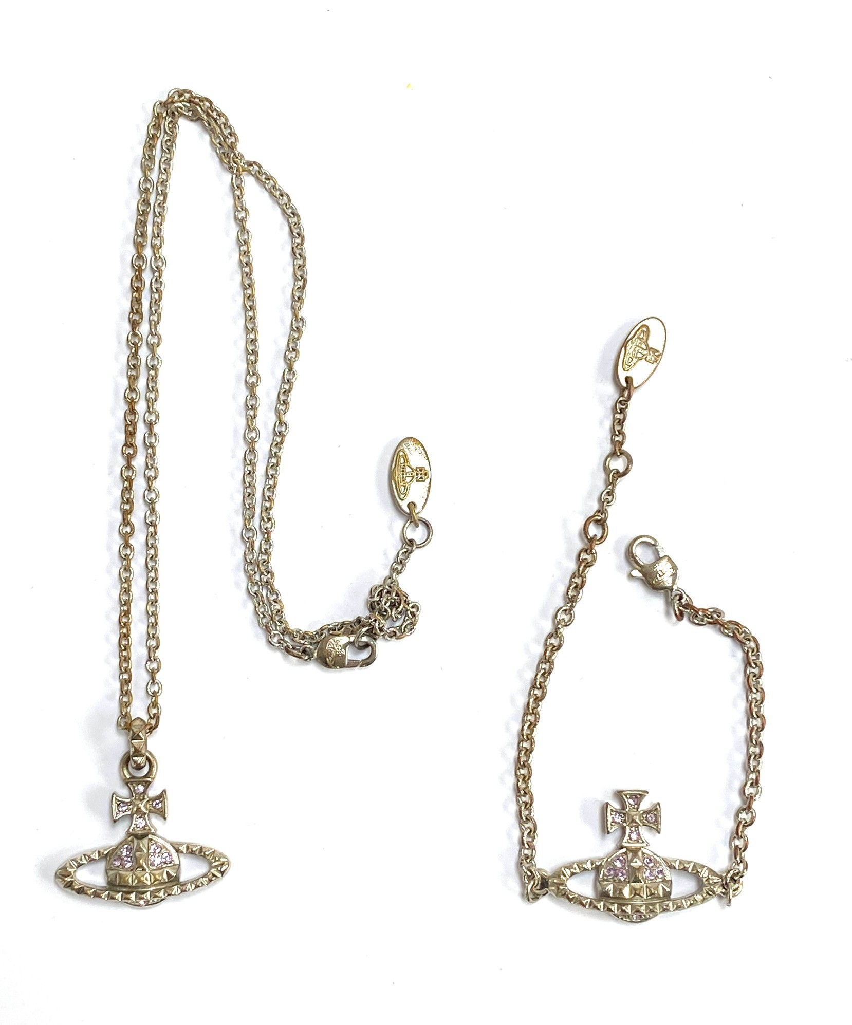 A Vivienne Westwood small orb pendant set with purple crystals, on chain, the pendant 2.6cmW, with matching bracelet