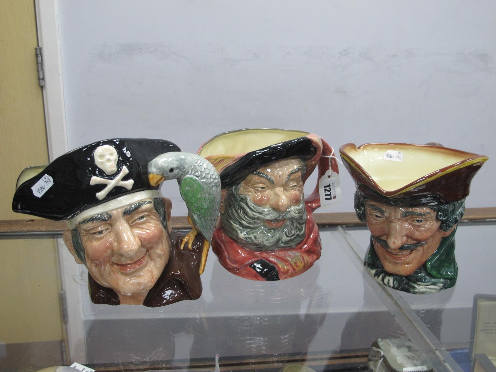 Royal Doulton Large Character Jugs - Dick Turpin, Falstaff and Long John Silver, (3).