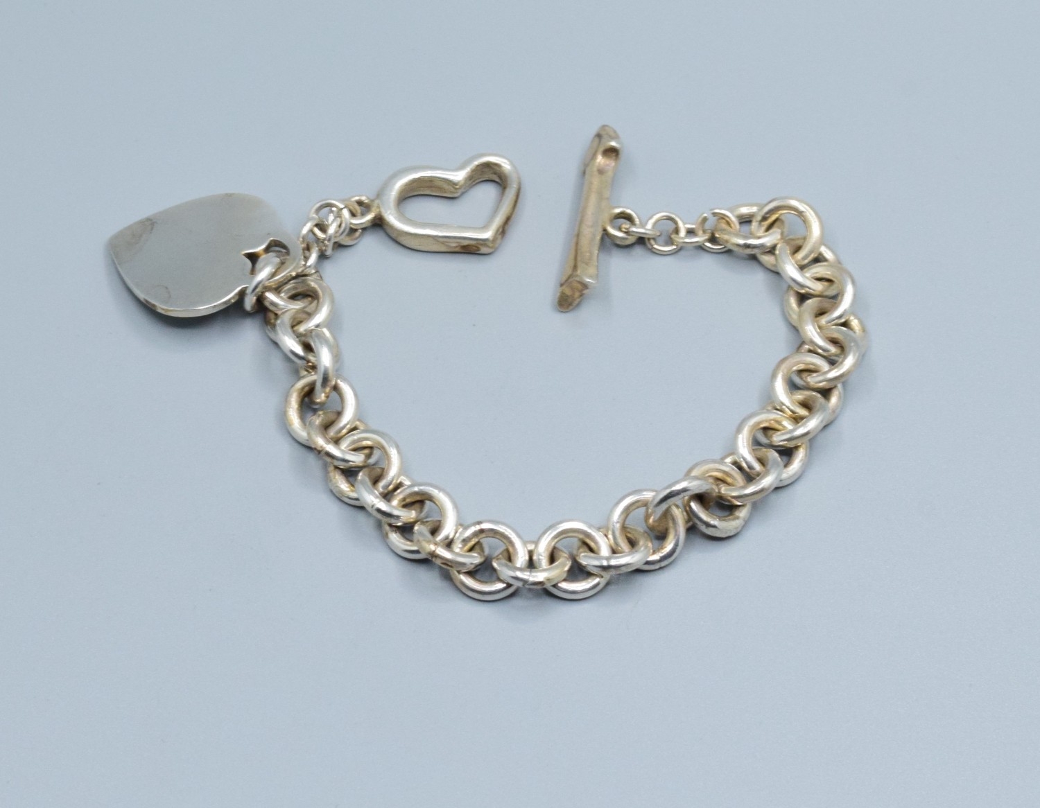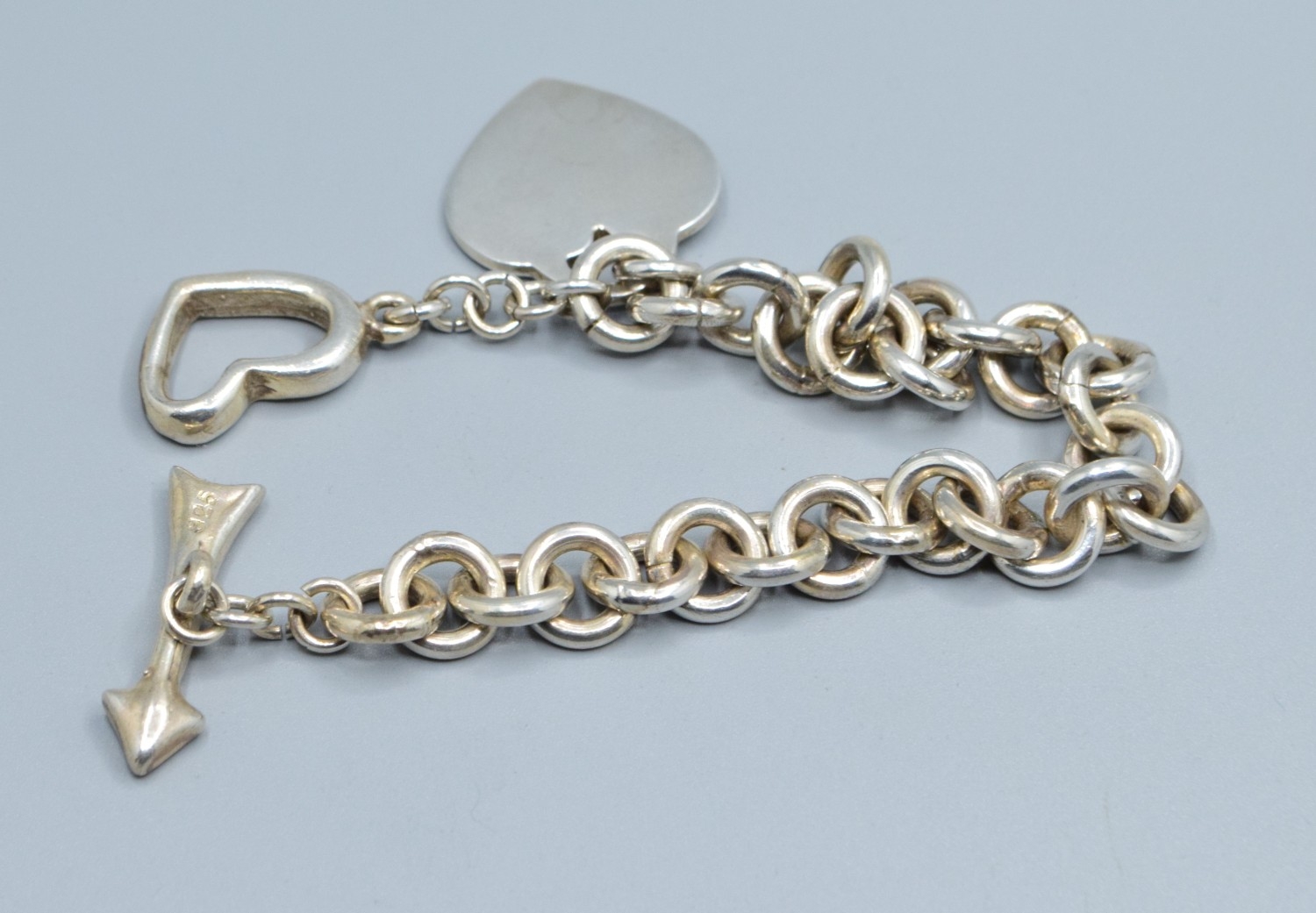 925 silver ladies double heart bracelet with the arrow clasp 18cm long 39grams