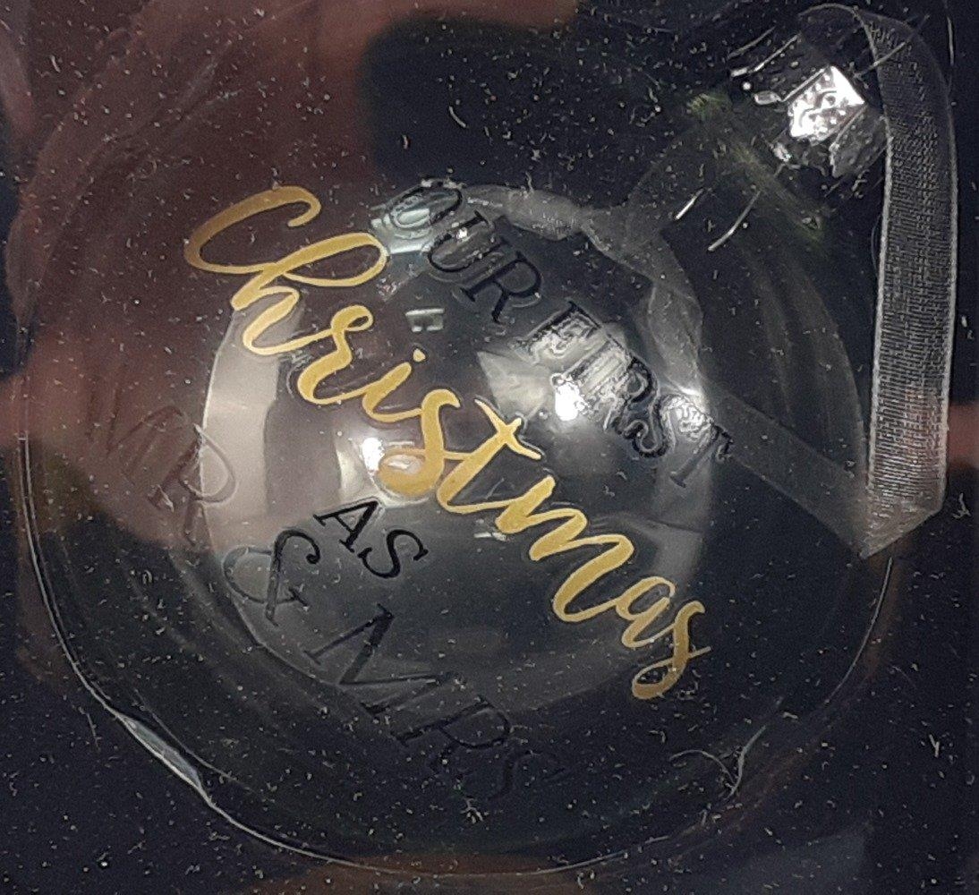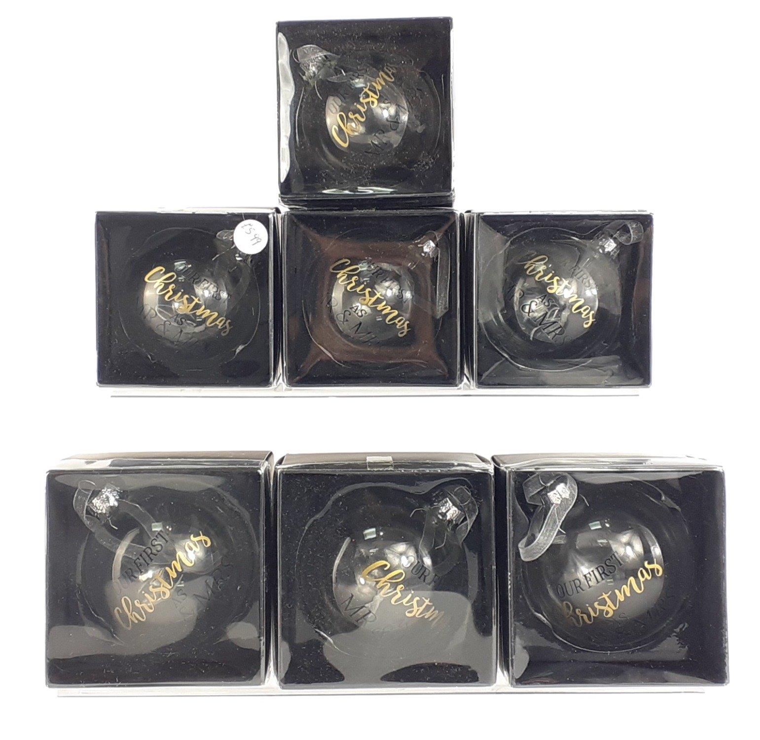 XMAS GIFTING IDEAS! - A set of 7 OUR FIRST CHRISTMAS as Mr and Mrs baubles. RRP £4 each