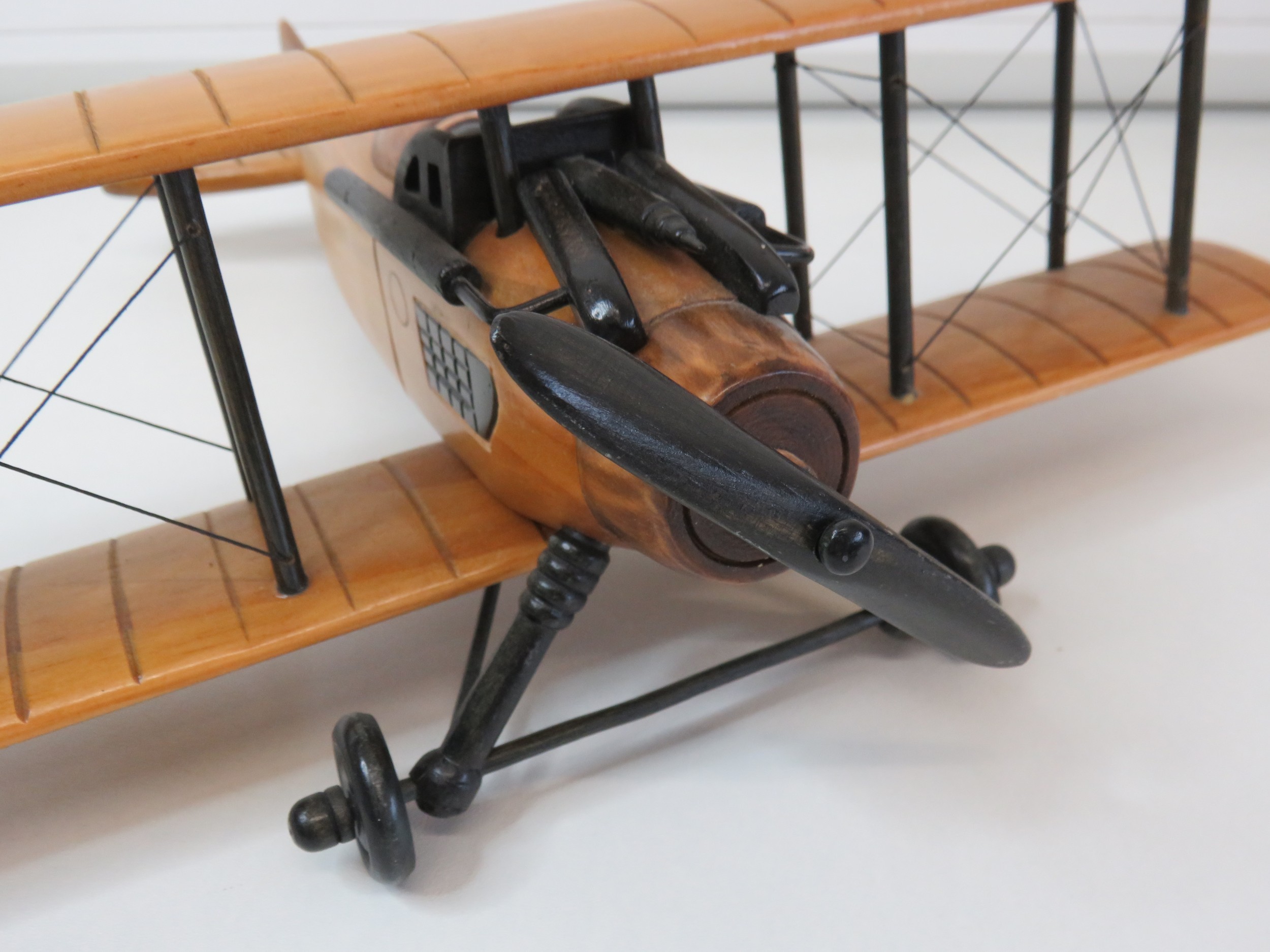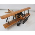 Hand crafted wooden model Biplane, W36cm x L34cms.