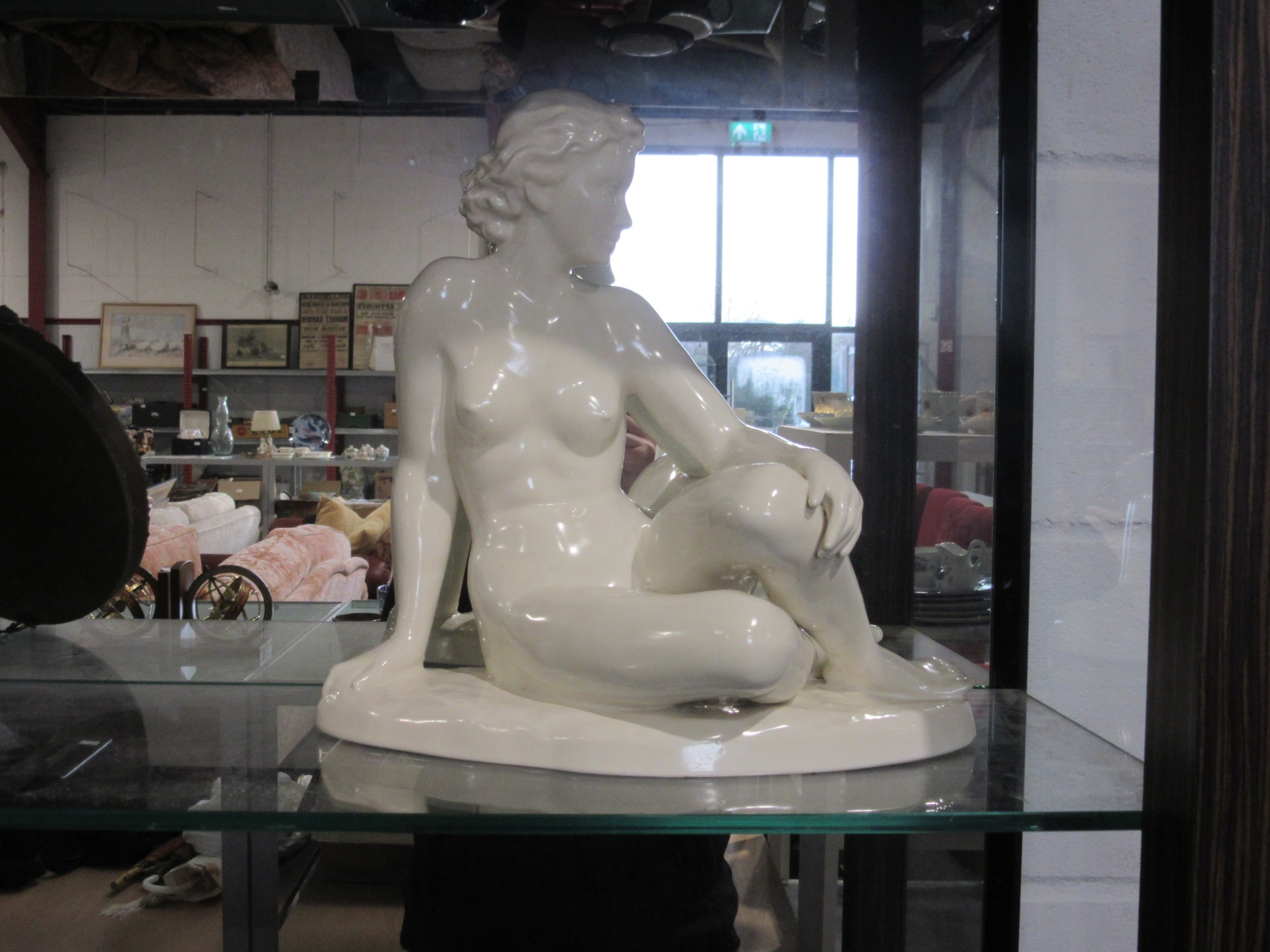 A Cortendorf cream glazed figurine of a seated nude female. 31cm tall