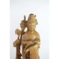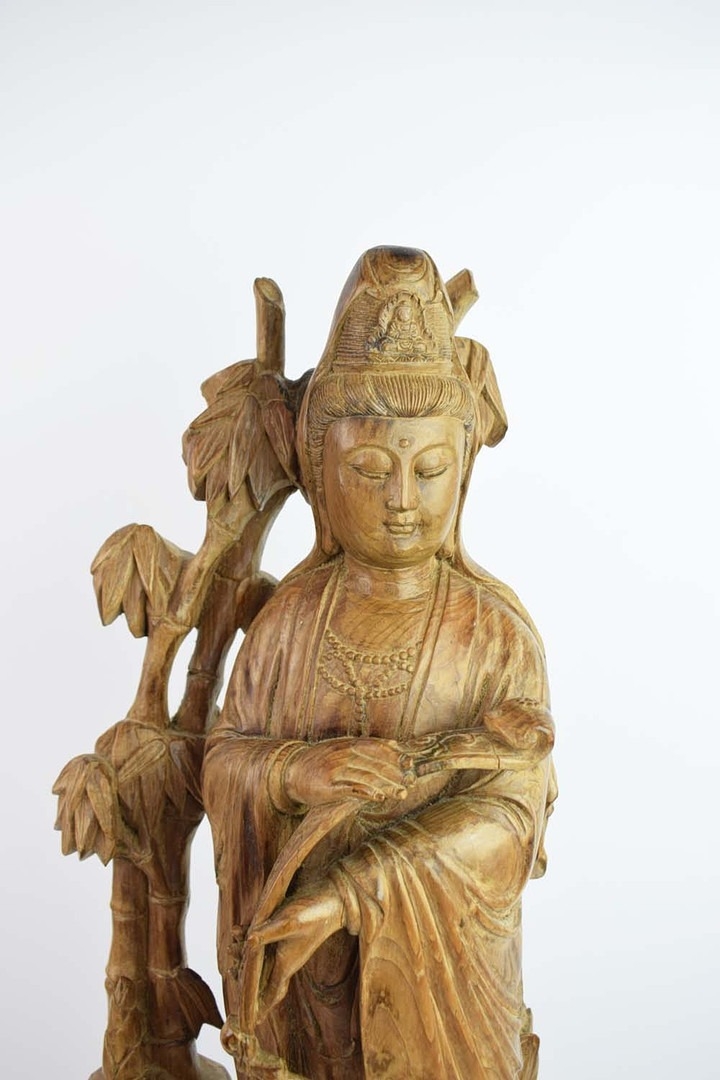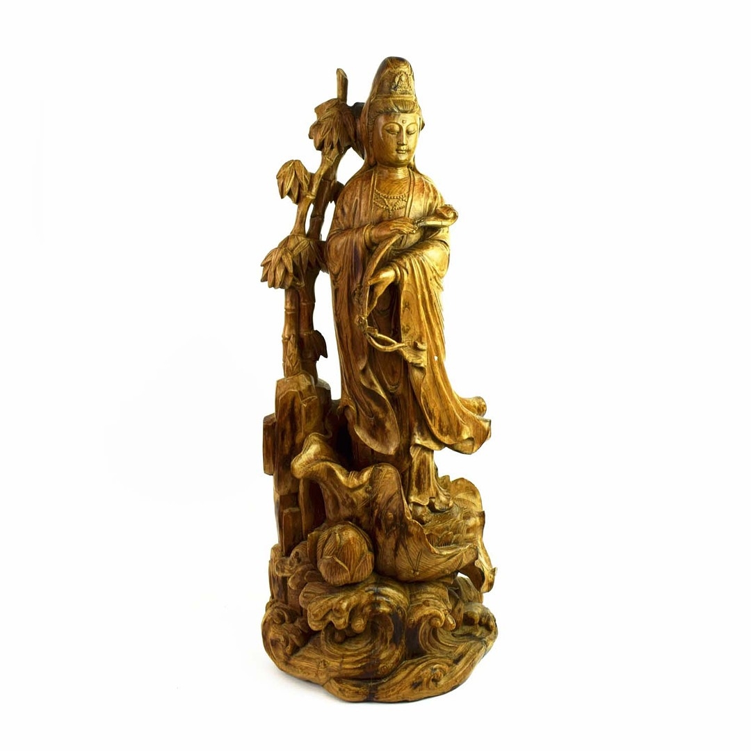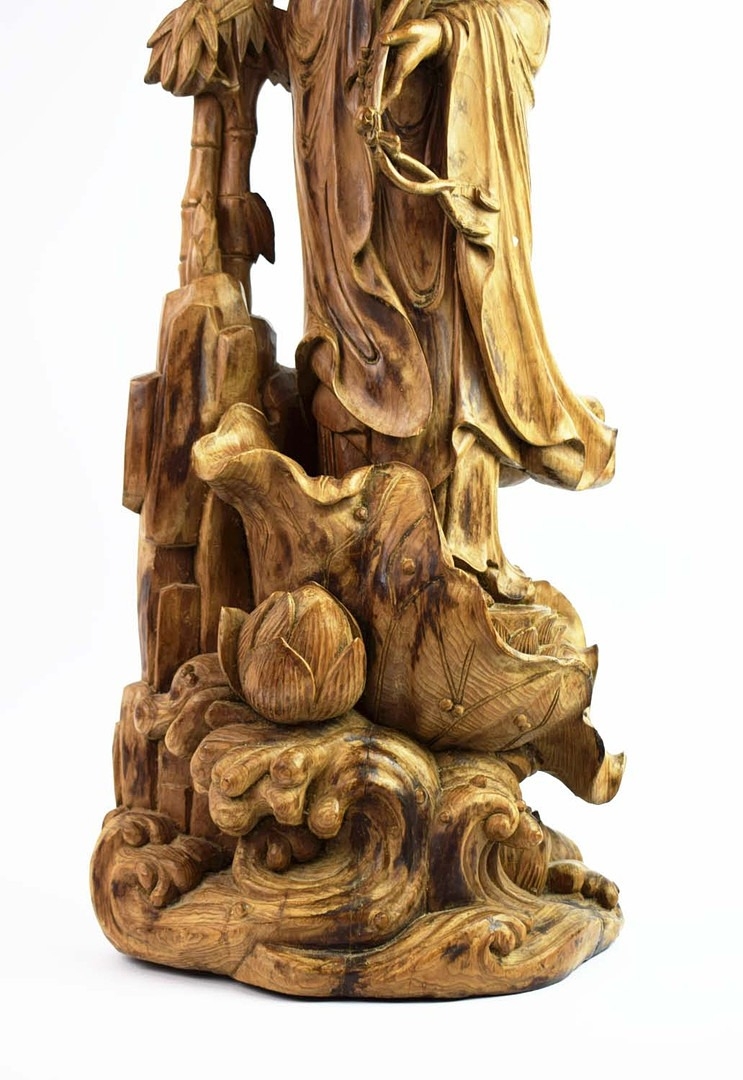 A CHINESE CARVED WOOD FIGURE OF GUANYIN. ornately carved Chinese hardwood. 69cm H.