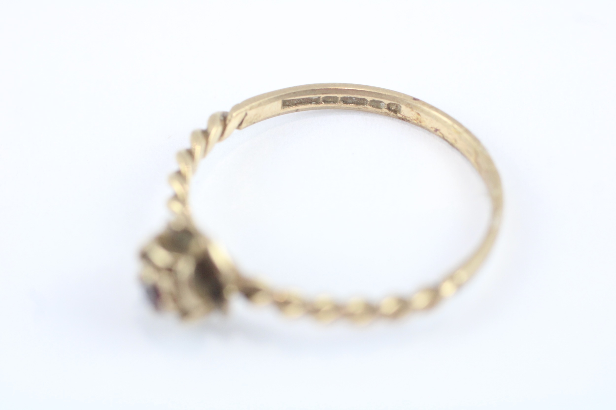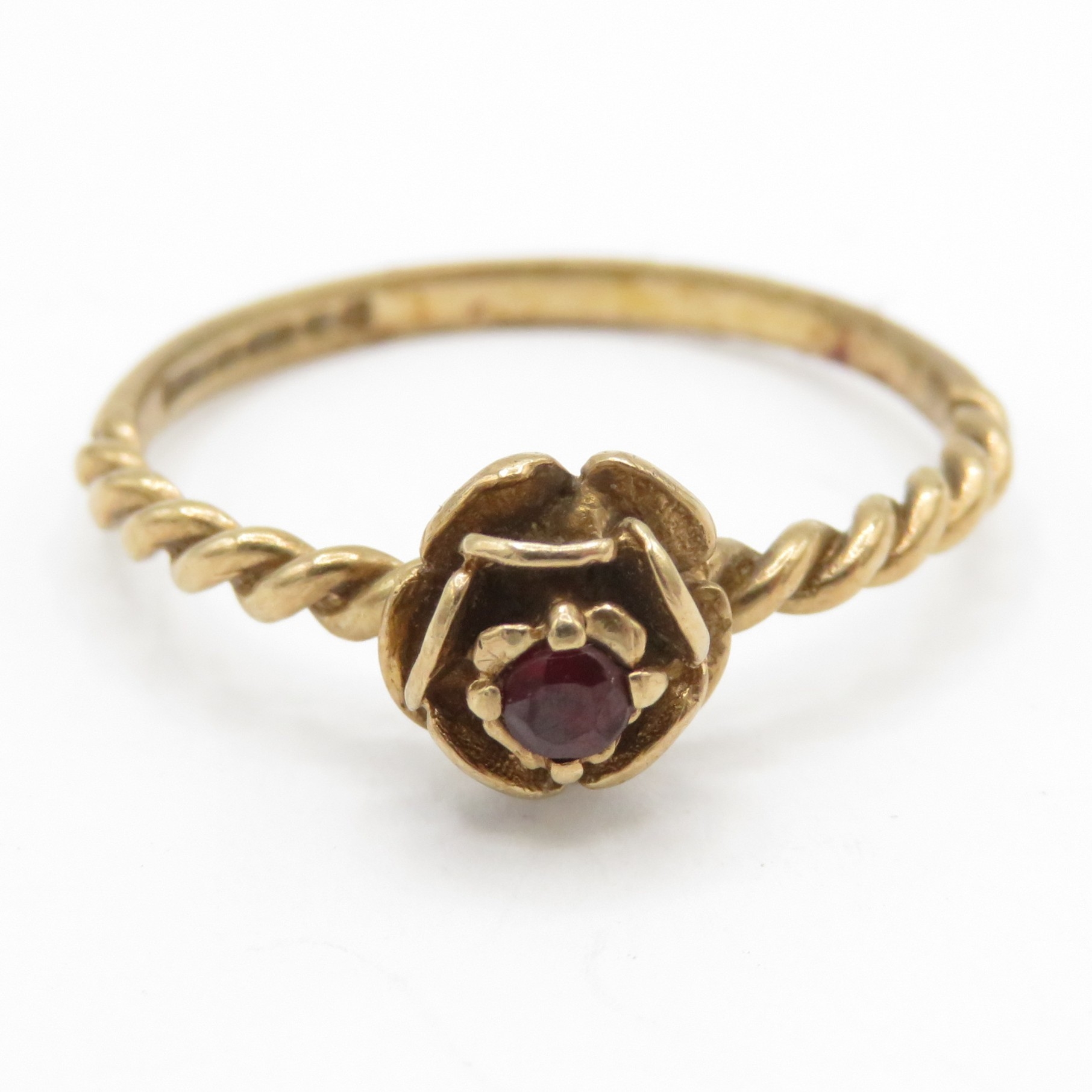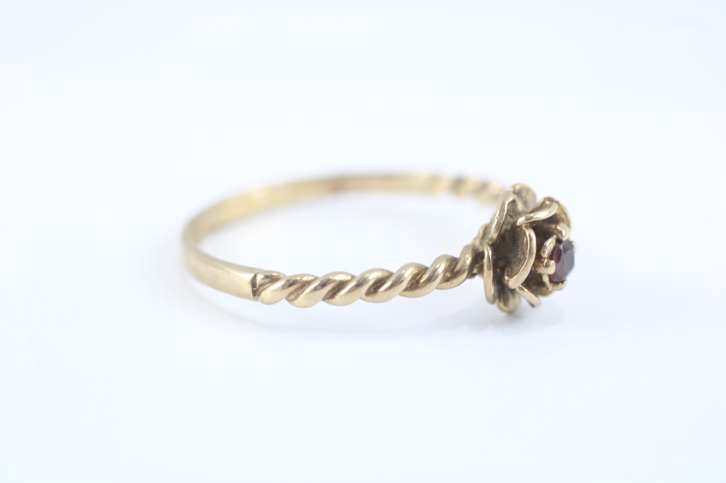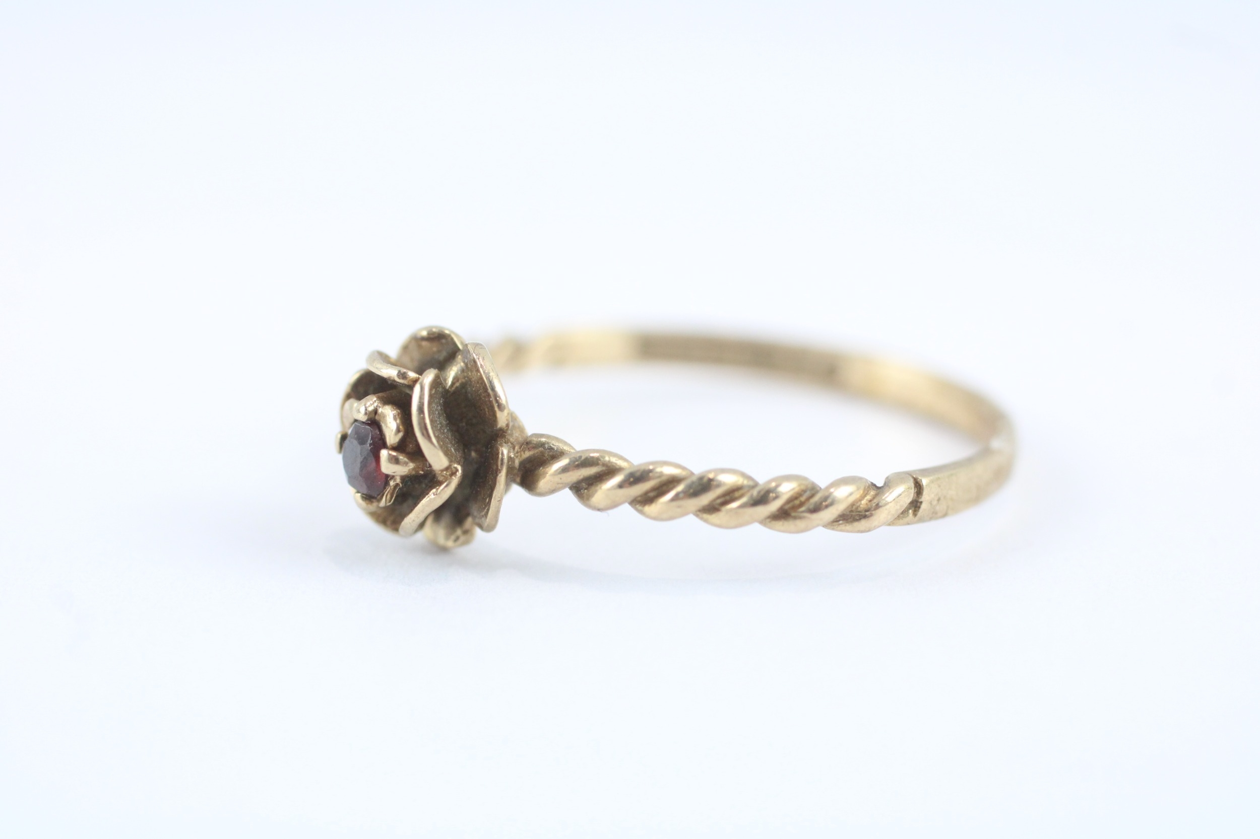 9ct gold garnet rose ring (2g) Size U