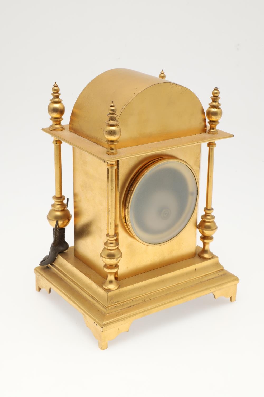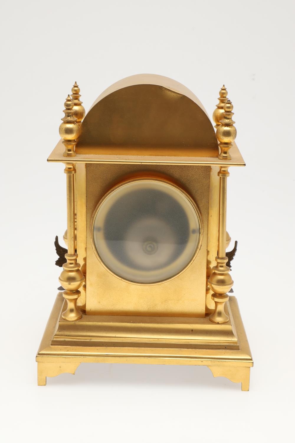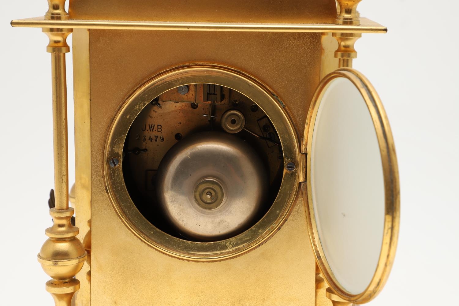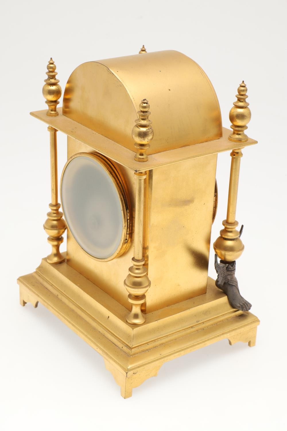 Some wear to the gilt metal, clock fully wound but strikes. No pendulum or winder.