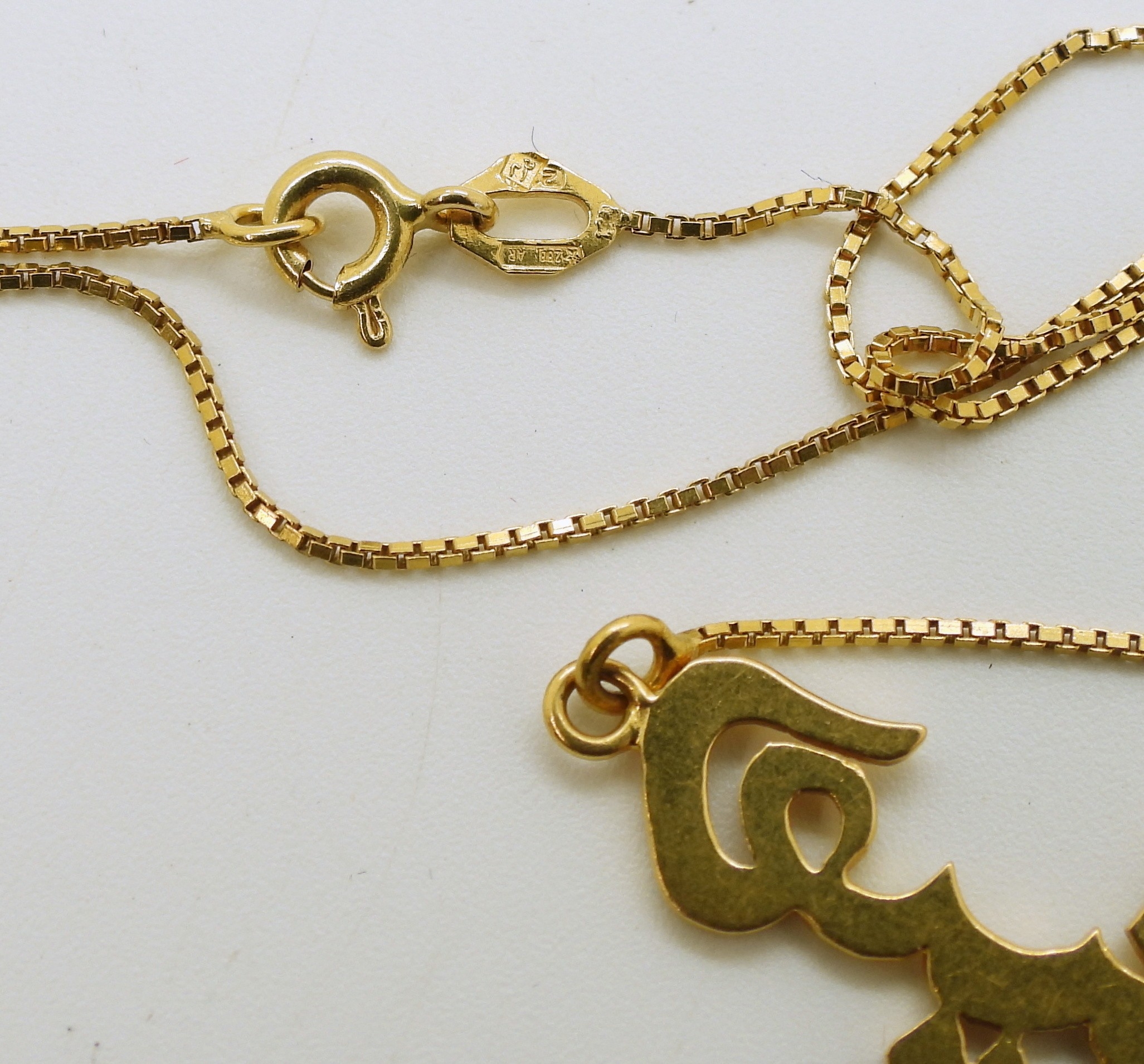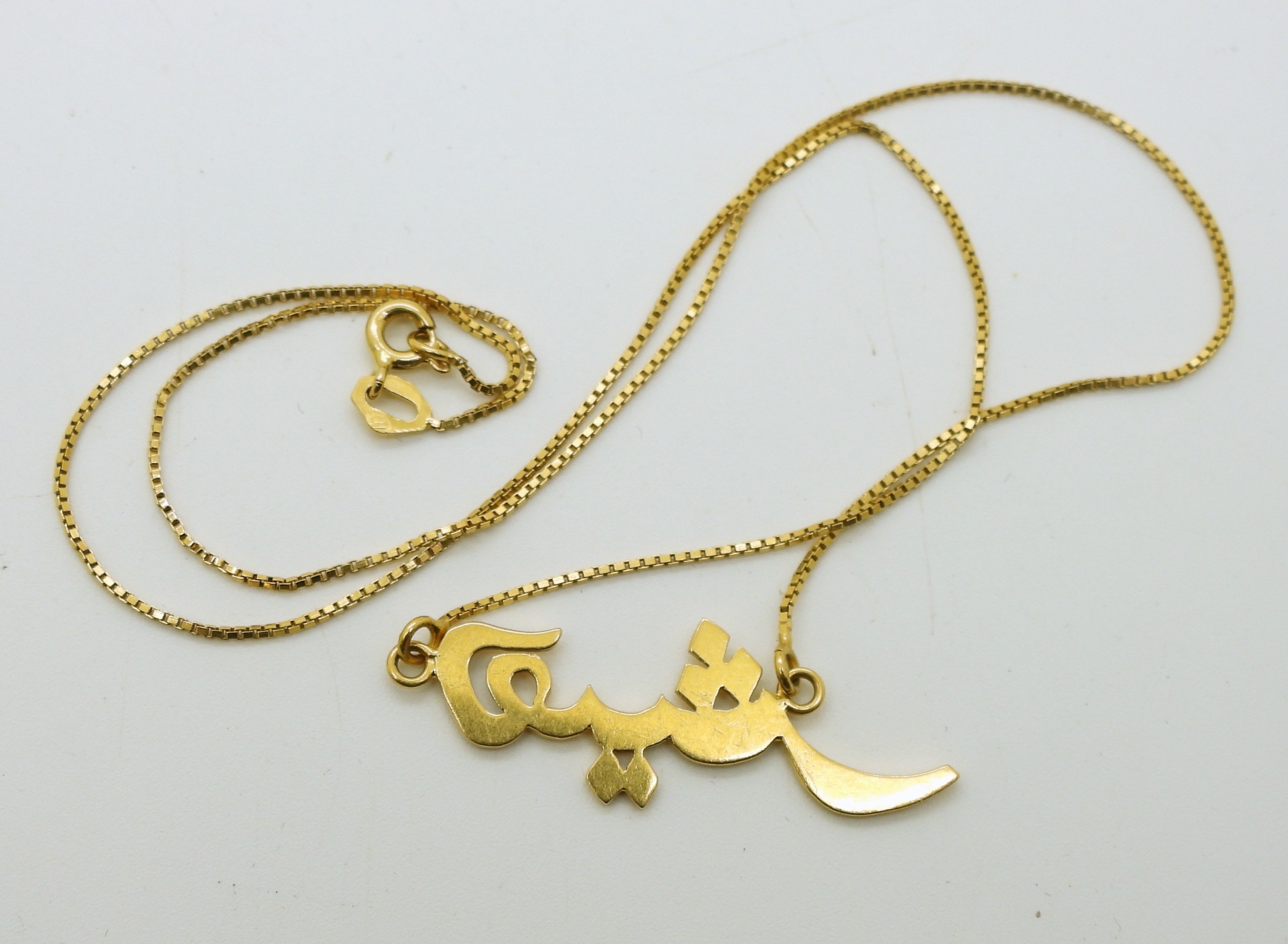 A high carat Arabic gold necklace, length 43cm, weight 5.1gms