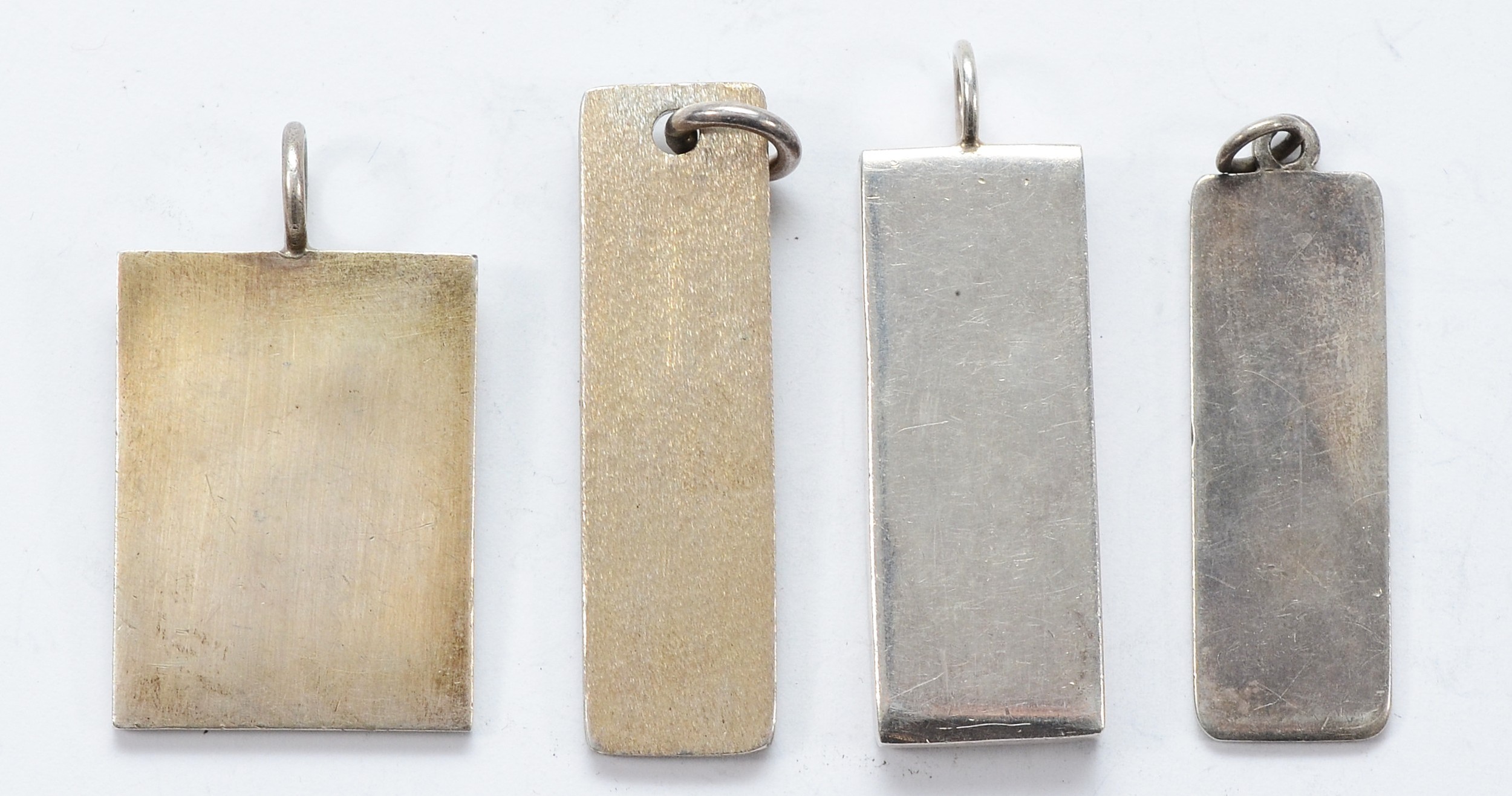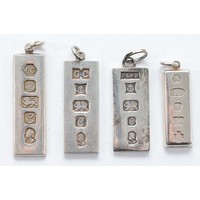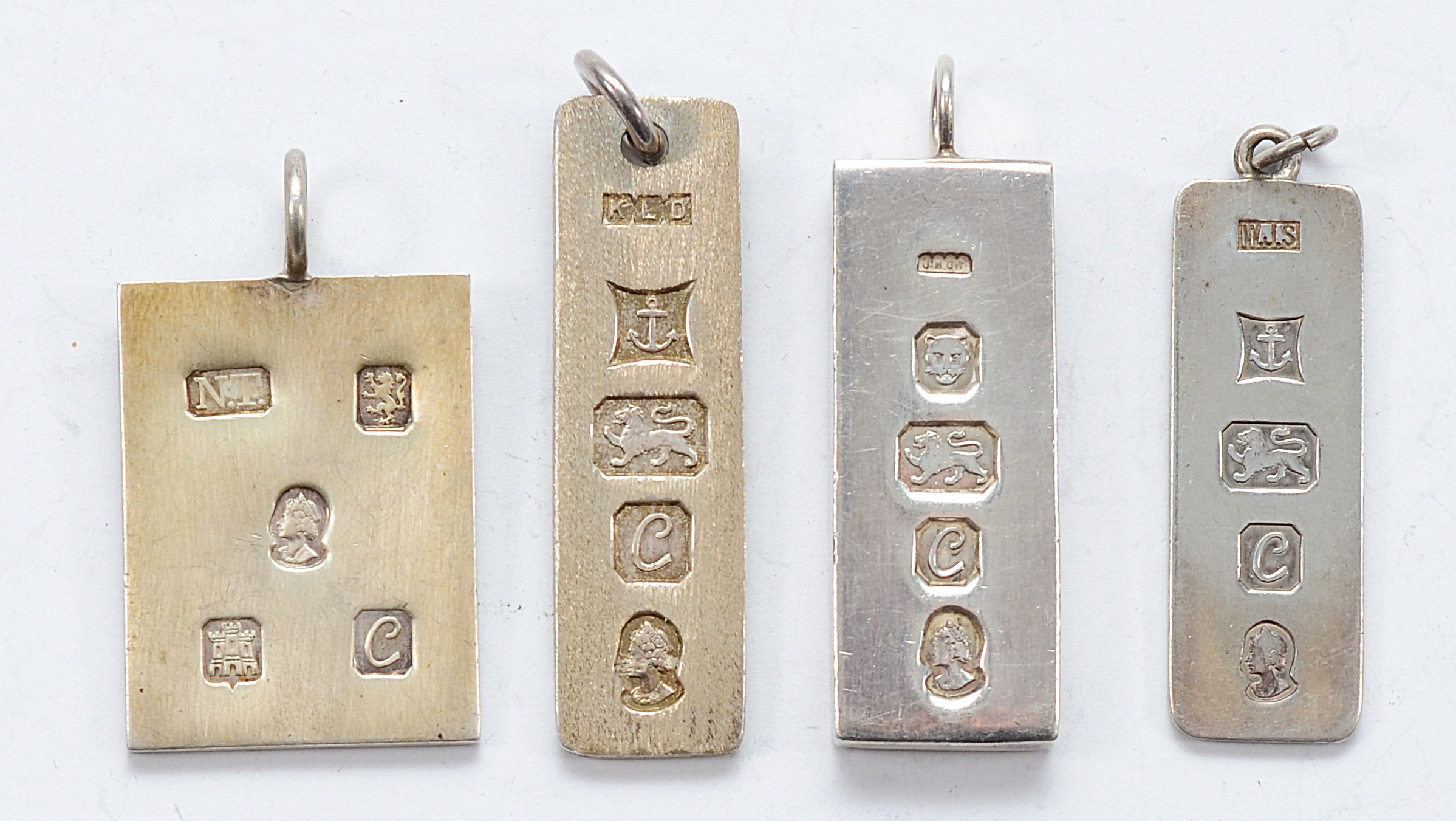 Four 1977 silver ingot pendants, from Edinburgh, London and Birmingham, 67g
