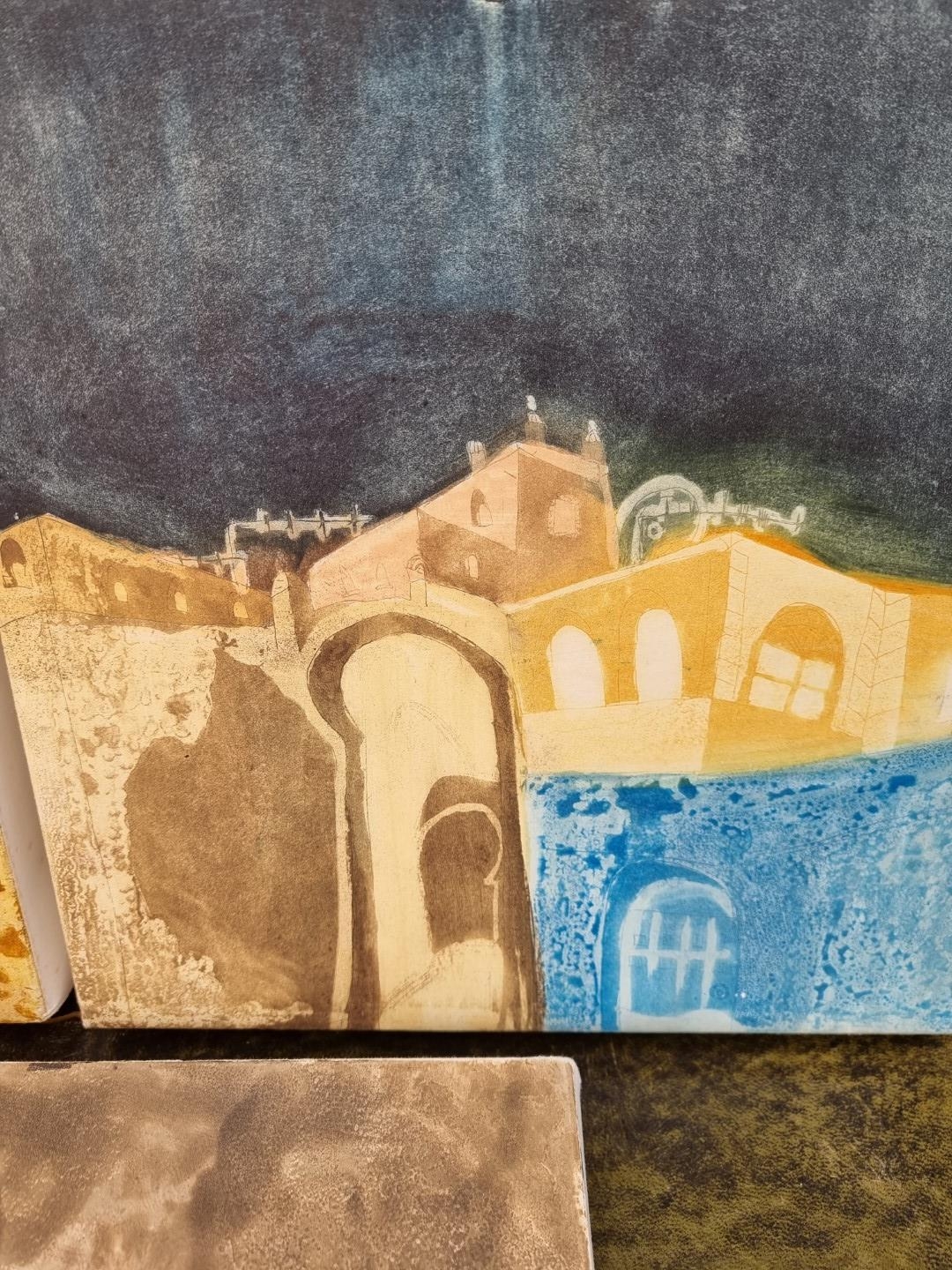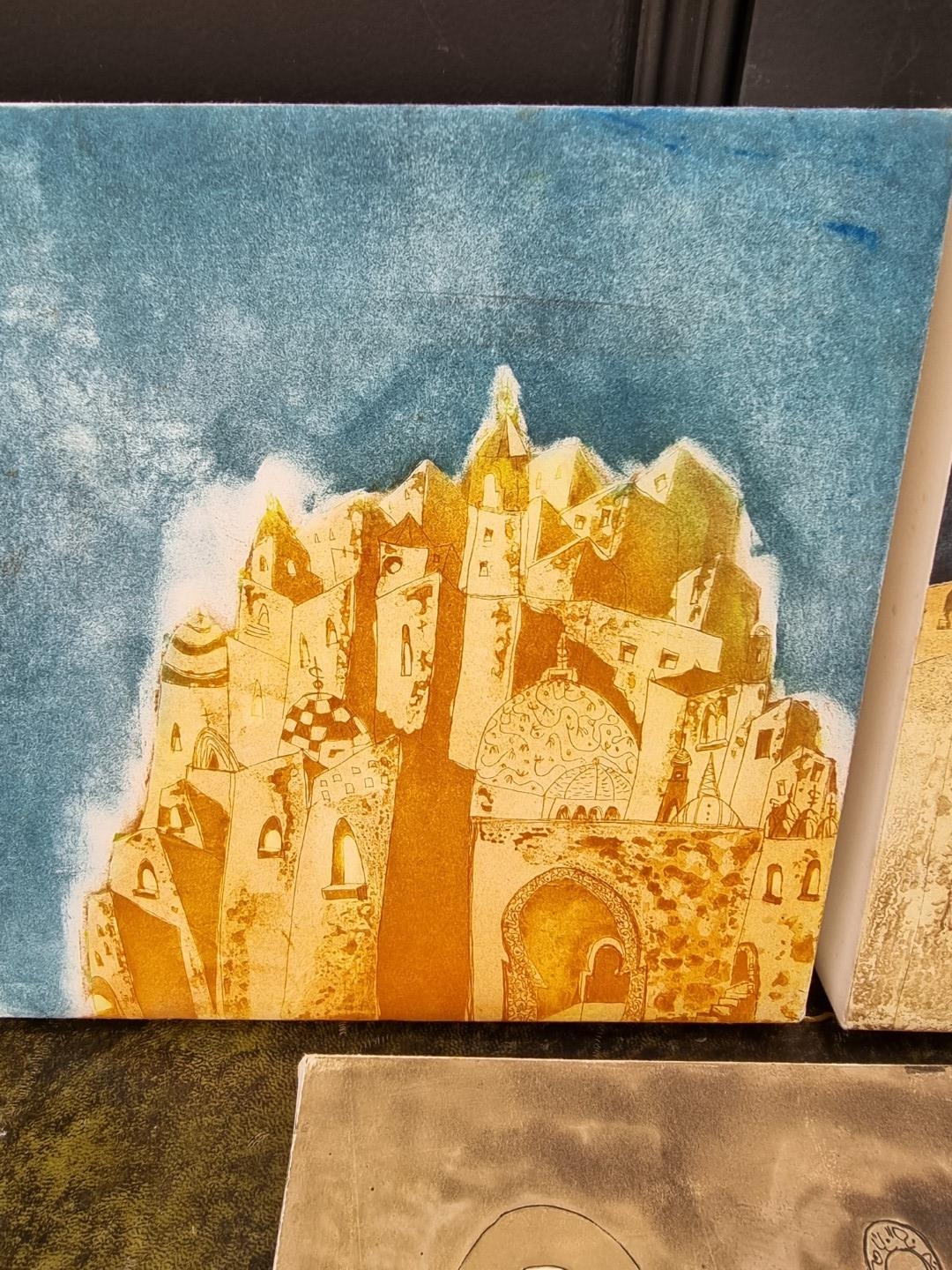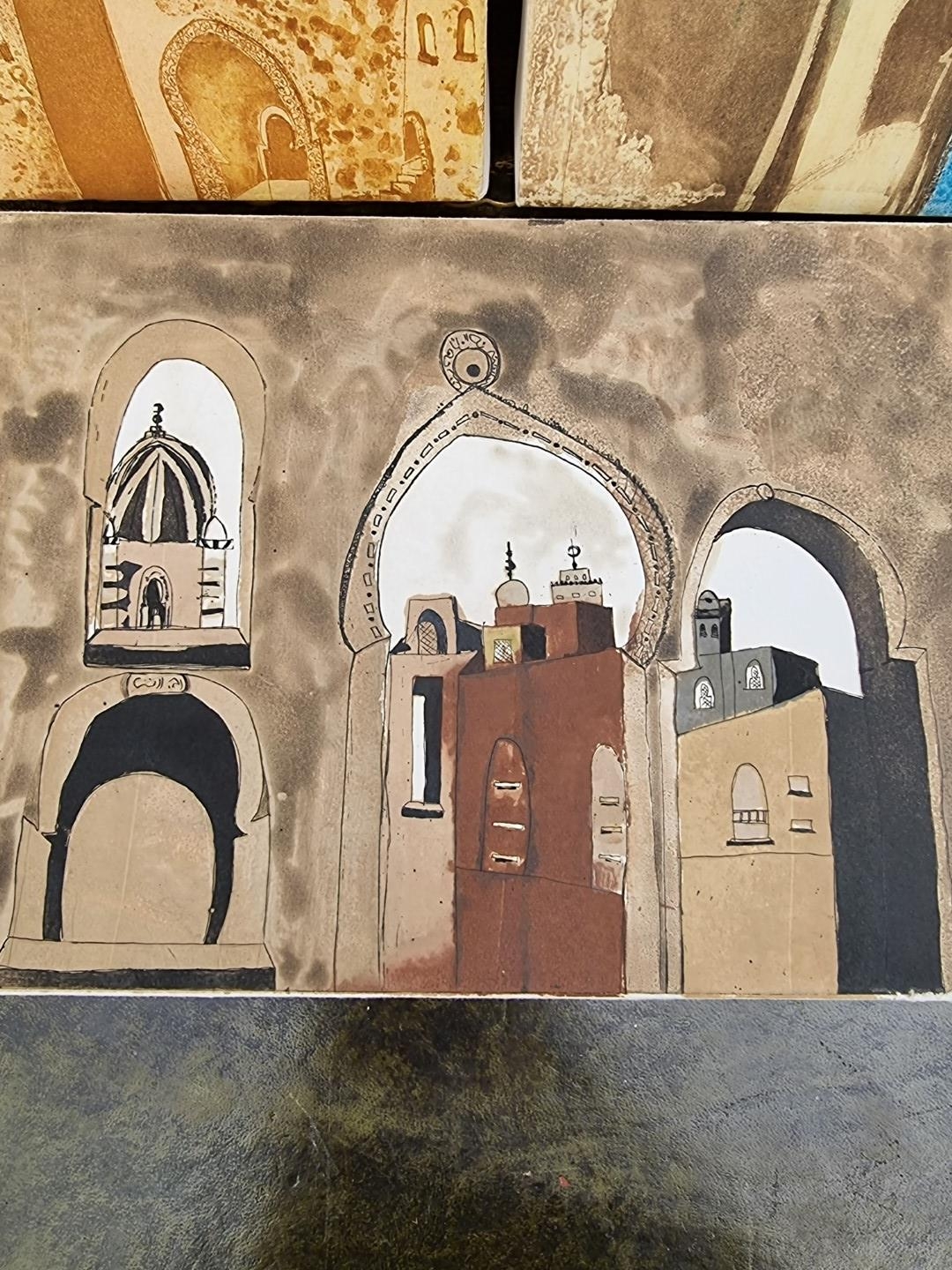 Evelyn Egan, Moorish buildings, a pair, labelled verso, watercolour, 29.5 x 30cm; together with another similar by the same hand, all unframed. (3)