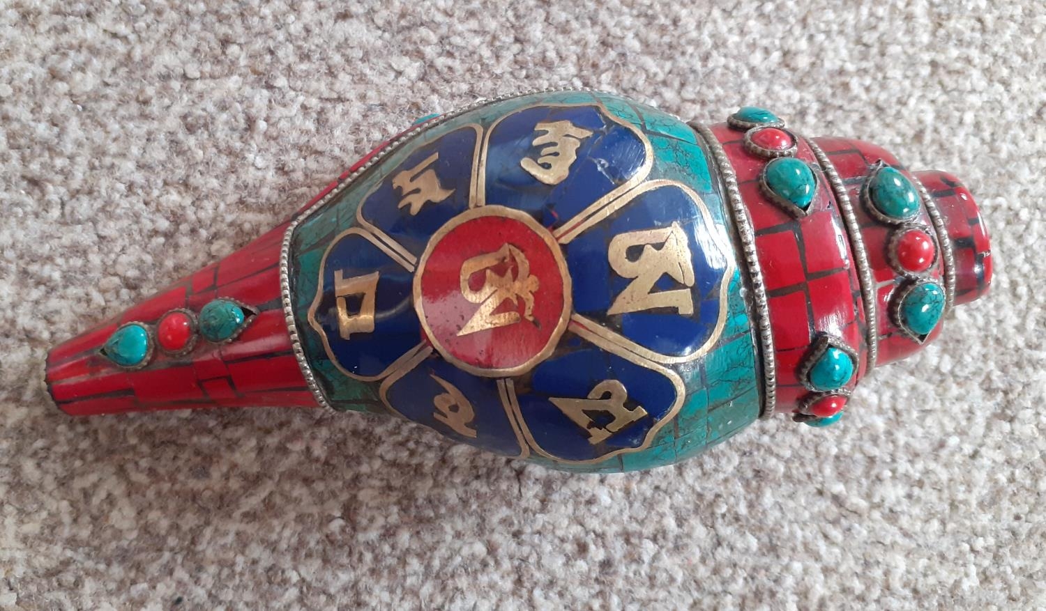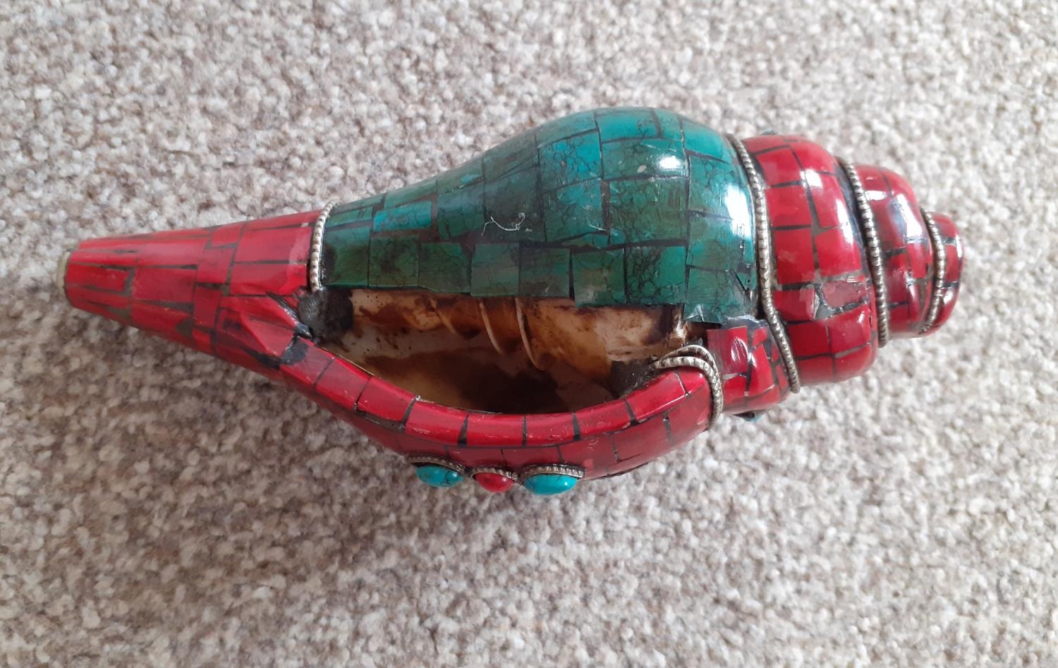 Tibetan Conch Shell - Decorated Length - 15.5 cm
