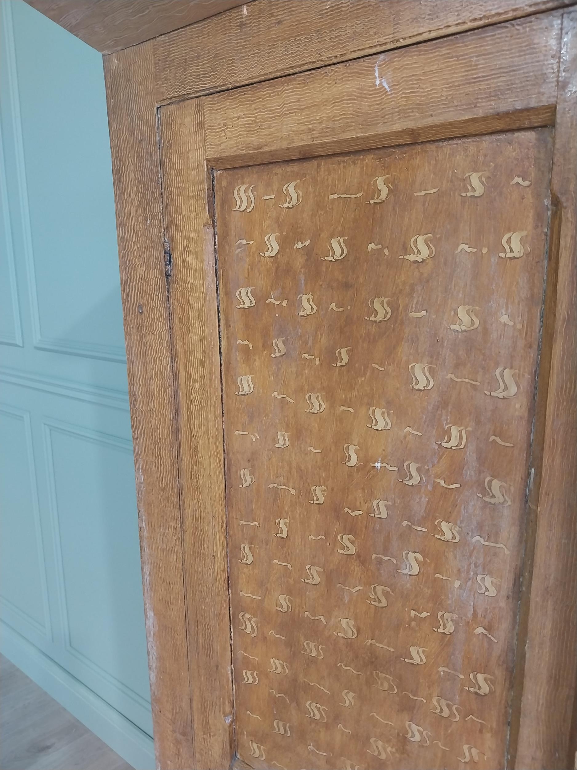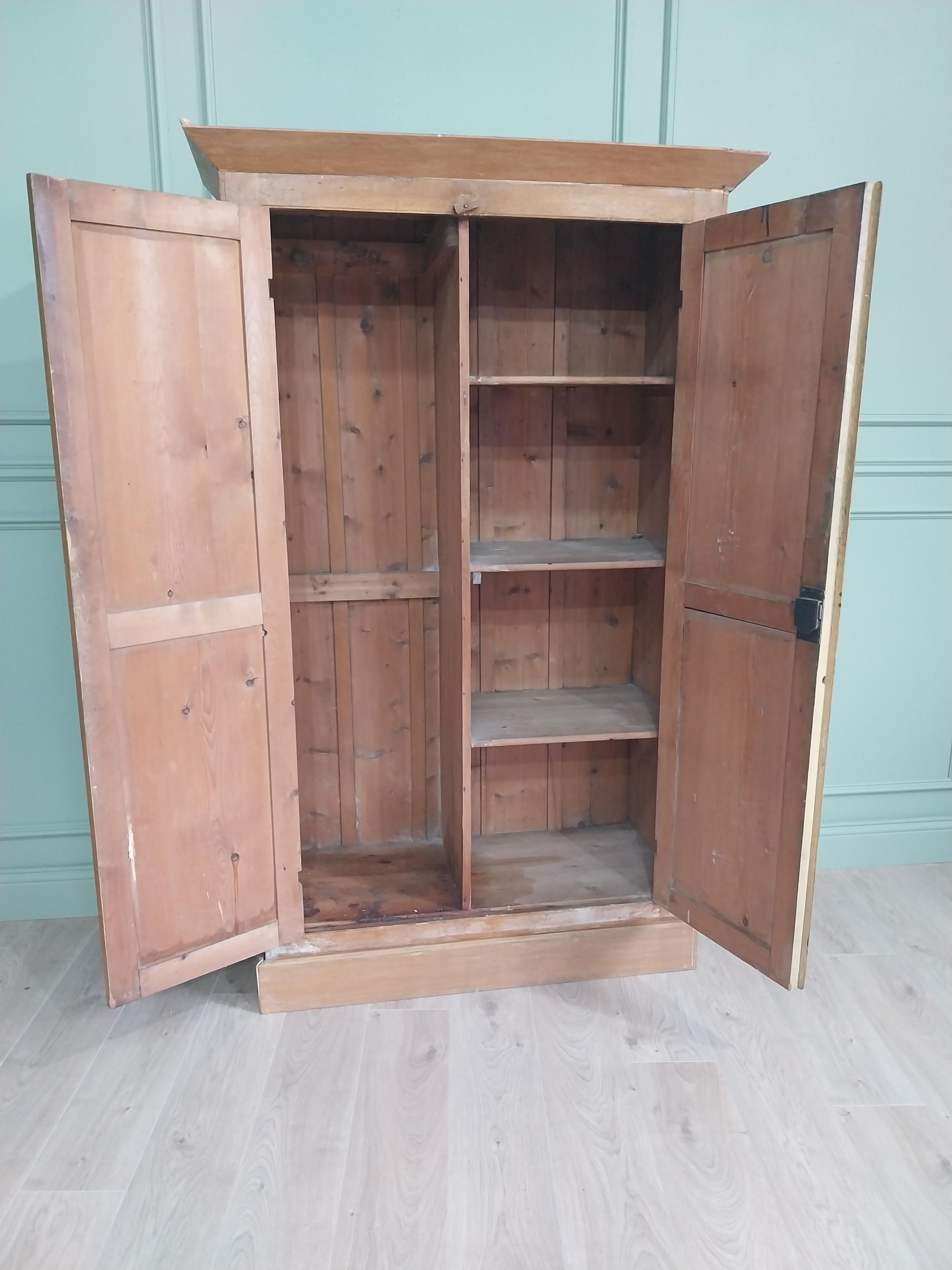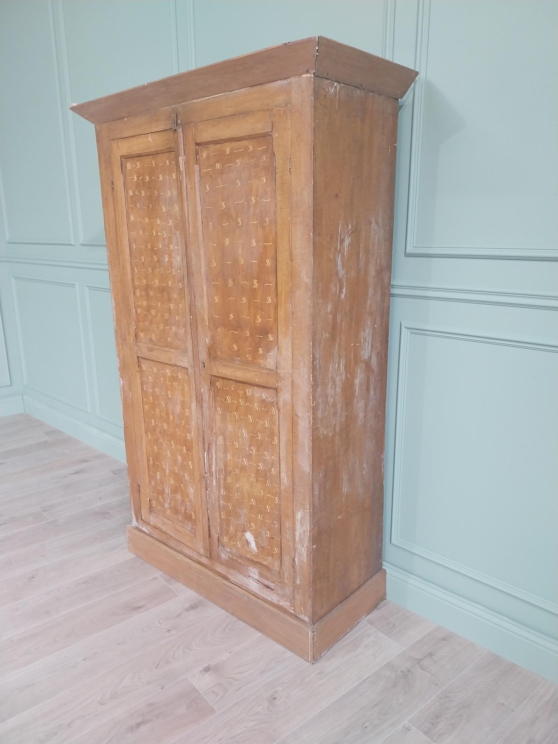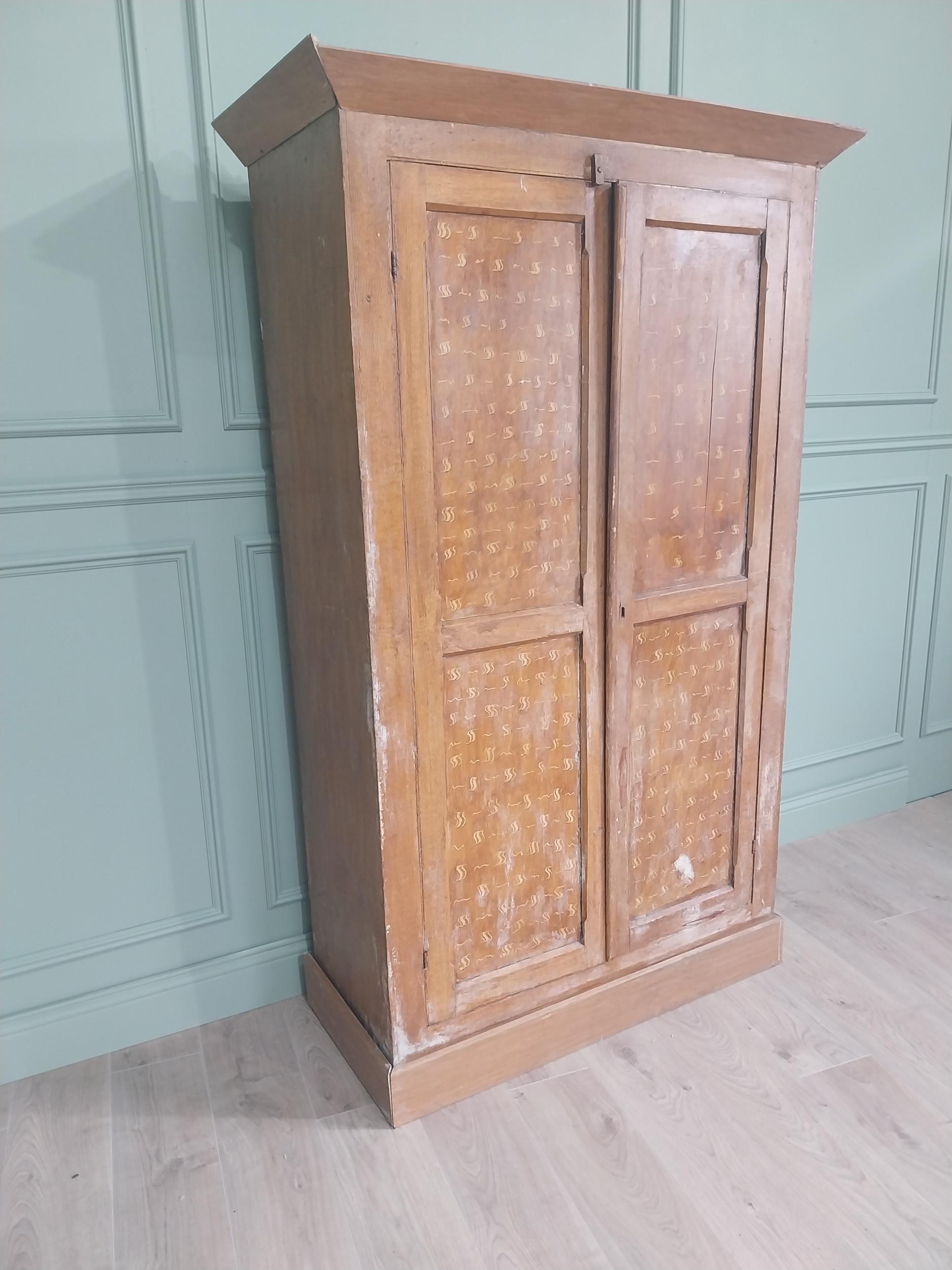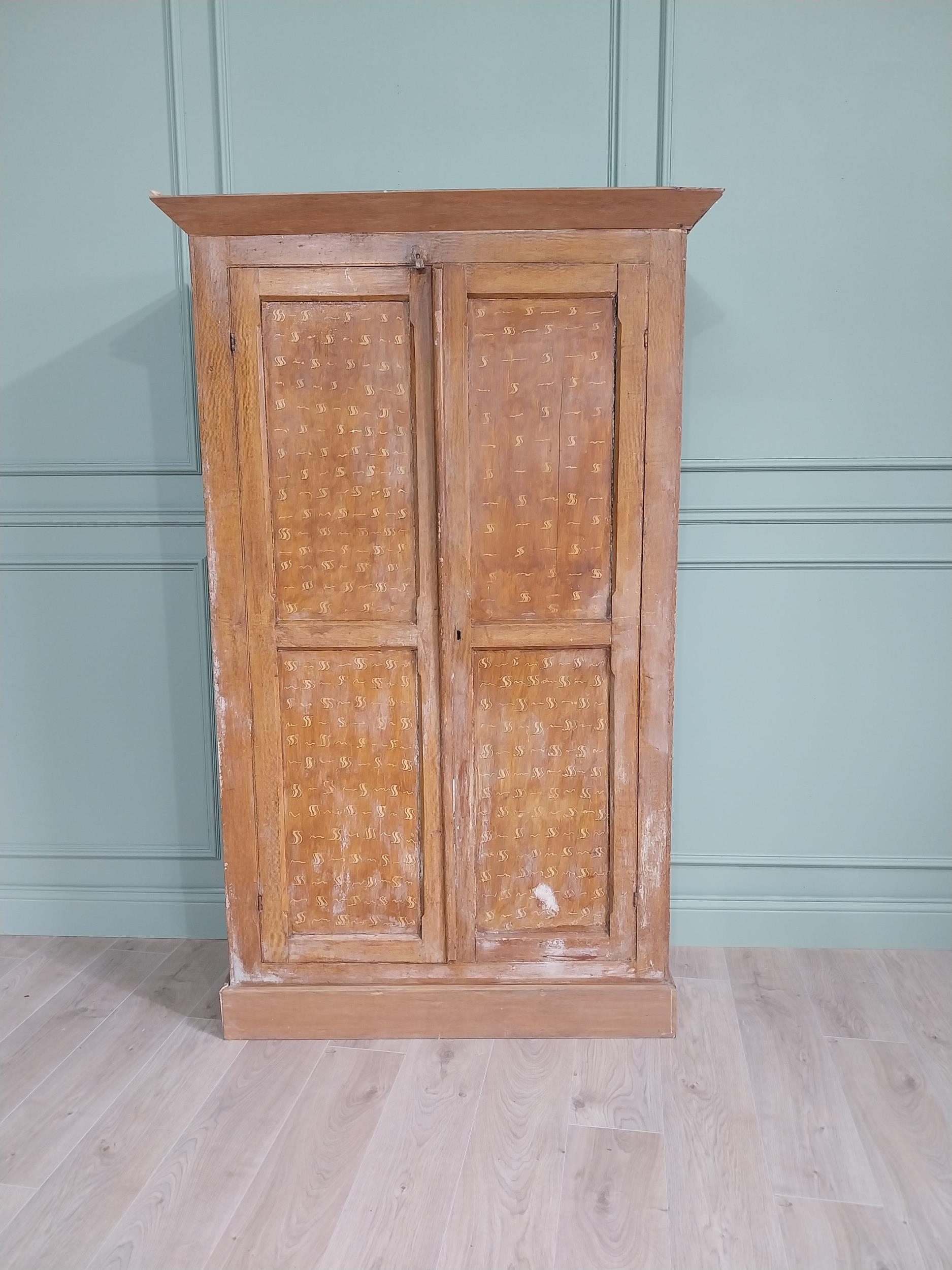 19th C. scumbled pine two door cupboard with inverted panels, originally from Co Monaghan { 189cm H X 115cm W X 50cm D }. U