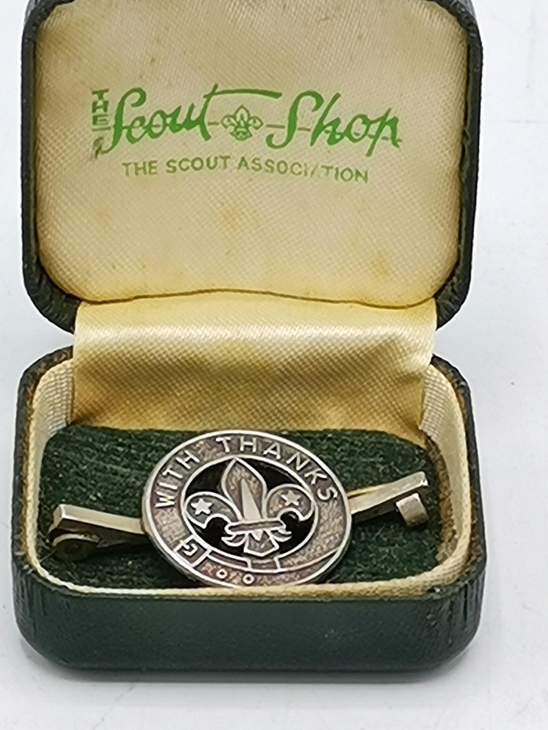 PRESENTED AS A SOLID SILVER (Hallmarked For Birmingham) SCOUTS PIN BADGE "WITH THANKS" (Total Weight 5.9Gram)(Original Box)