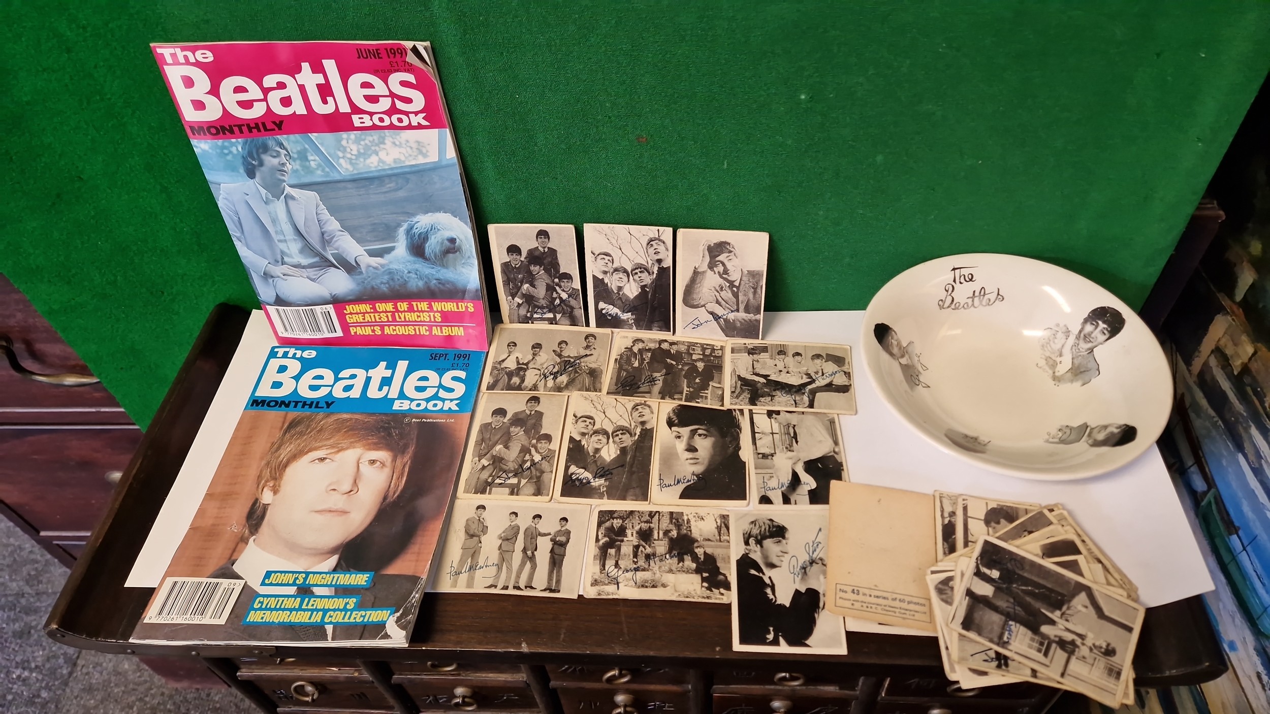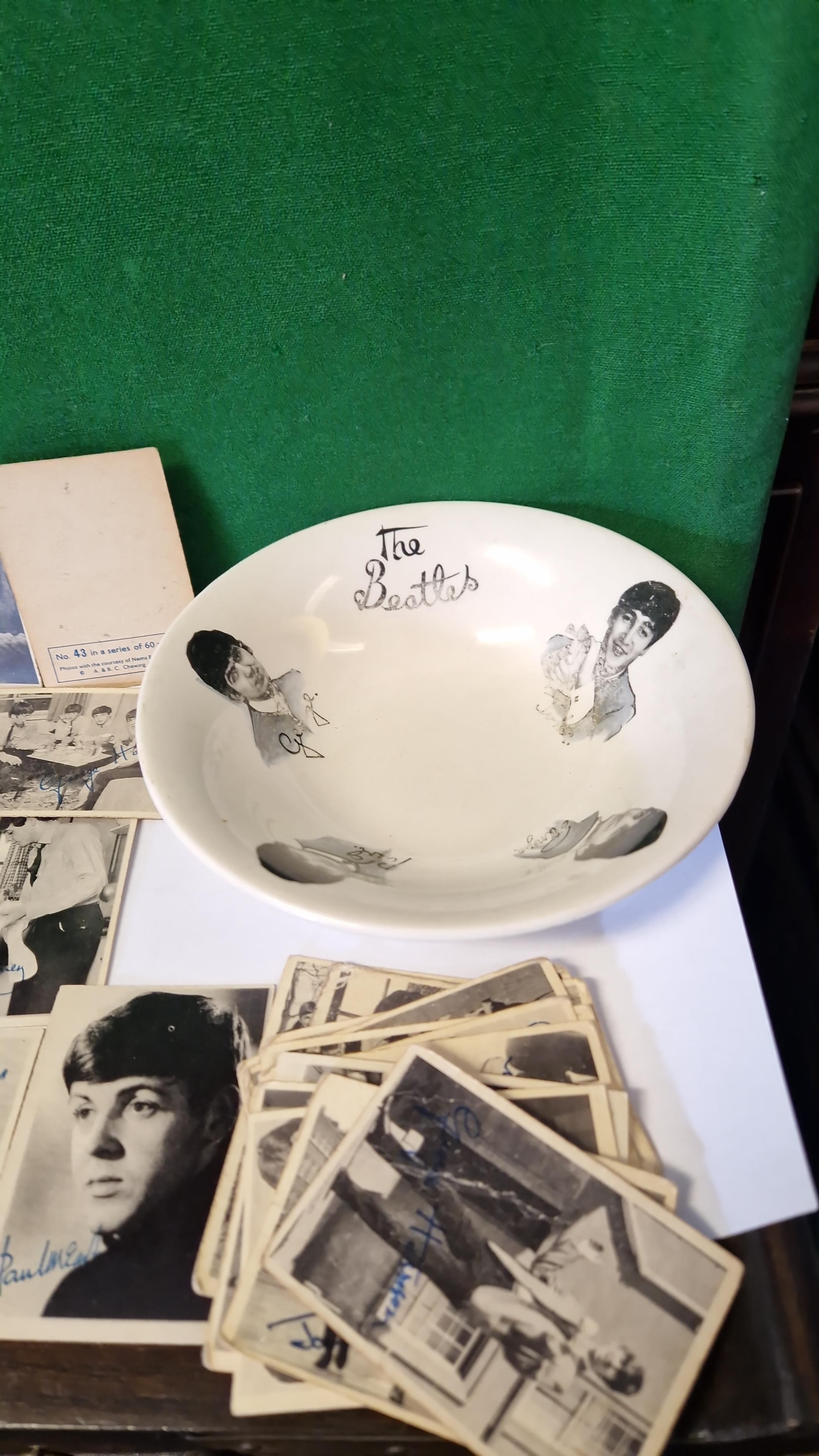 COLLECTION OF THE BEATLES ITEMS - WASHINGTON POTTERY BOWL, QTY OF CHEWING GUM CARDS, 2 X BEATLES MONTHLY BOOKS