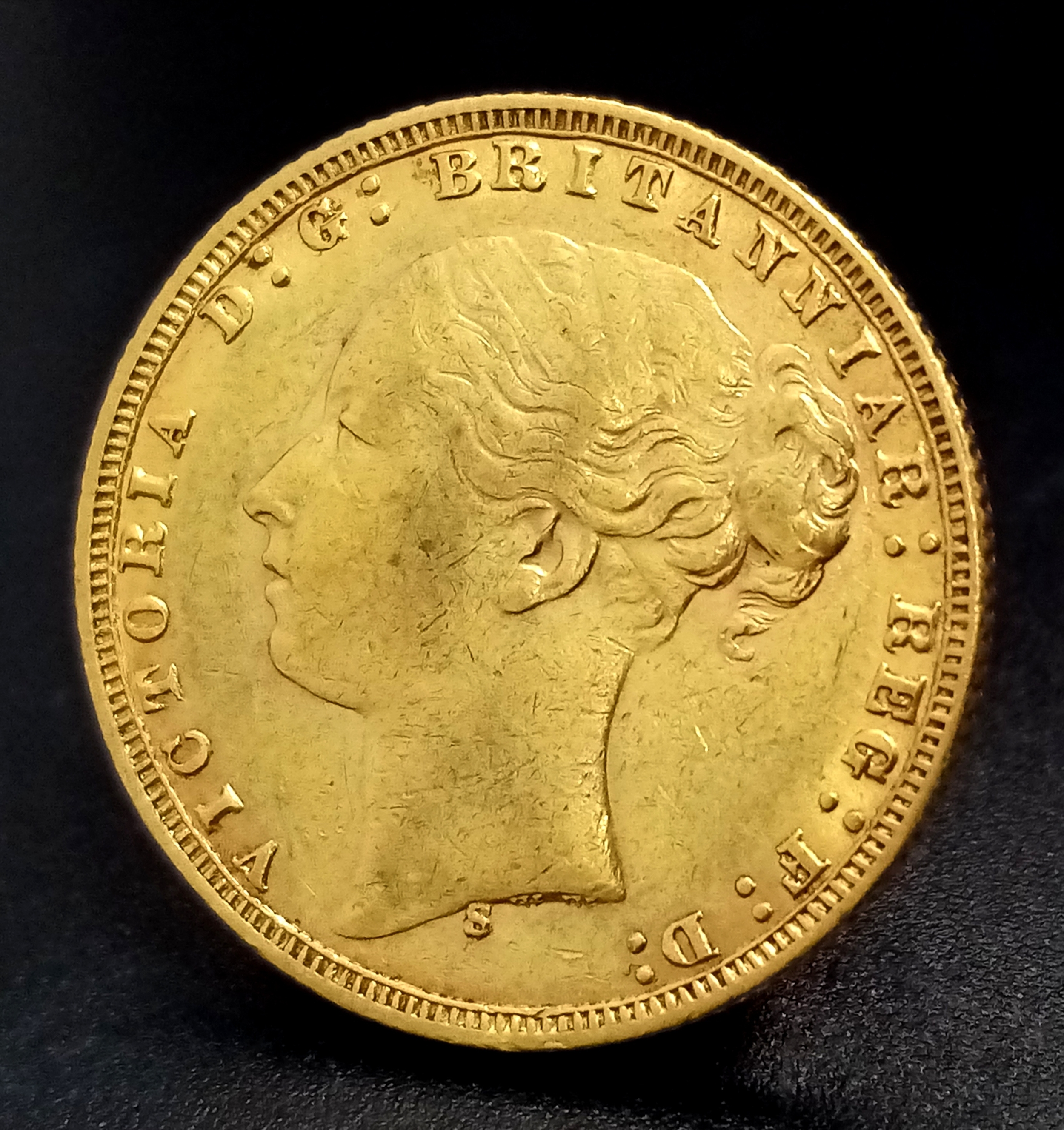 An 1876 QUEEN VICTORIA YOUNG HEAD, SYDNEY MINT, FULL SOVEREIGN COIN. 22K GOLD. R9904.