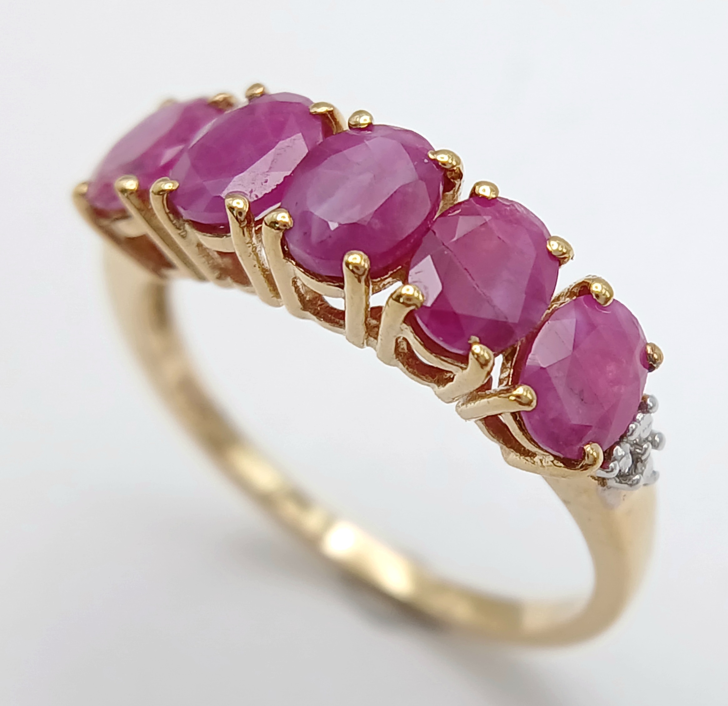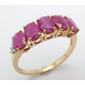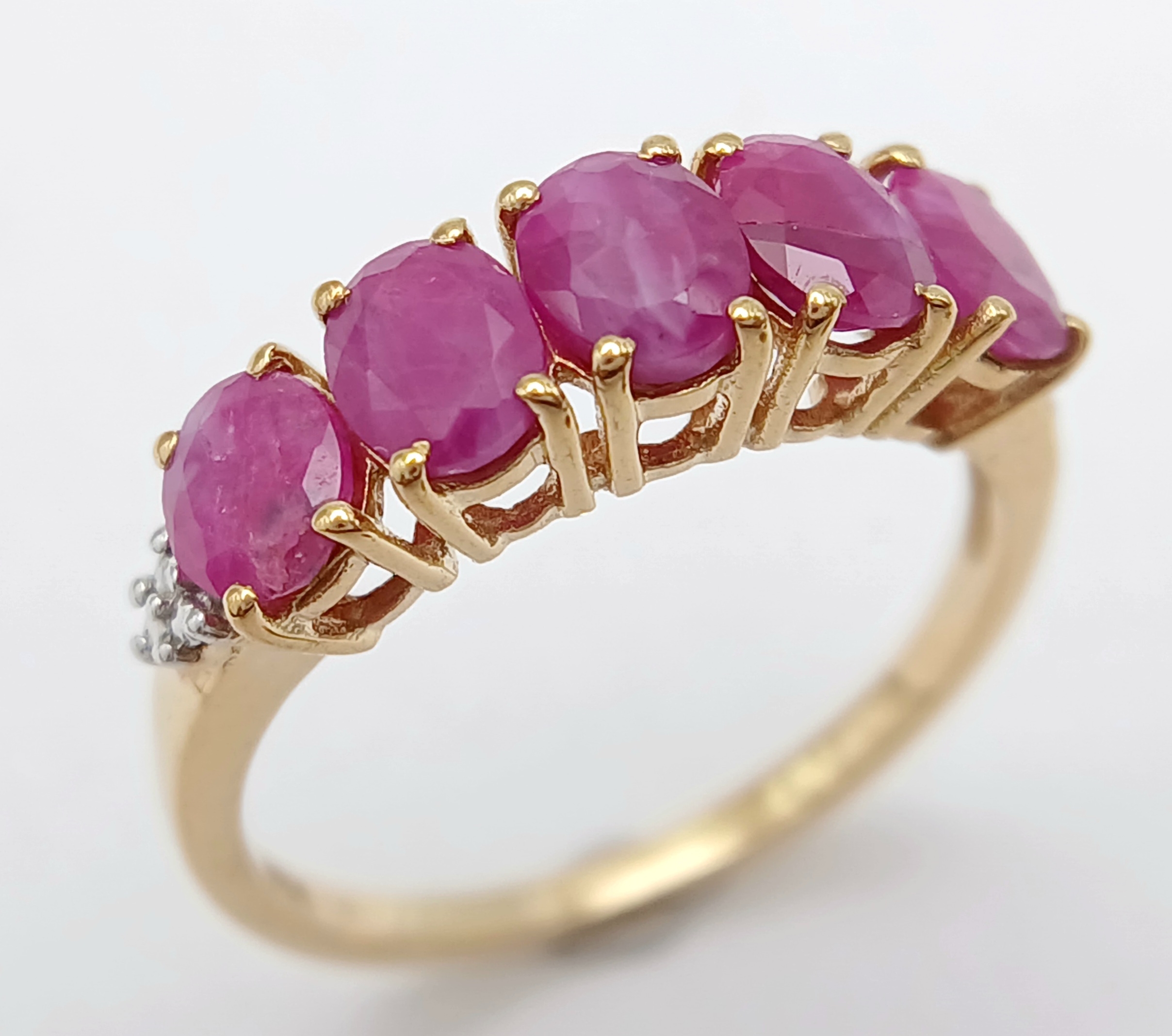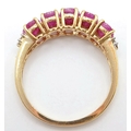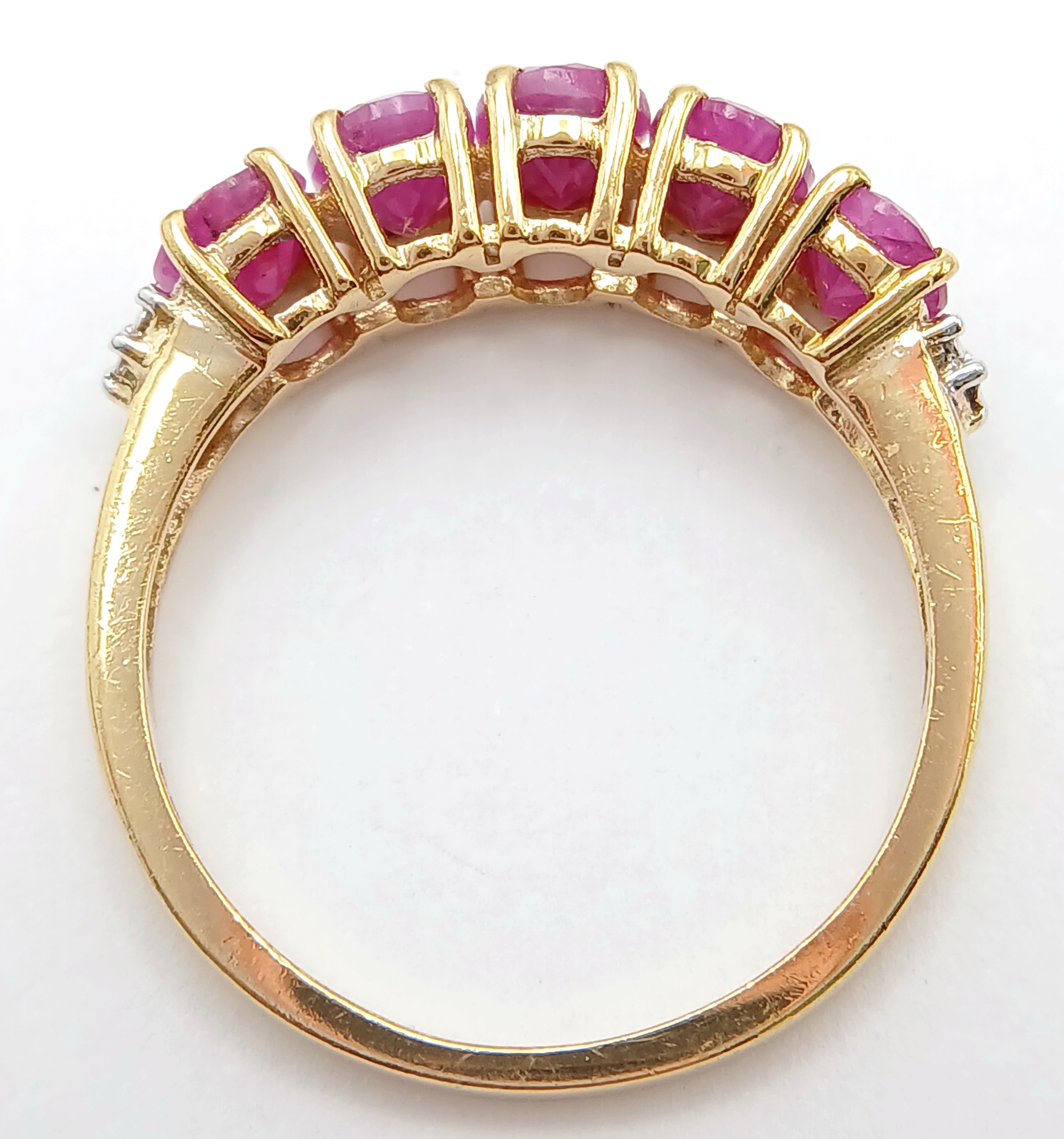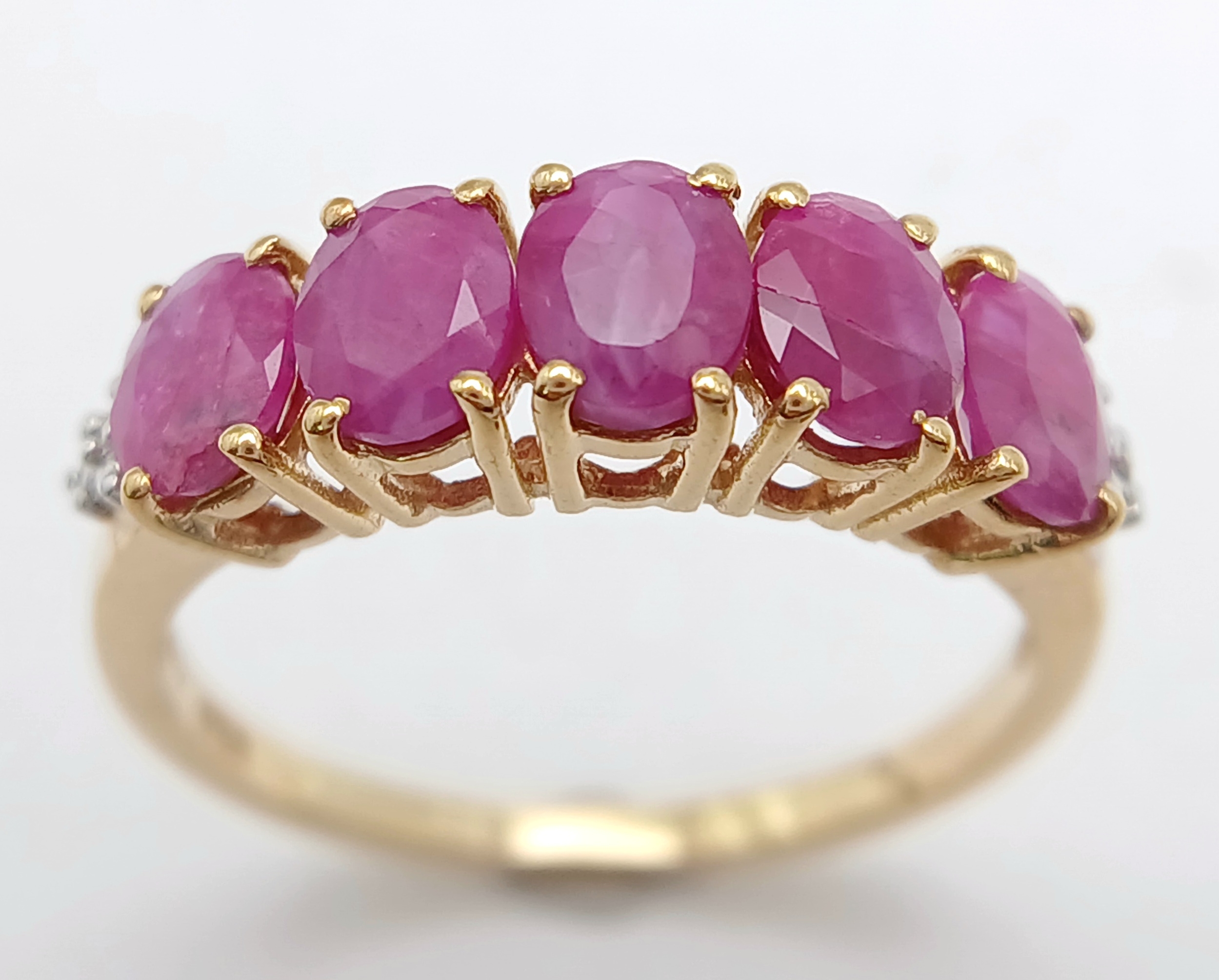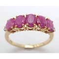 A Stylish Gold on Silver Five Stone Ruby Ring, Size N. The Ring is set with Five 4mm Long Oval Cut Rubies. Gross Weight 2.35 Grams.