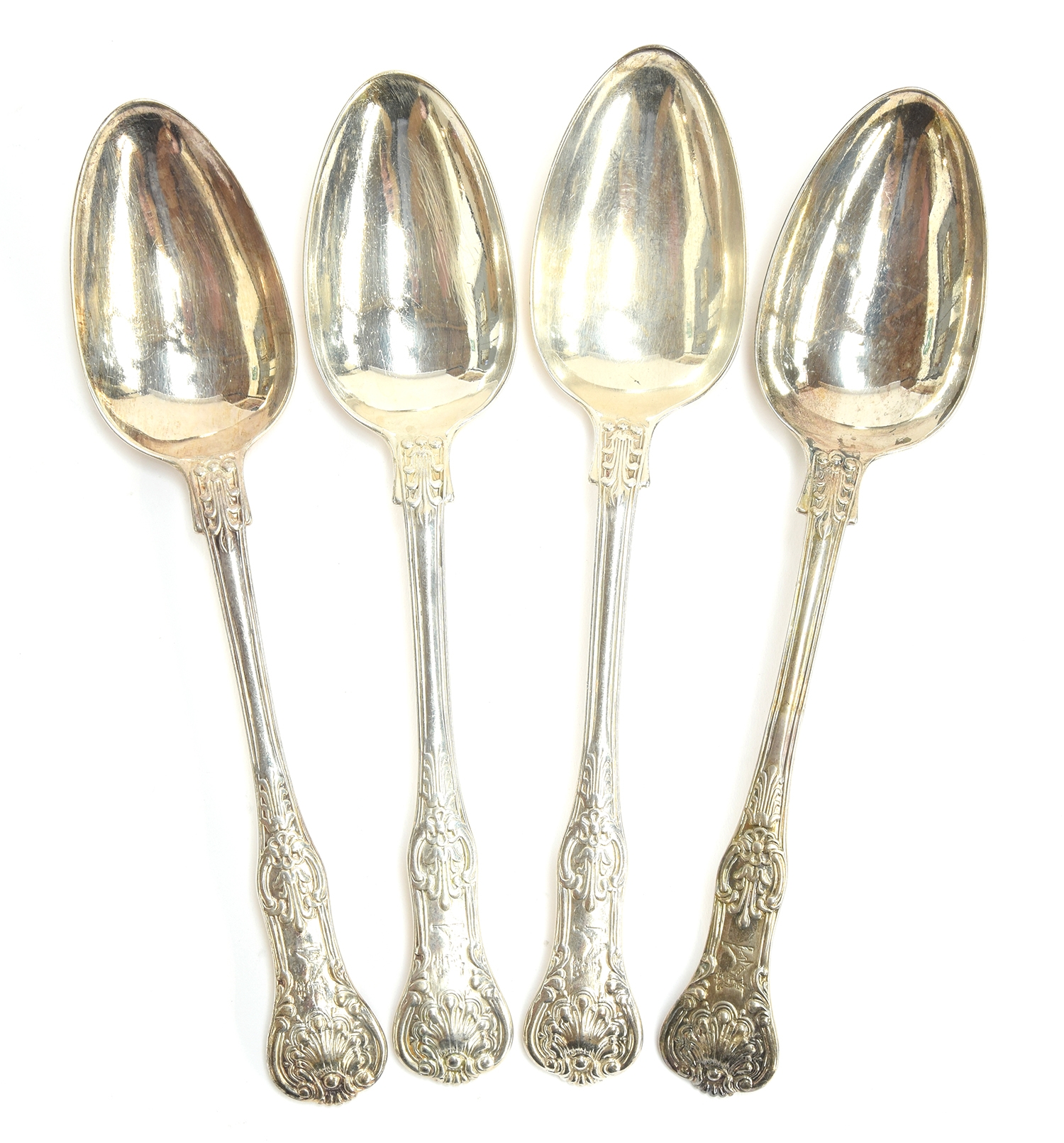 A set of four William IV King's Pattern silver tablespoons, London 1834, one AF, 11.5ozt