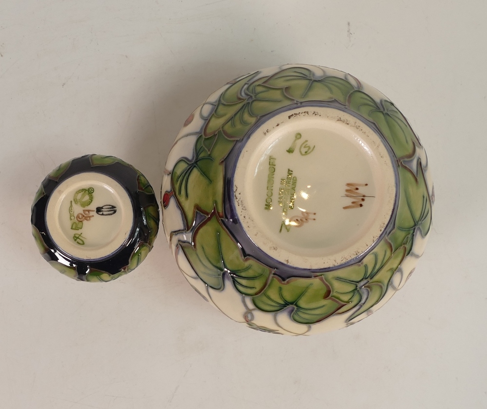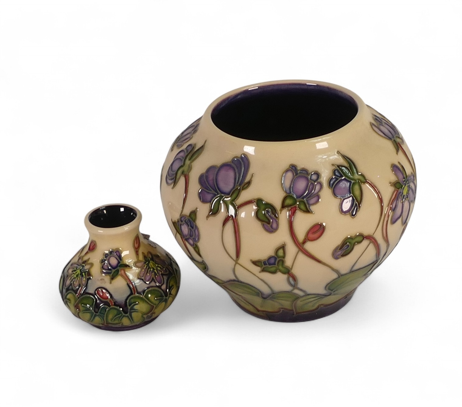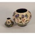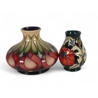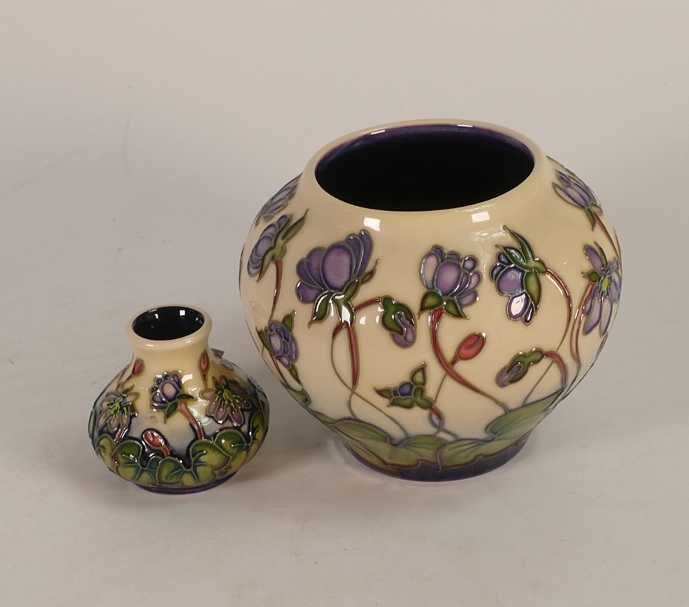 Two Moorcroft Vases 'Hepatica' pattern designed by Emma Bossons. tallest:-10cm (2)