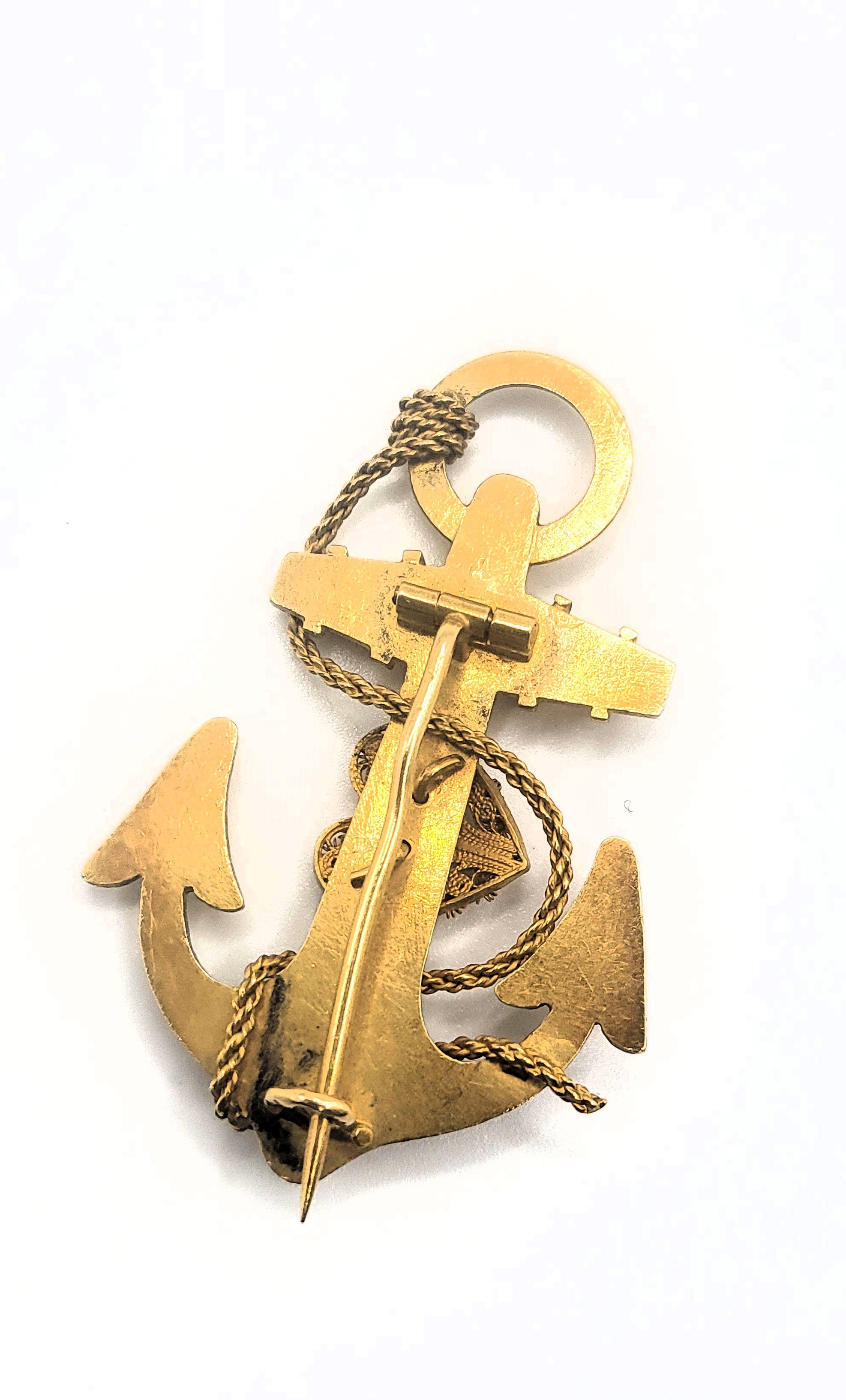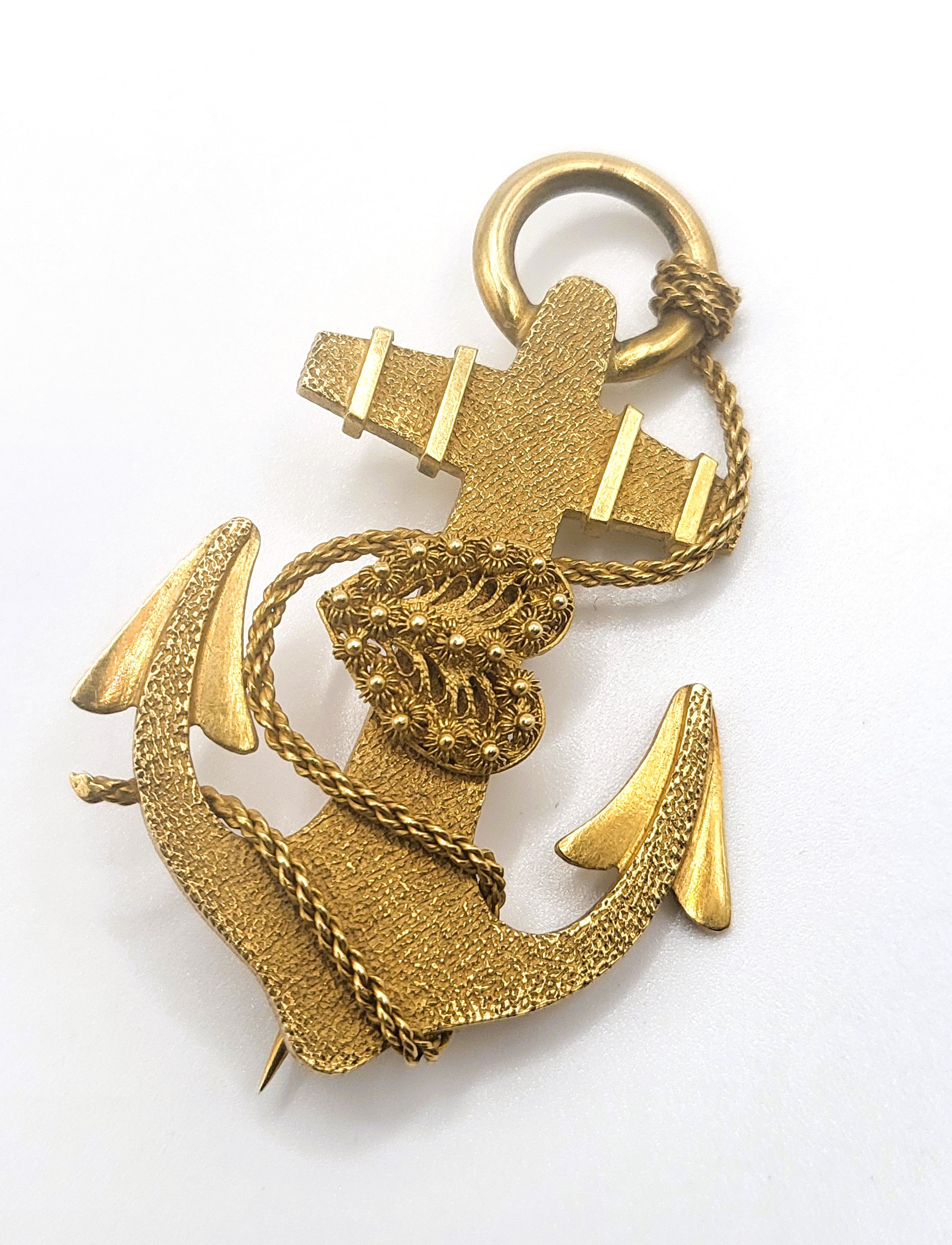 An 18ct and 20ct yellow gold Hope and Anchor brooch 10.0gms 4.7cm