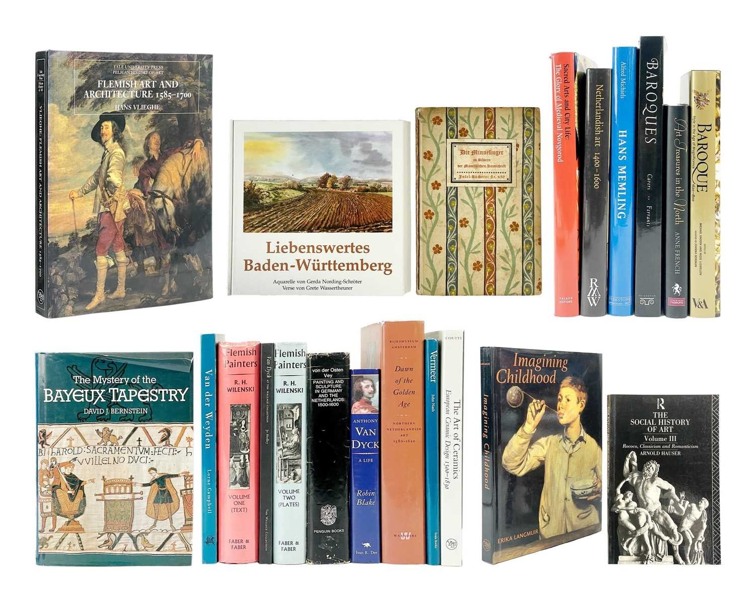 (European Art) Twenty-one works Includes both volumes of R. H. Wilenski, 'Flemish Painters', Faber and Faber Limited, London 1960; Jo Hedley, 'Van Dyck at the Wallace Collection', Wallace Collection, 1999; Anne French, 'Art Treasures in the North', Unicorn Press, 2009; together with works on paintings and sculpture in Germany and the Netherlands, the Baroque and Flemish art, all vg. (21)