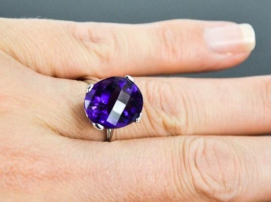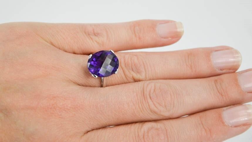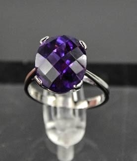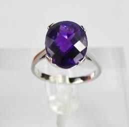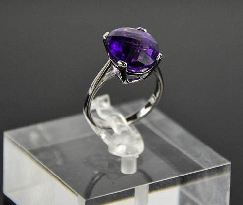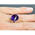 A 9ct white gold and amethyst cocktail ring, size O, 4.1g.