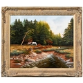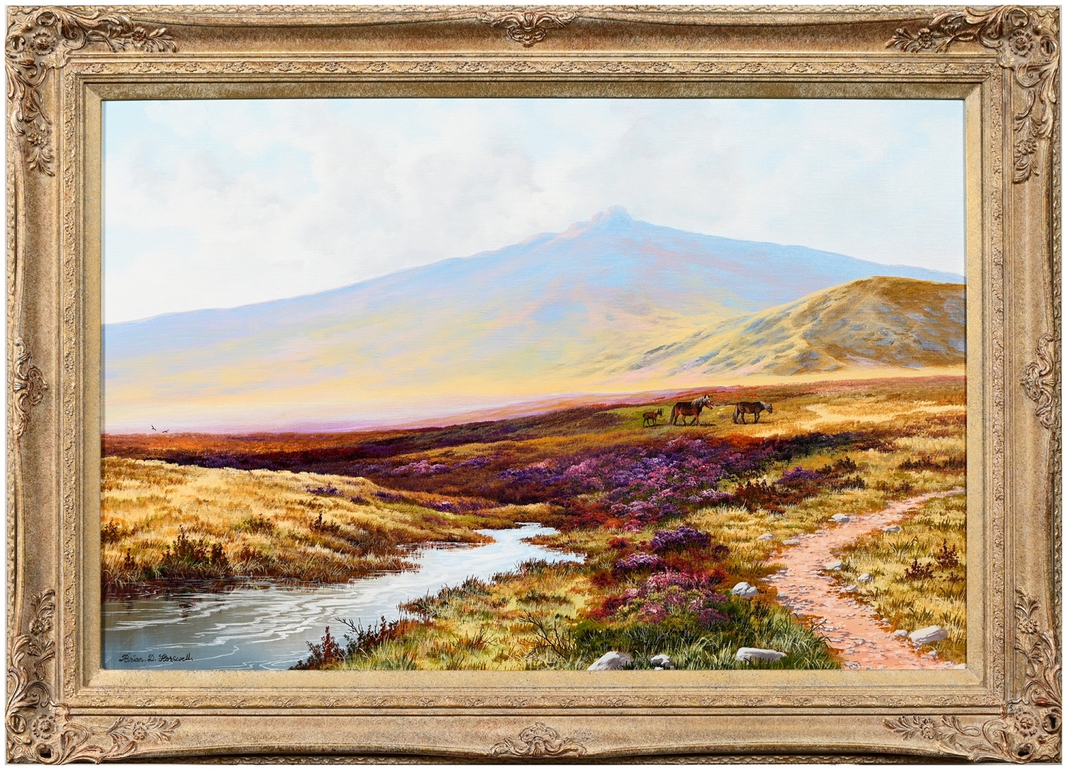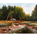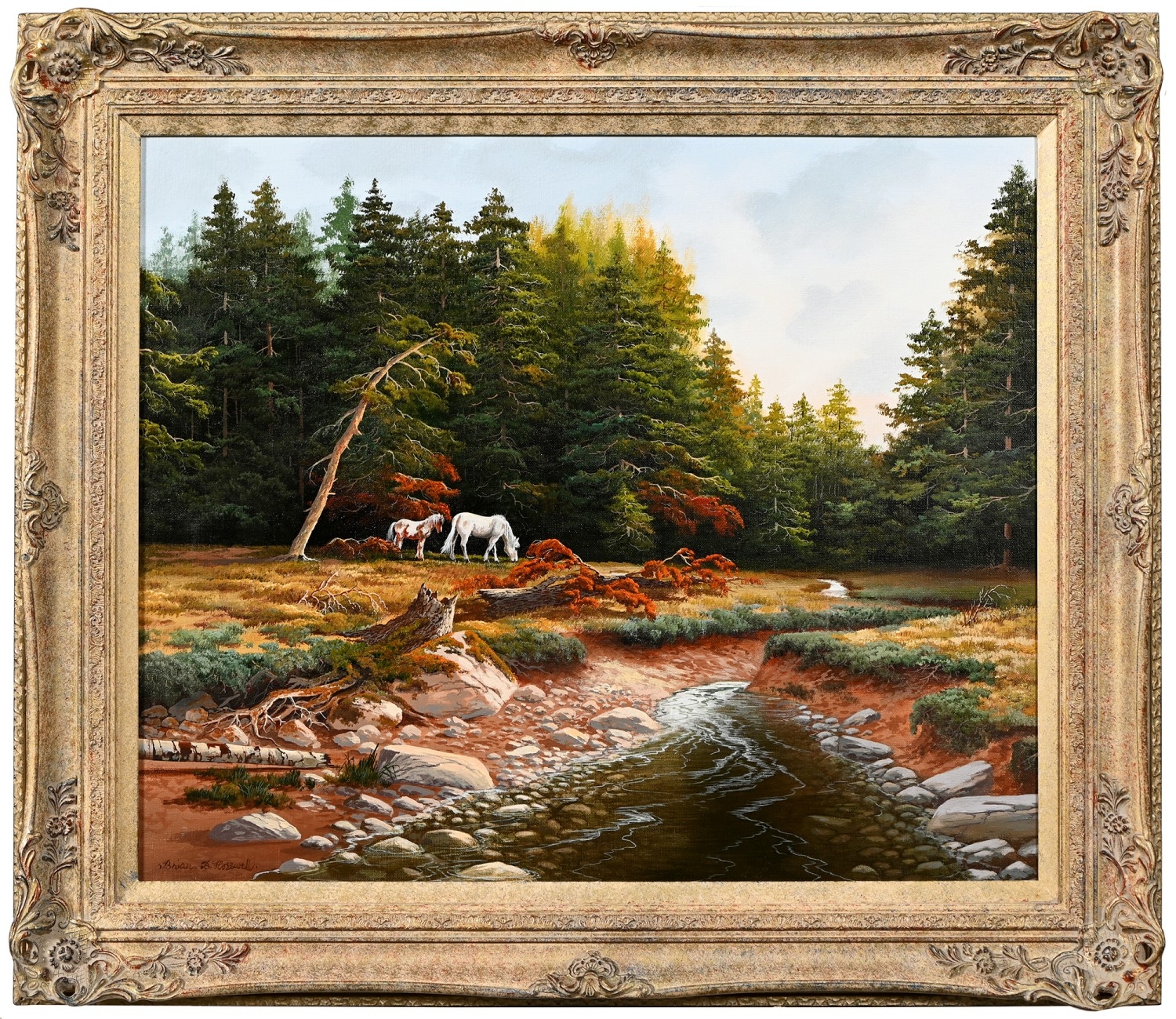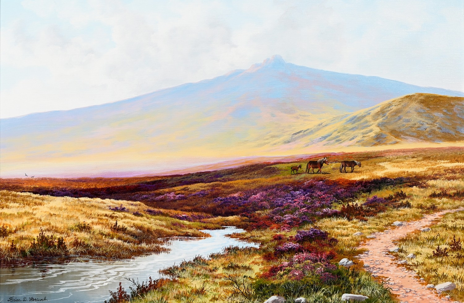 Brian Horswell (b. 1939) - Horses in Bellever Forest; Ponies on a Moor, two, signed, oil on canvases, 49 x 59.5 and 50.5 x 75cm respectively, (2)