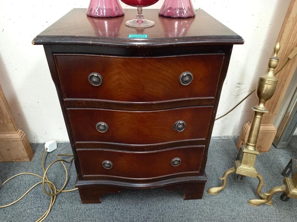 Vintage Serpentine Front 3 Drawer Chest in Georgian Style