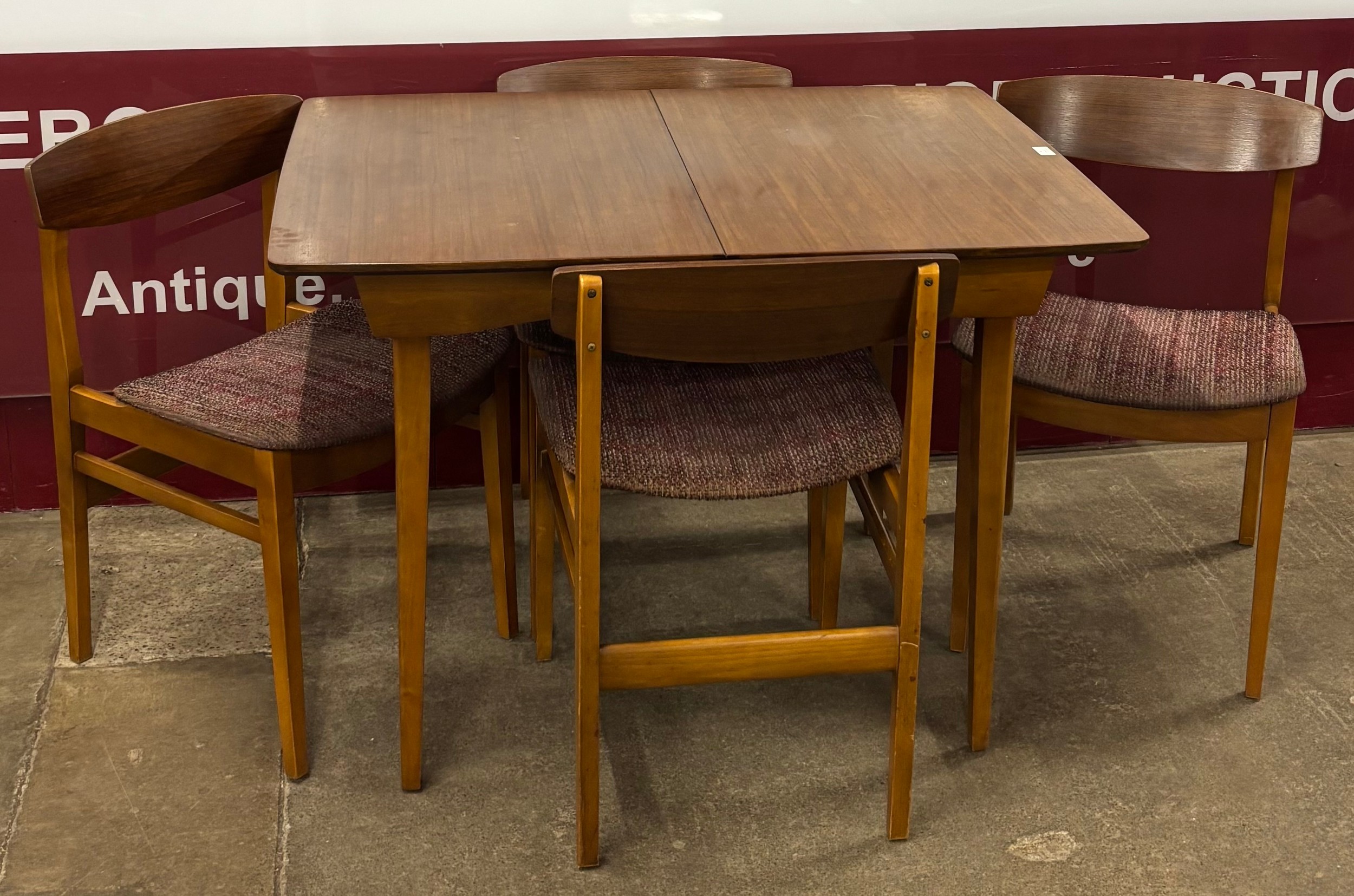 A Beautility afromosia rectangular extending dining table and four chairs