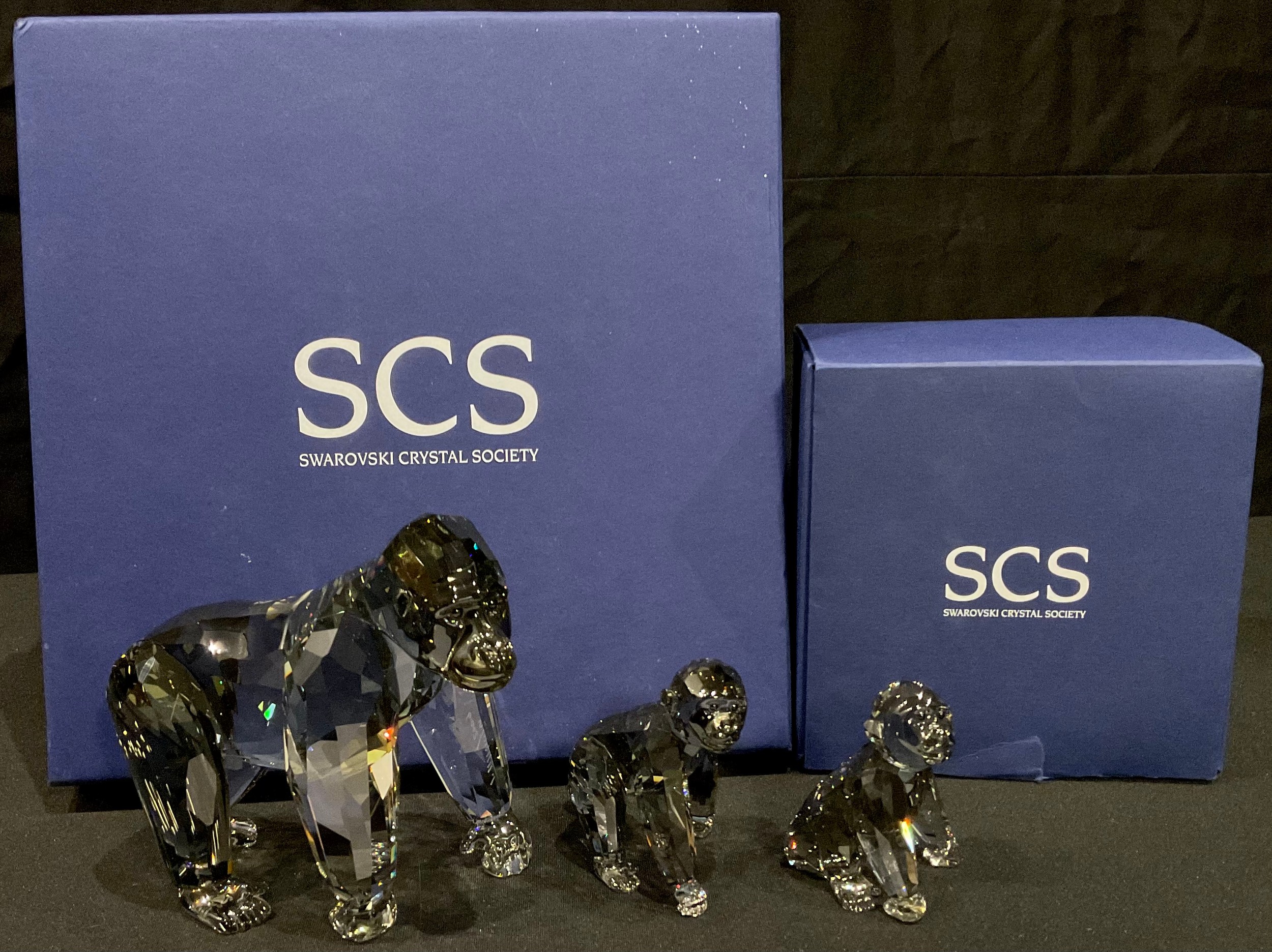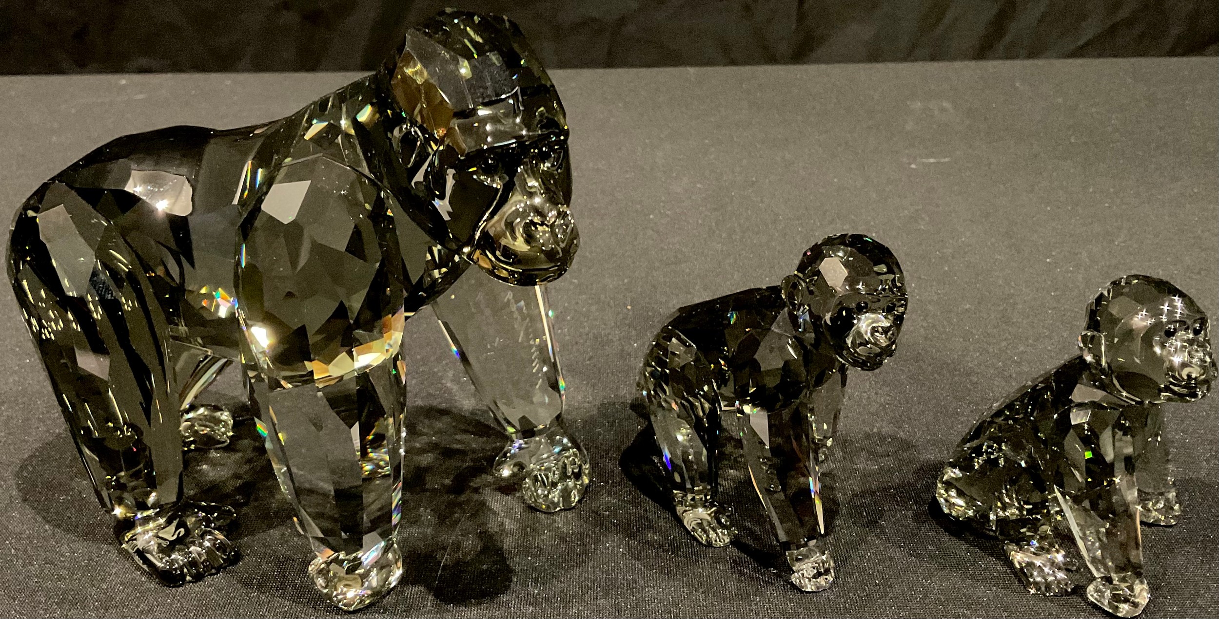 A Swarovski Crystal model group, Endangered Wildlife Gorillas, boxed; another, Gorilla Baby, boxed (3)