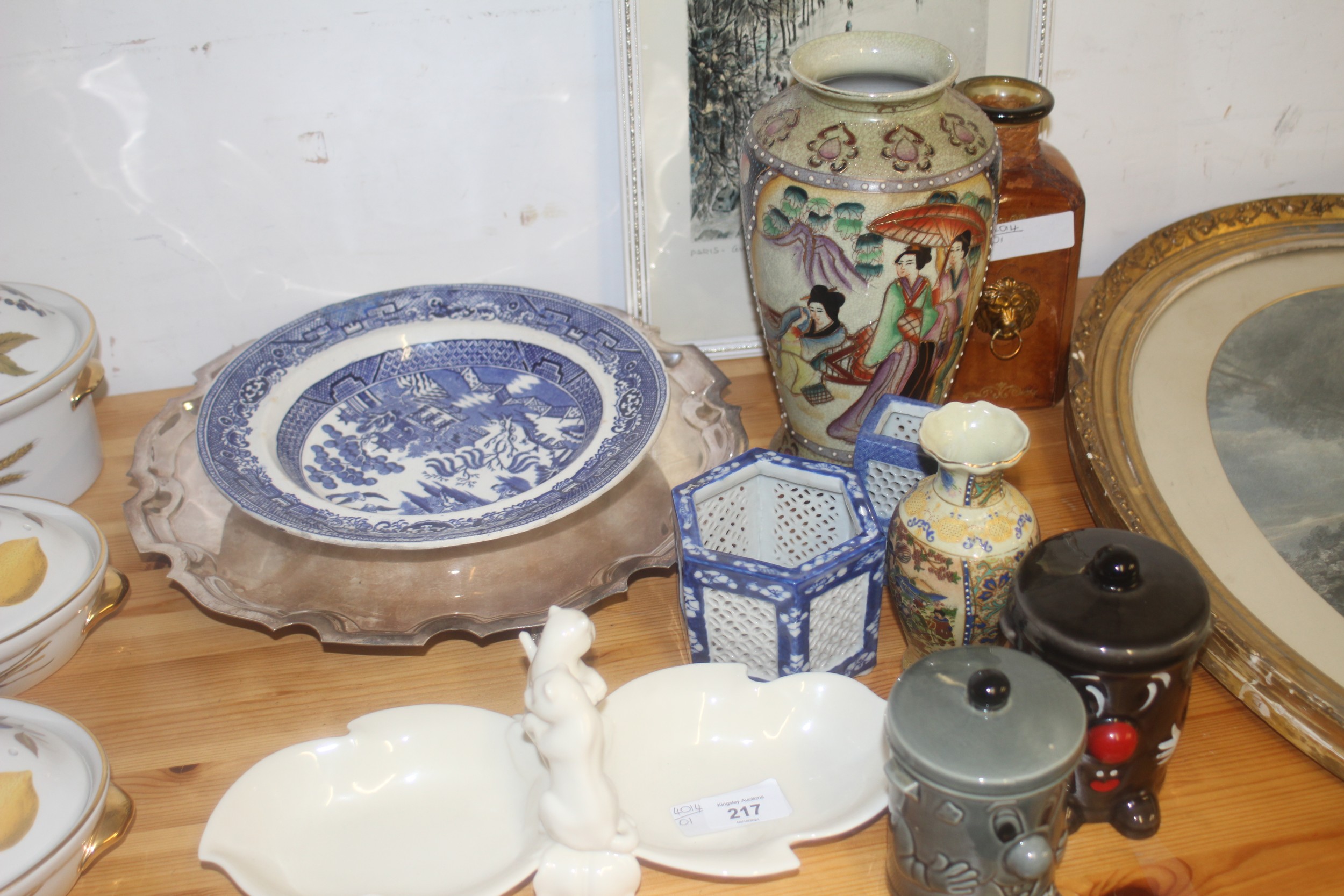 Assorted Bric-a-Brac including Vases, Jars, Money Boxes, a Framed Print by Ortiz Alfau and an Arthur Price Serving Tray