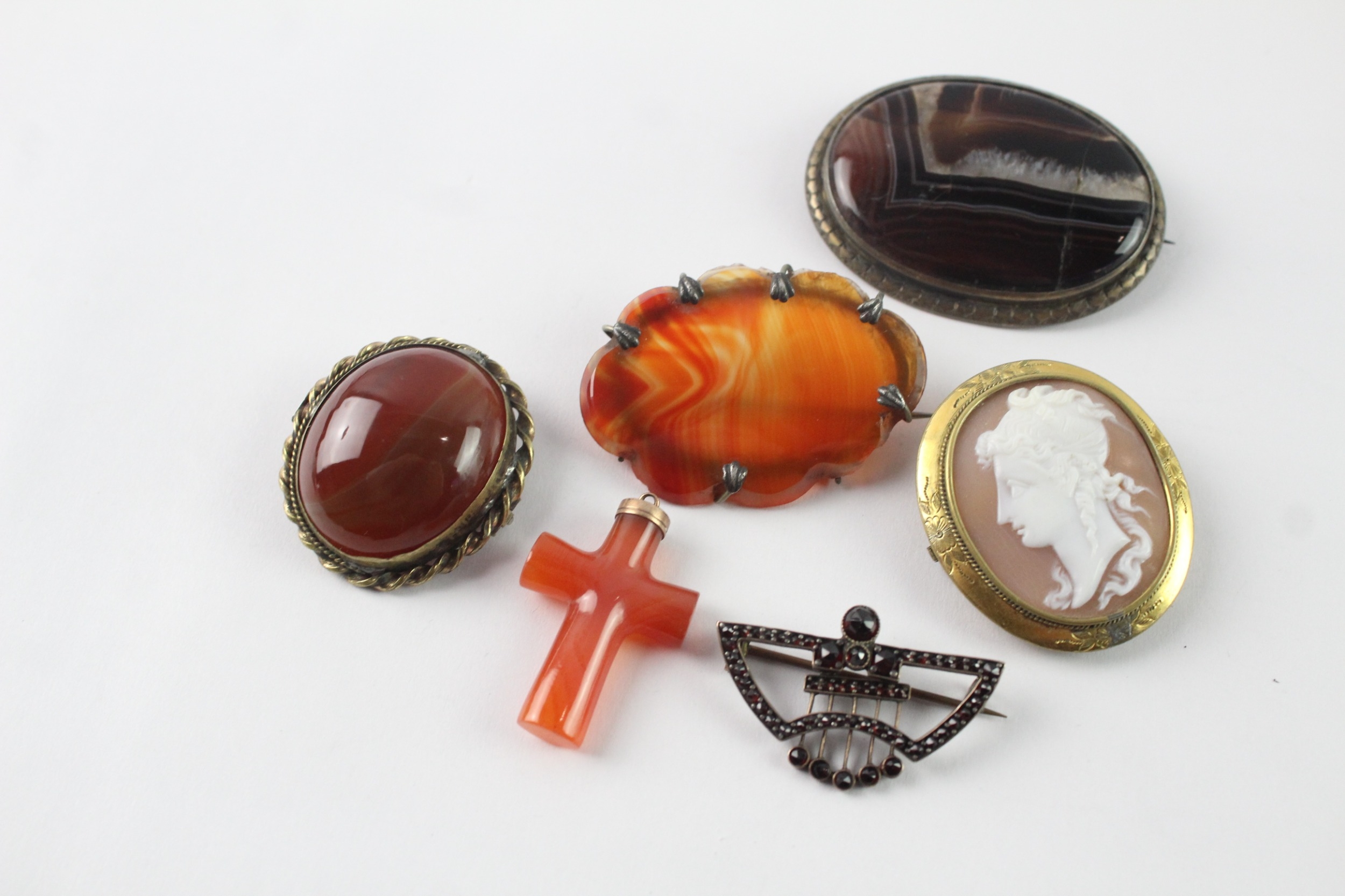 Collection of Antique Jewellery inc. Agate, Cameo, Brooches x 6 68g