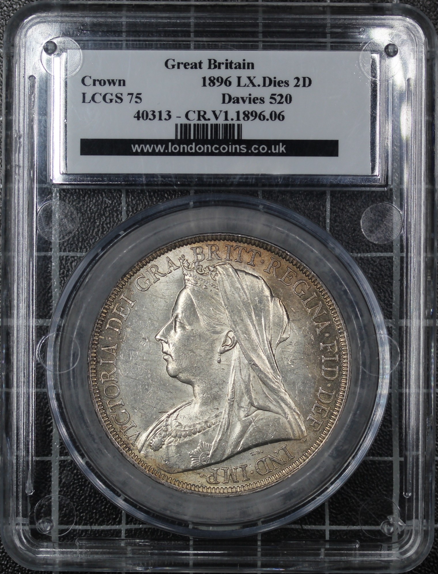 1896 Crown, Victoria, edge LX (ESC 311, Bull 2601, S.3937). Davies 520, dies 2+D. Graded CGS75 (aUNC). A bright example with lovely eye appeal.