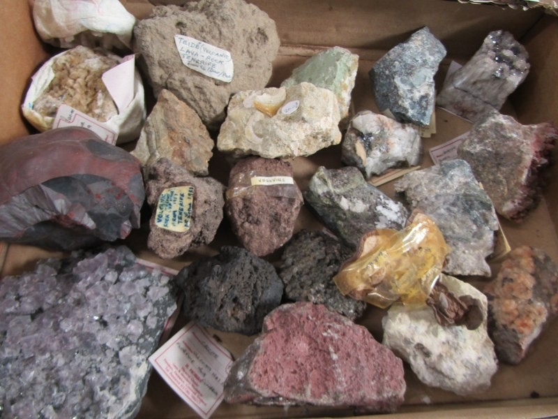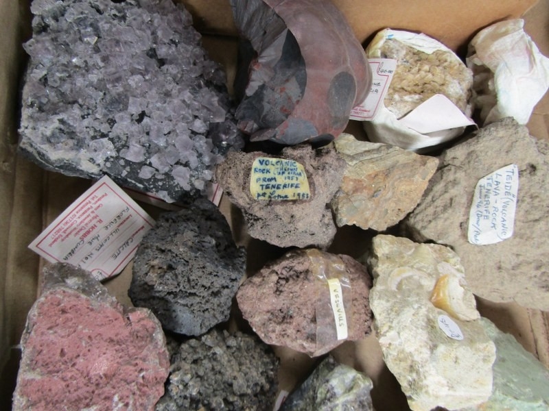 MINERALS, 2 boxes of interesting minerals; volcanic lava rock from Mount Vesuvius and Mount Teide
