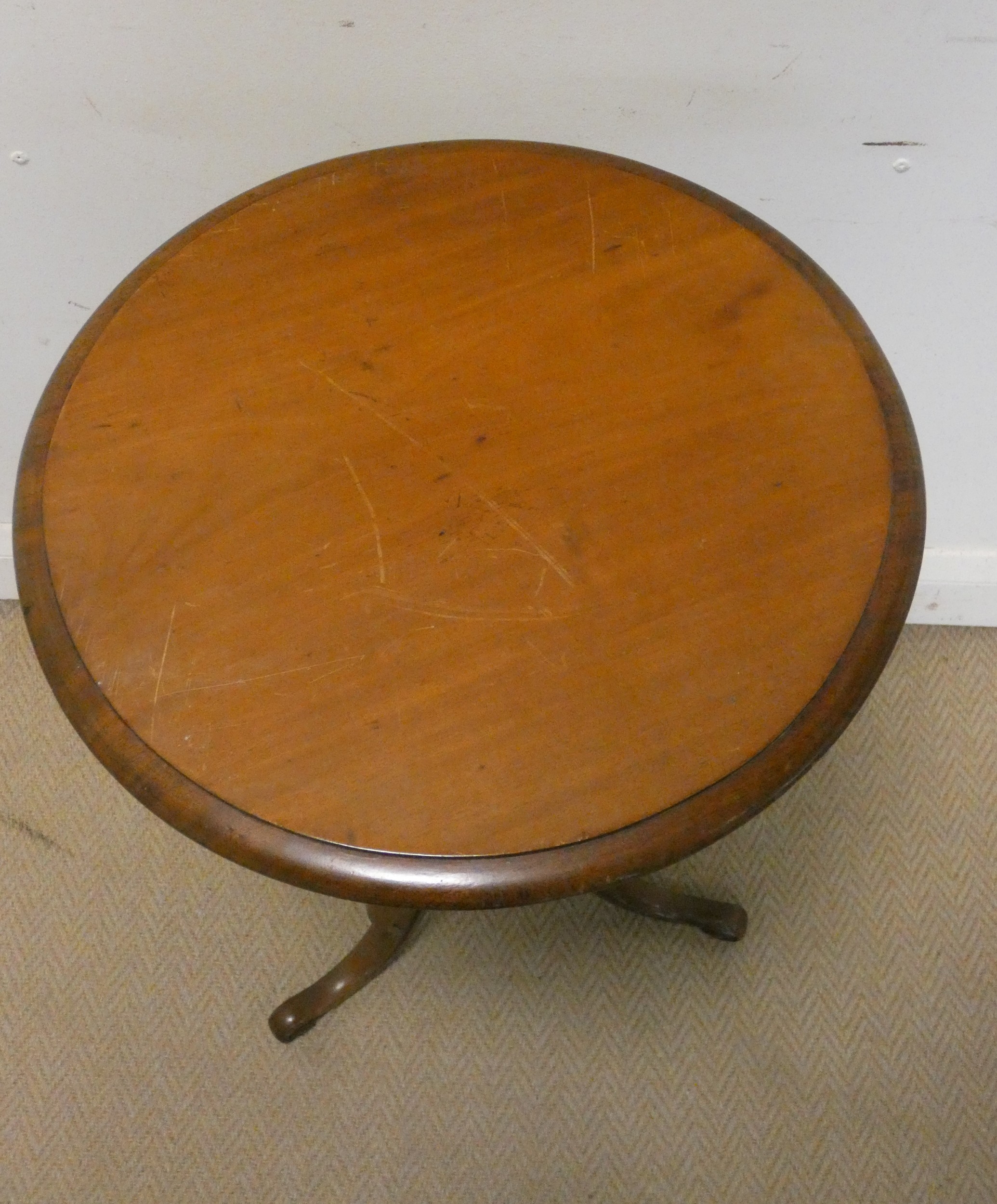 A Victorian circular mahogany occasional table on tripod base, 18" diameter